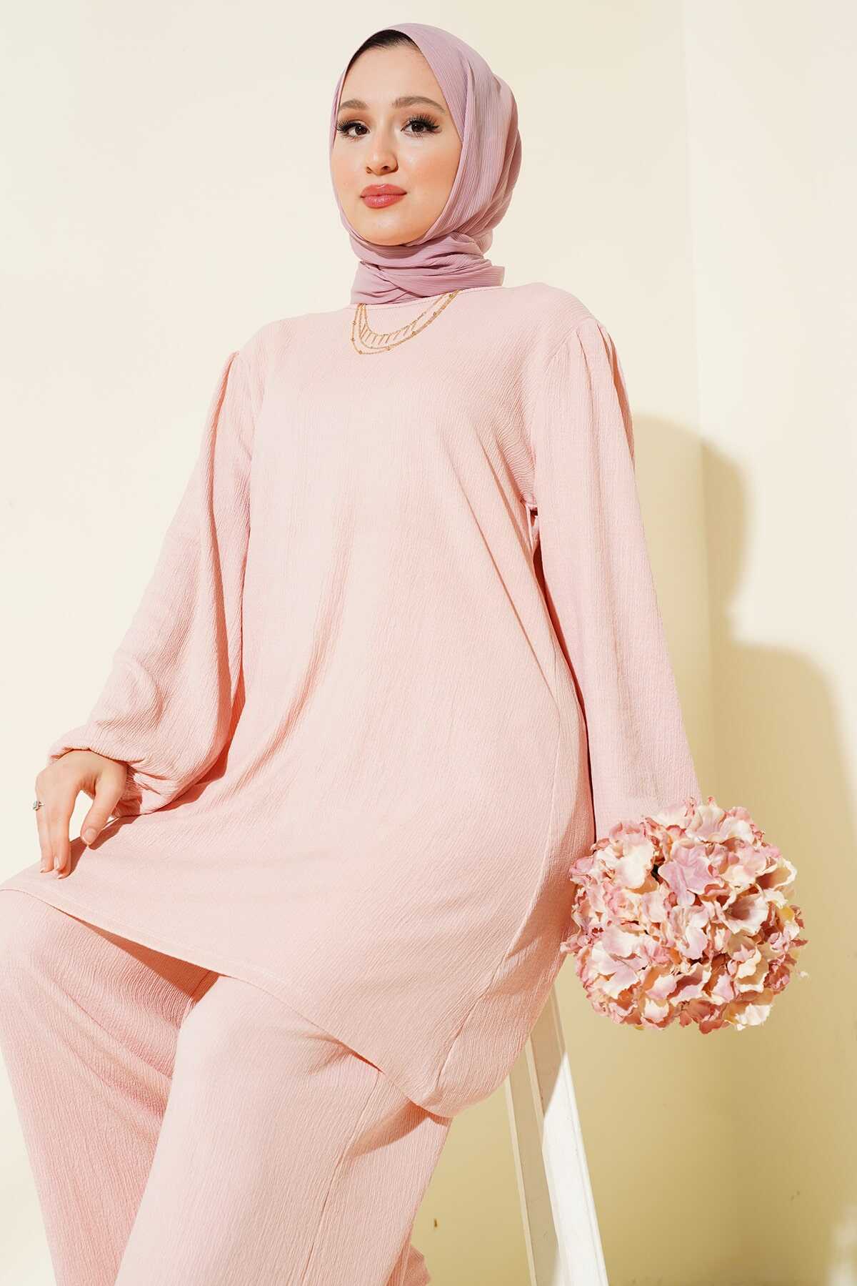 Kadın Pudra Tunik Pantolon Alt Üst Takım 6663 - Kombin