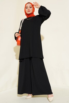 Kadın Siyah Tunik Pantolon Alt Üst Takım 6663 - Kombin