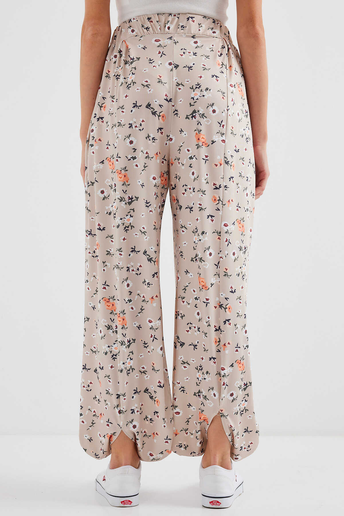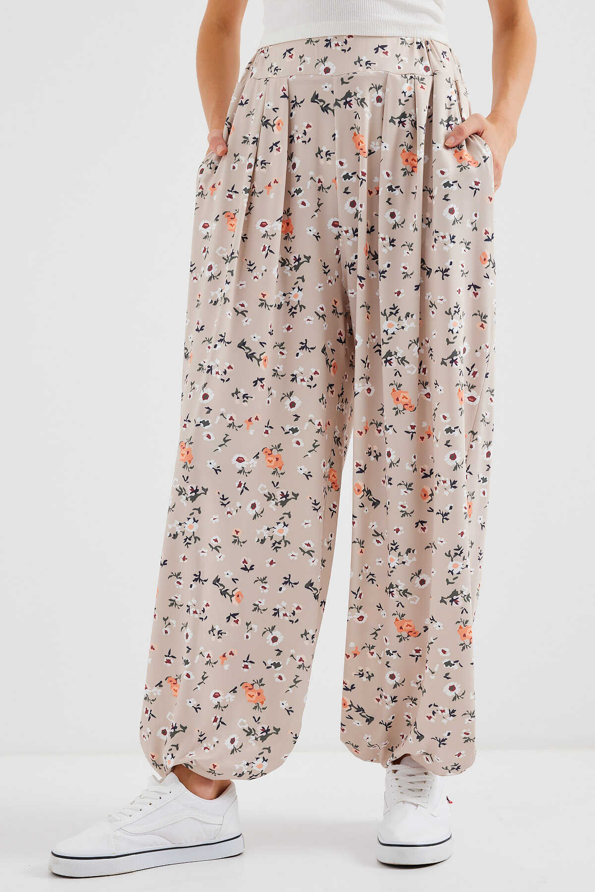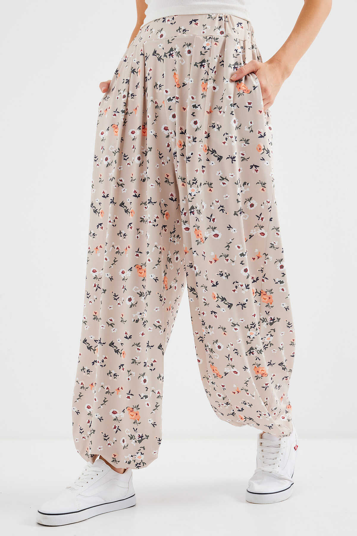 6665 Desenli Şalvar Pantolon - Krem - Kombin