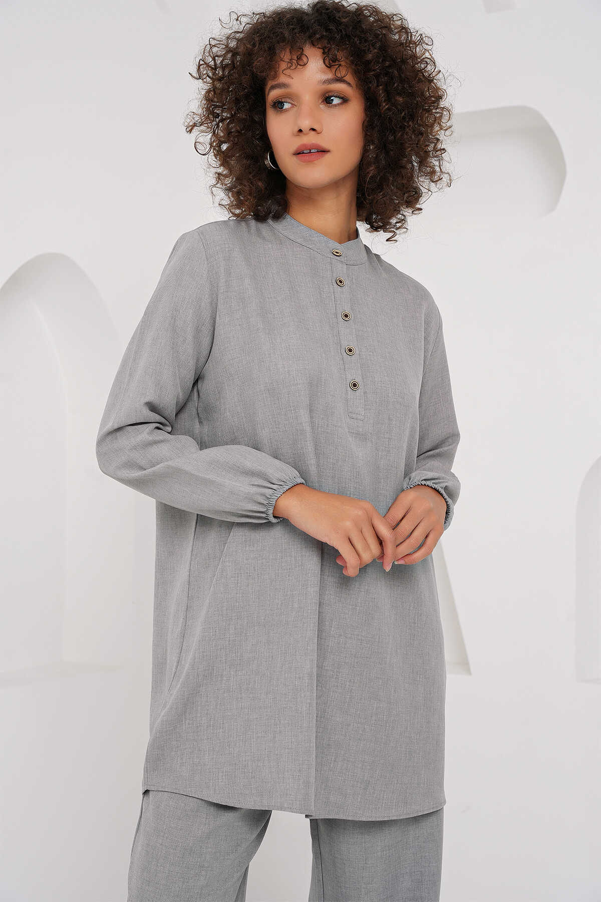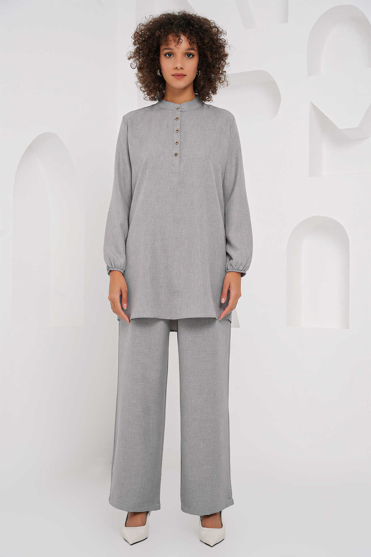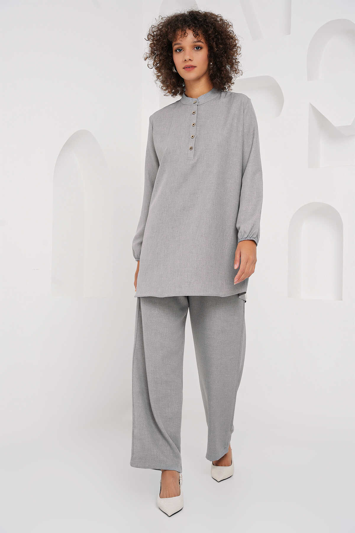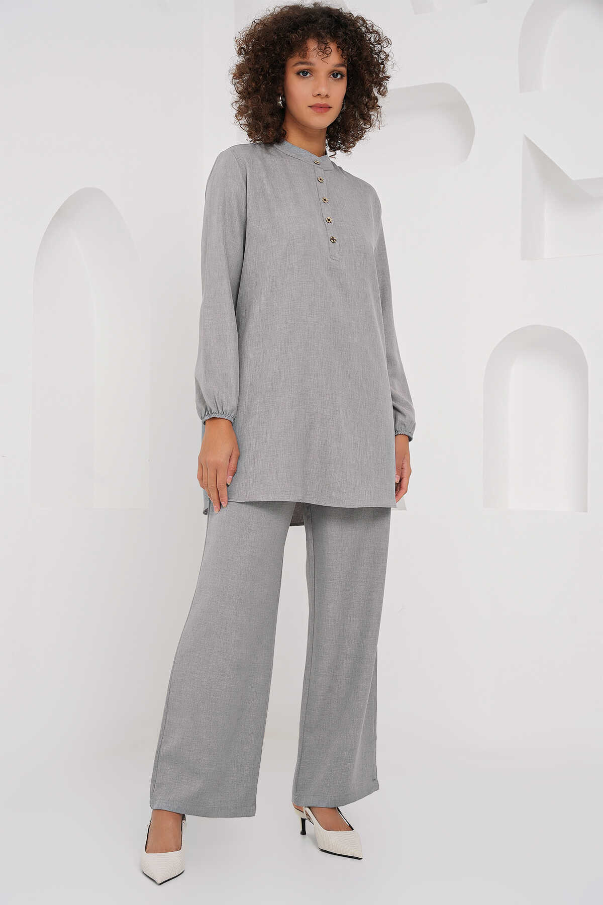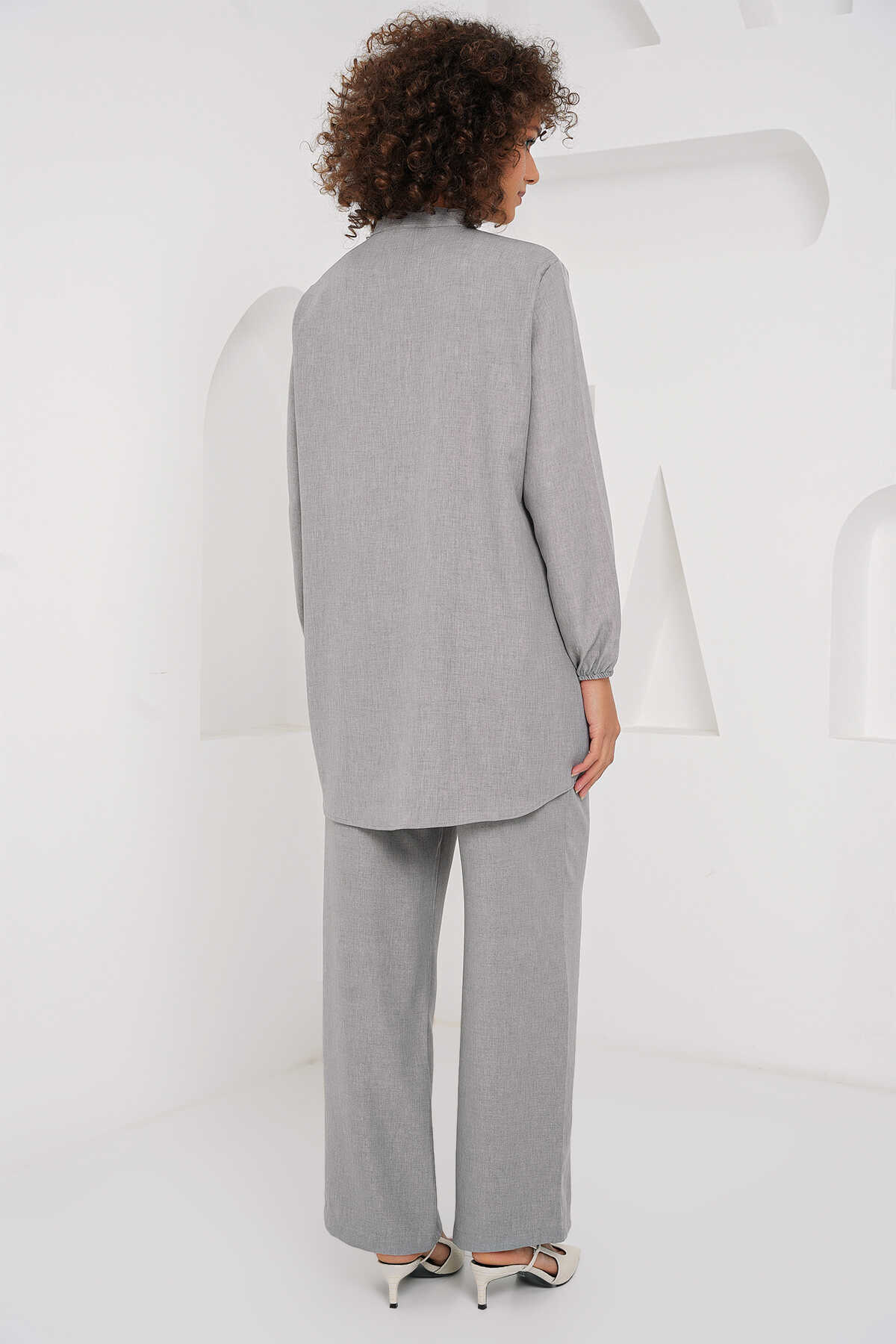 6678 Keten Tunik Pantolon İkili Takım - Gri - Kombin