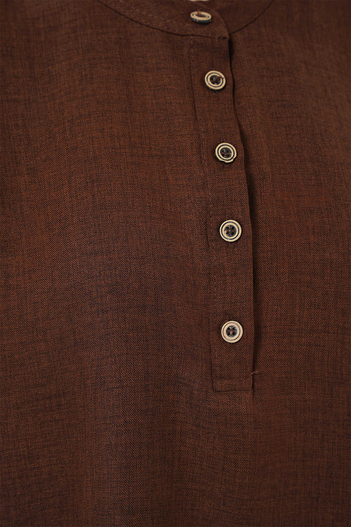 6678 Keten Tunik Pantolon İkili Takım - Kahverengi