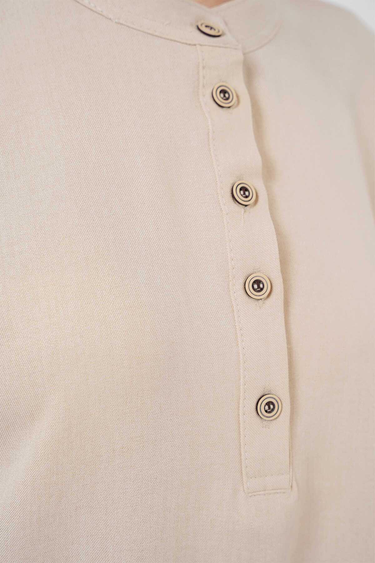 6678 Keten Tunik Pantolon İkili Takım - Krem