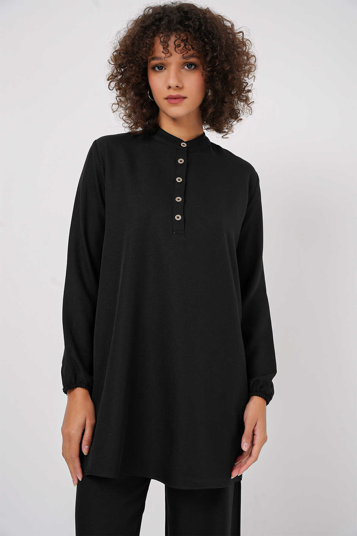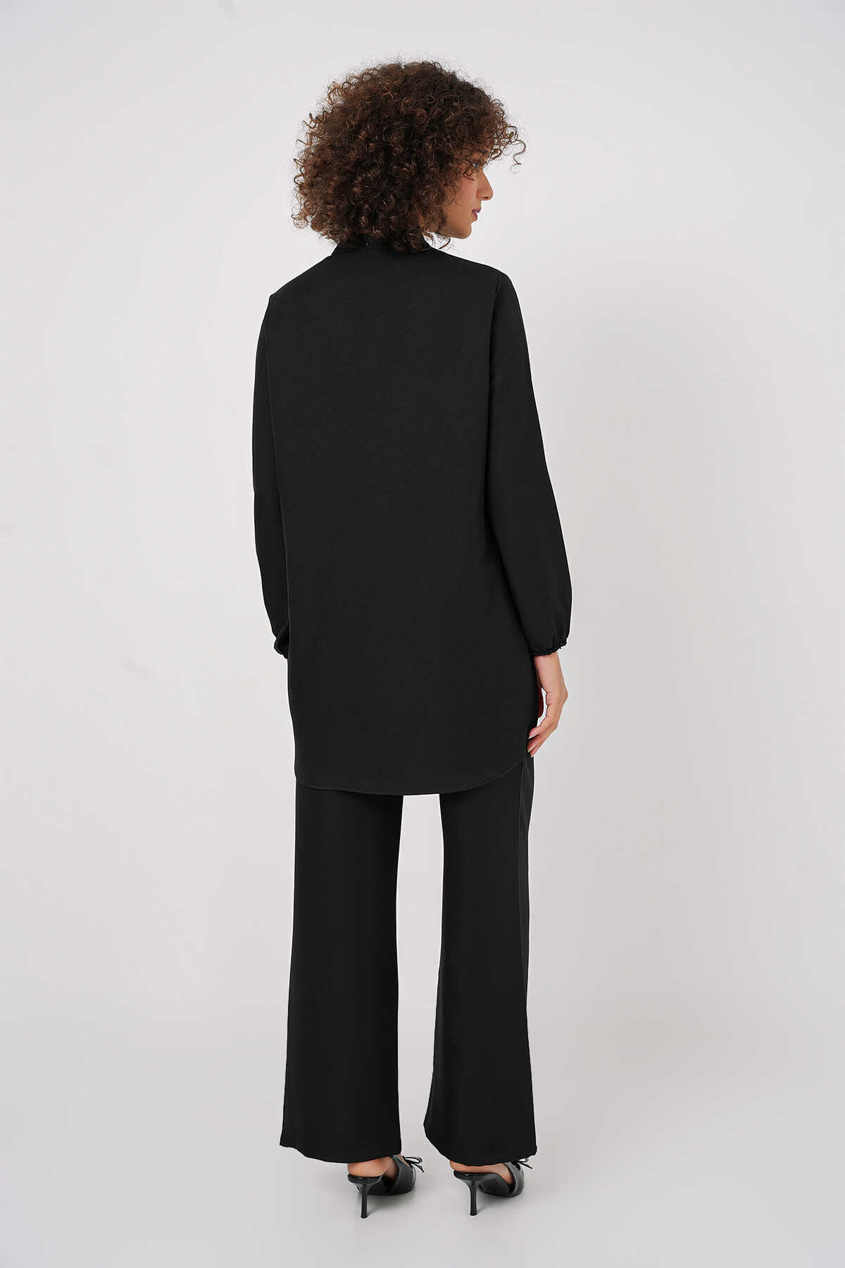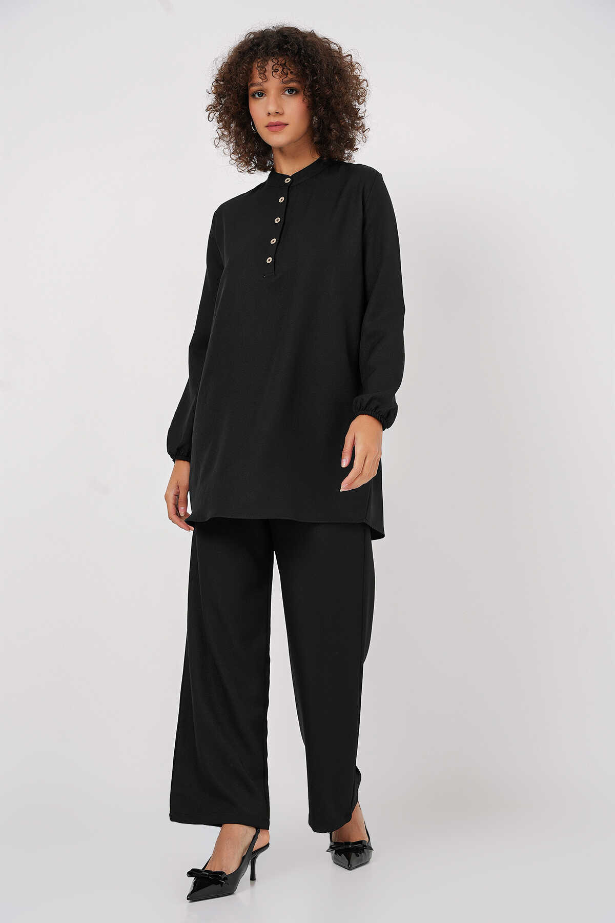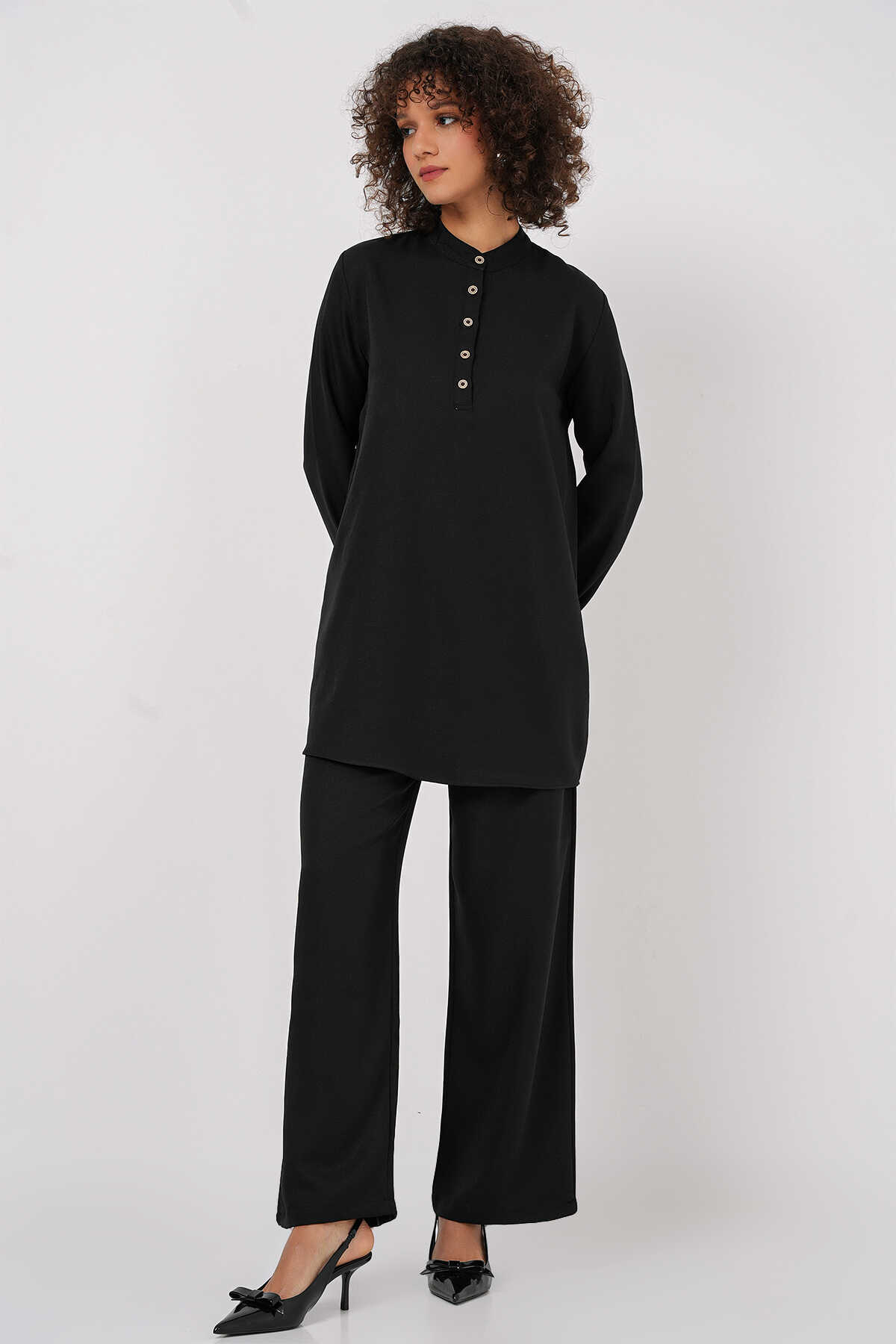 6678 Keten Tunik Pantolon İkili Takım - Siyah - Kombin