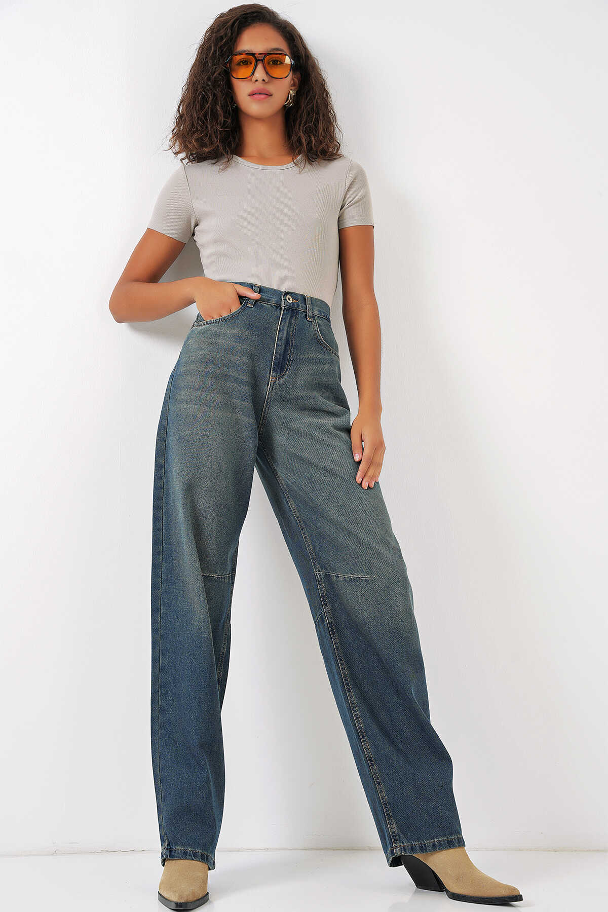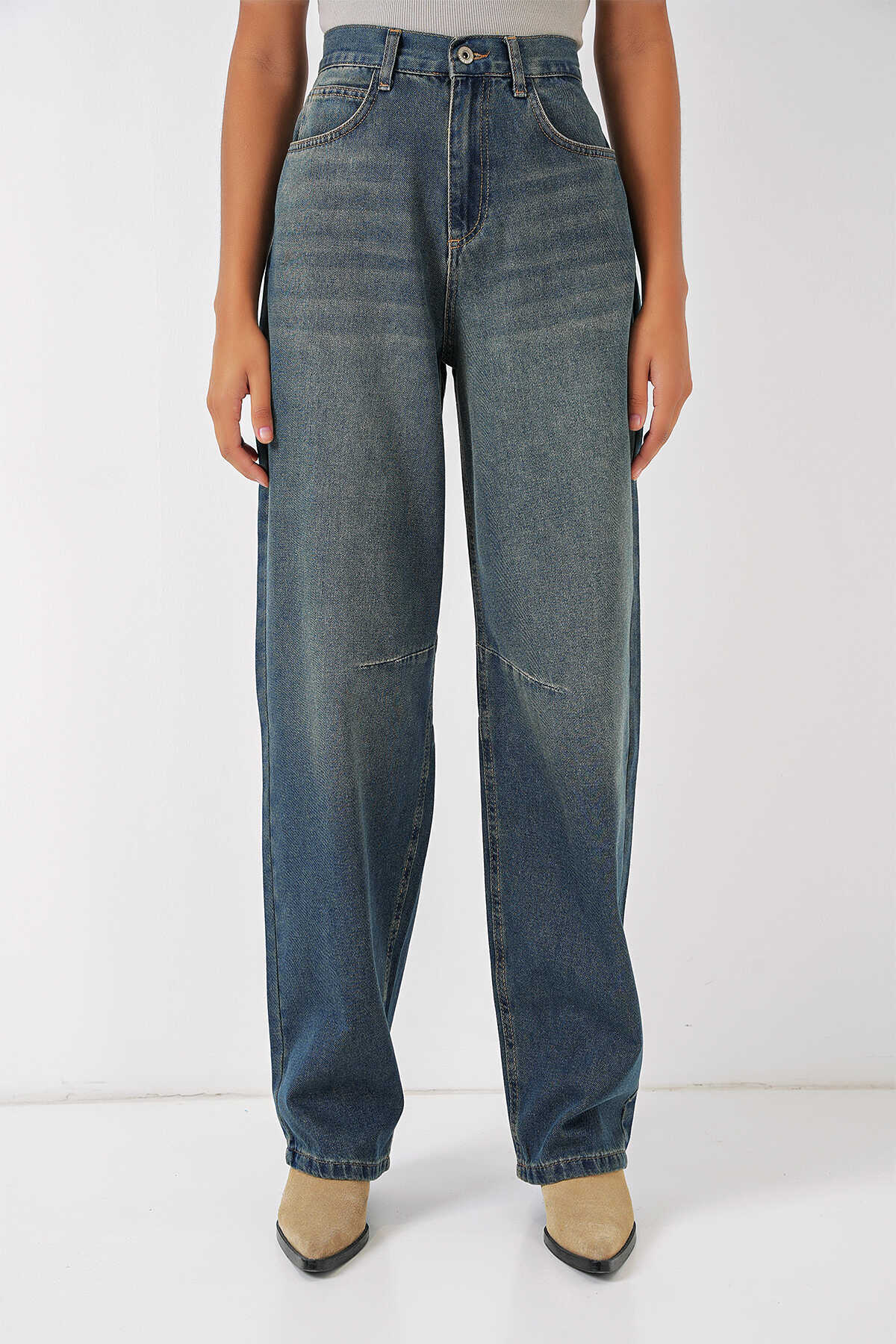 Kadin Yüksek Bel Baggy Kot Pantolon