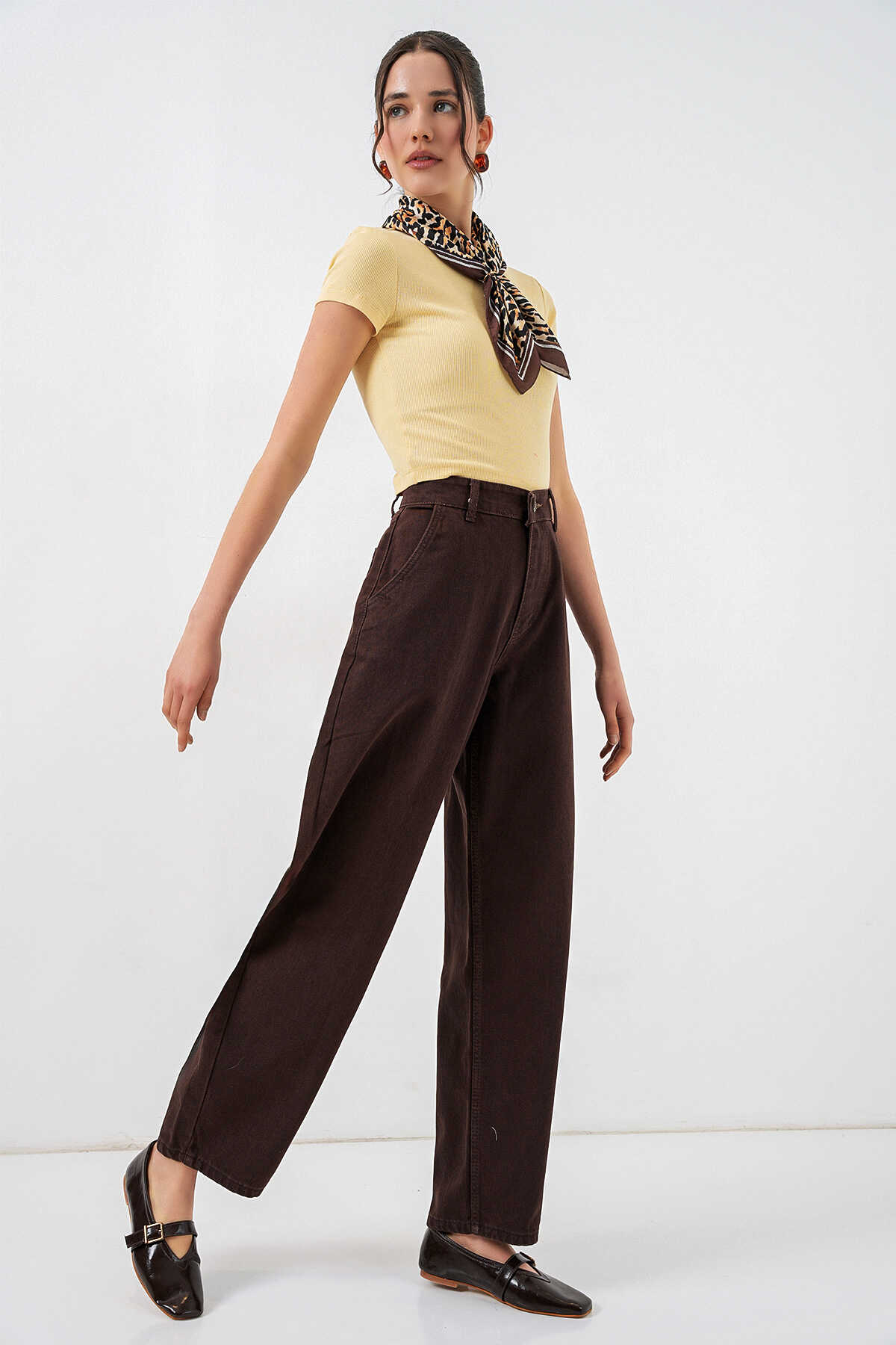 Kadin Yüksek Bel Baggy Kot Pantolon