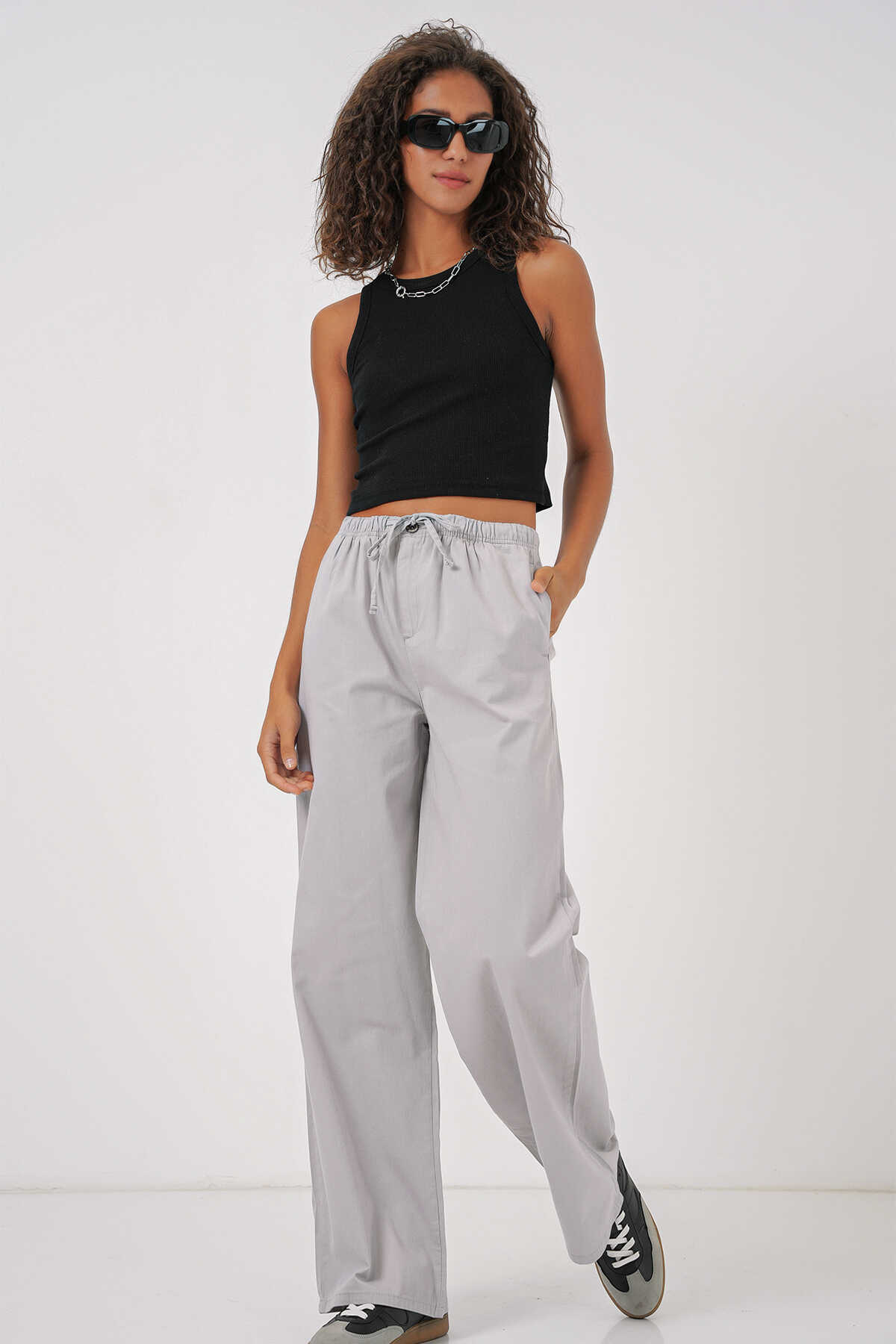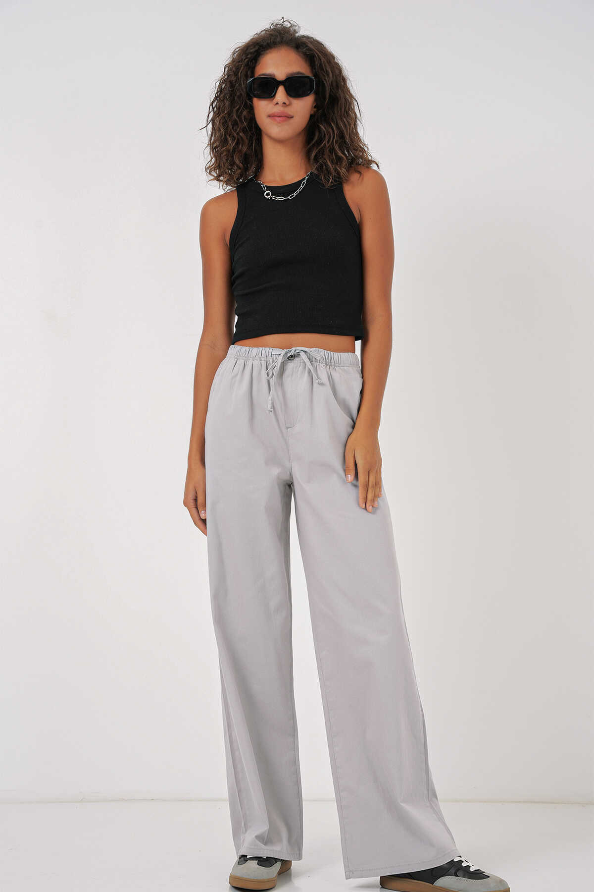6690 Kadın Bol Paça Yüksek Bel Pantolon - Gri - Kombin