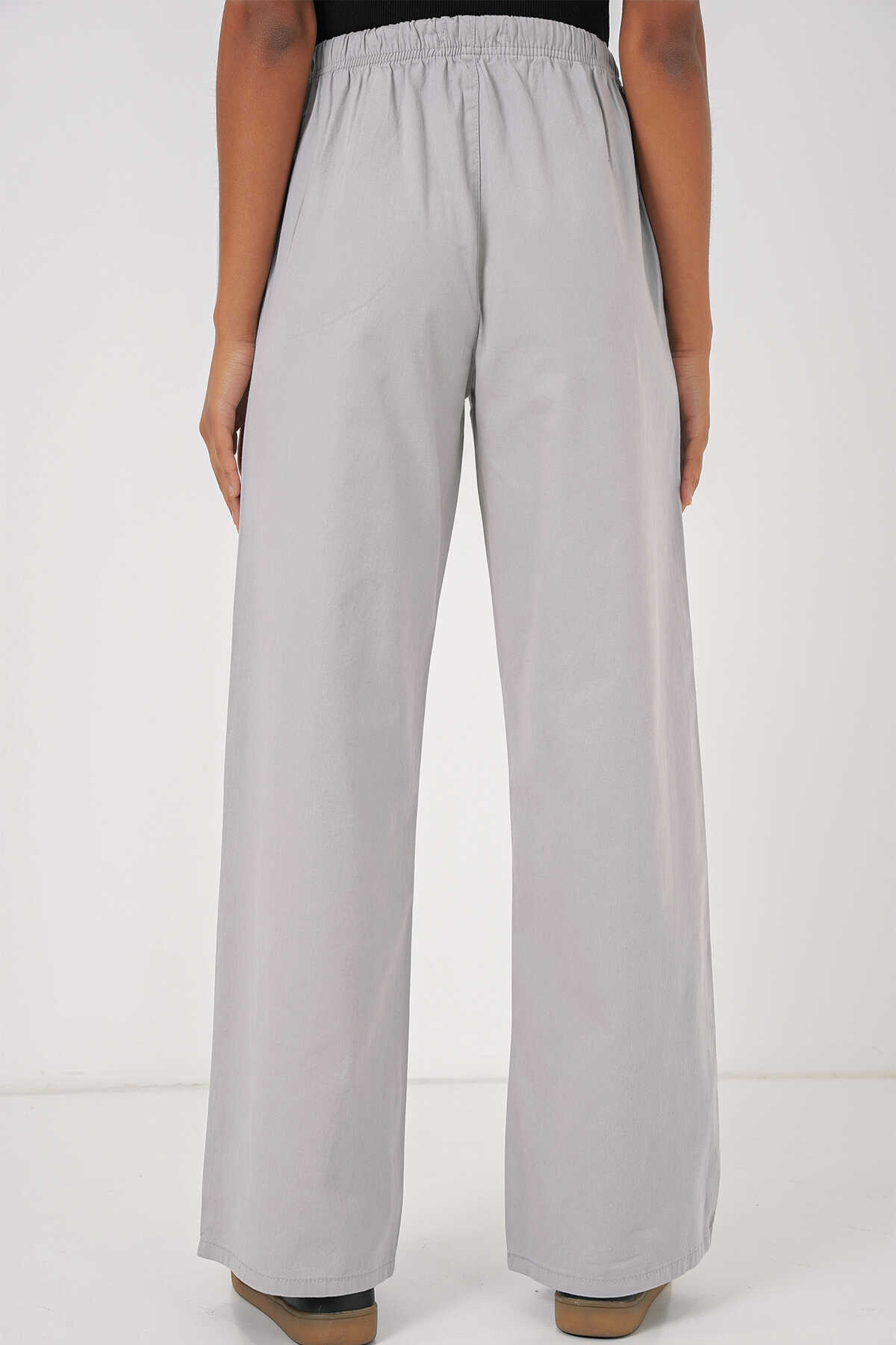6690 Kadın Bol Paça Yüksek Bel Pantolon - Gri
