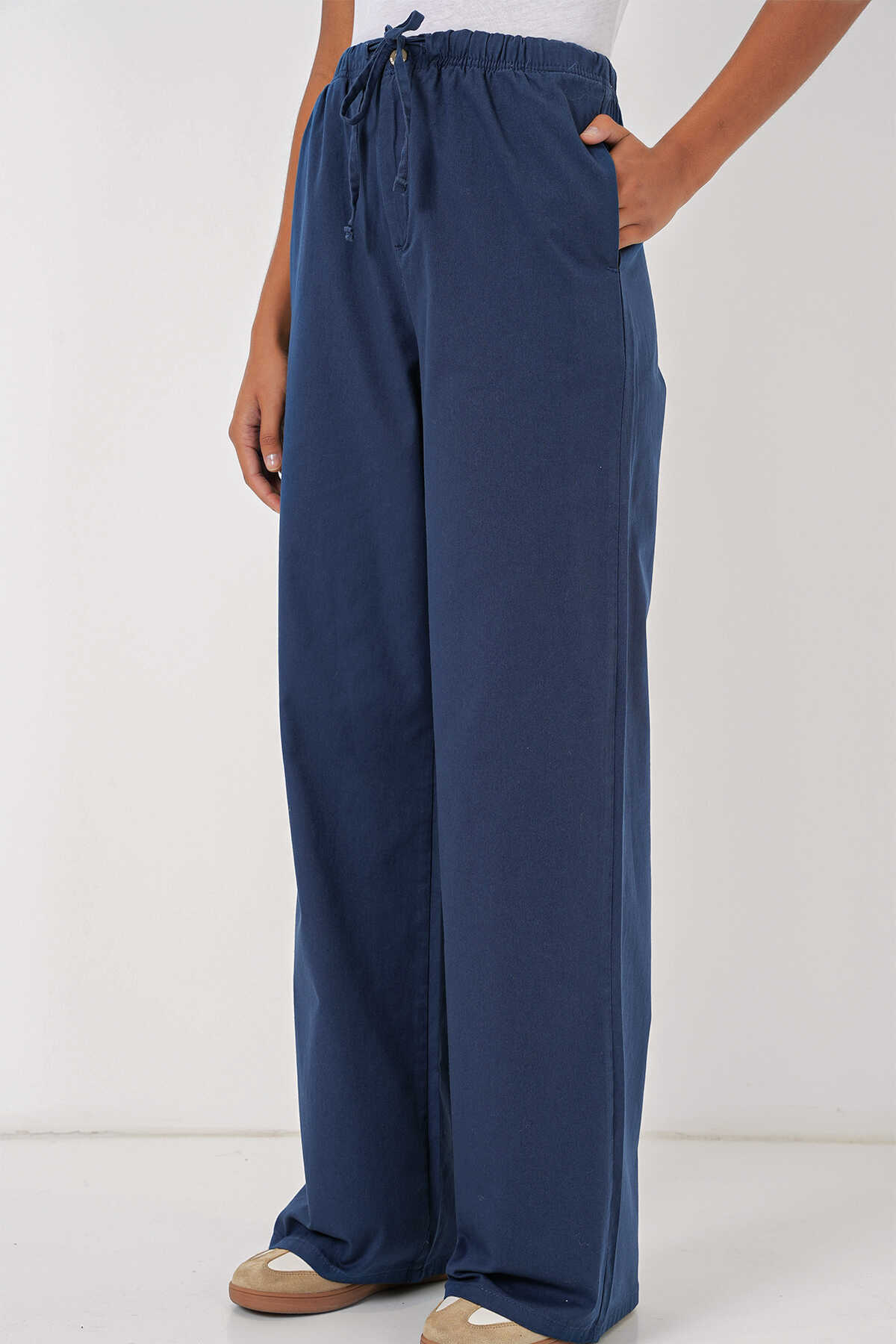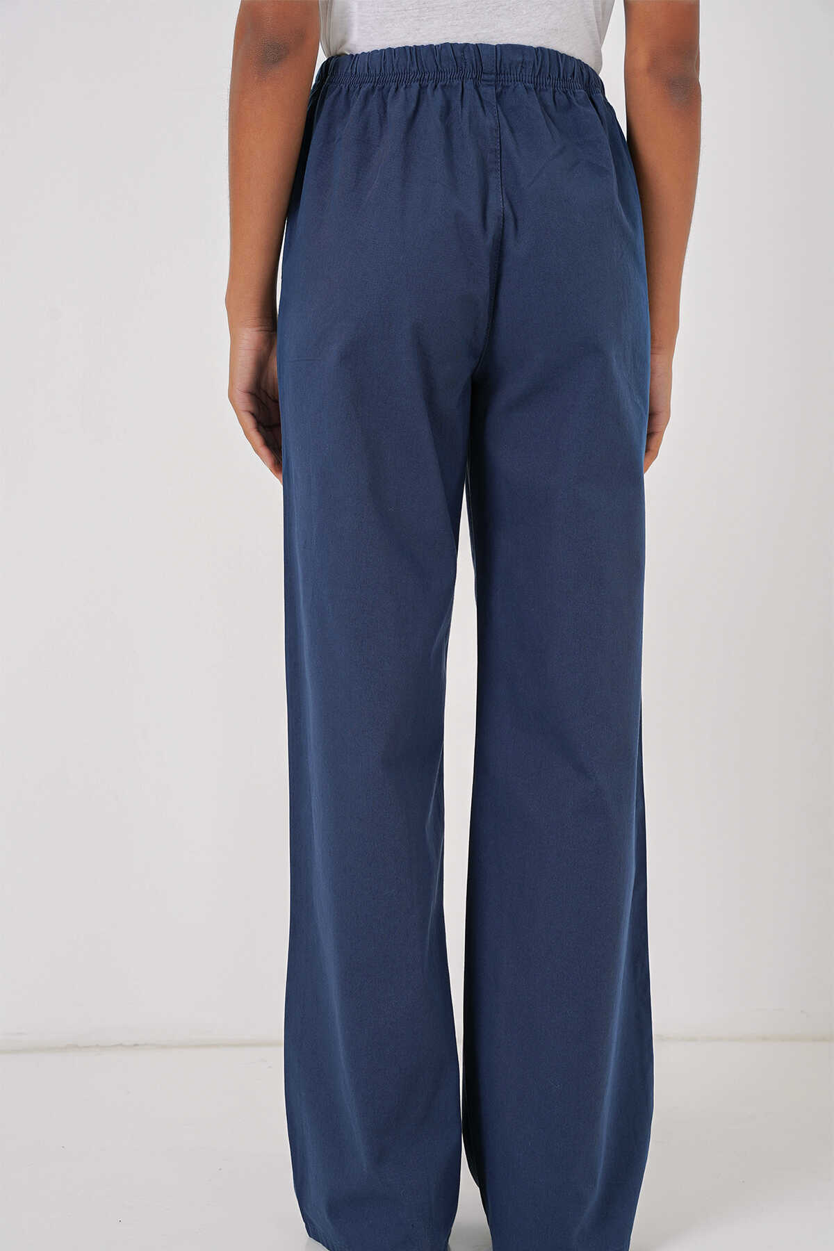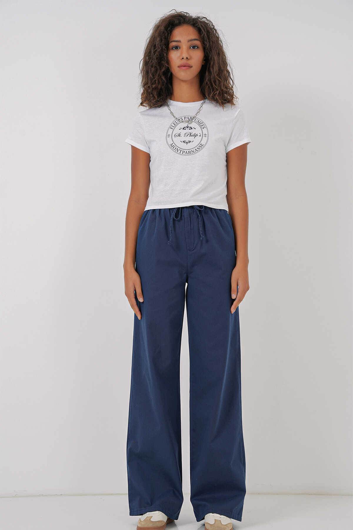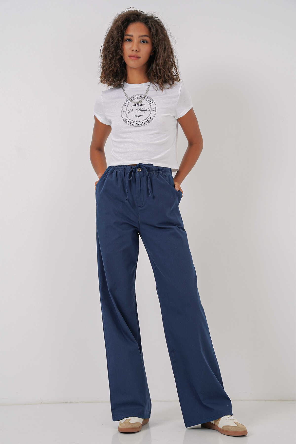 6690 Kadın Bol Paça Yüksek Bel Pantolon - İndigo - Kombin