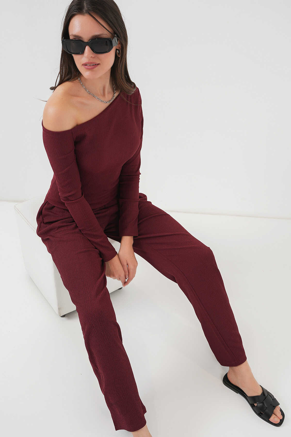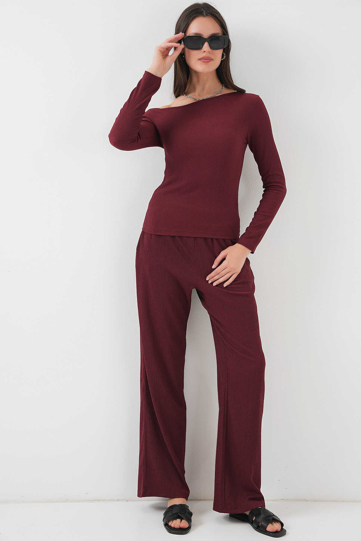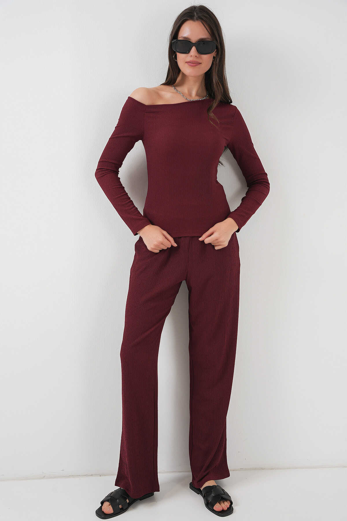 6708 Düşük Omuz Alt Üst Takım - Bordo - Kombin