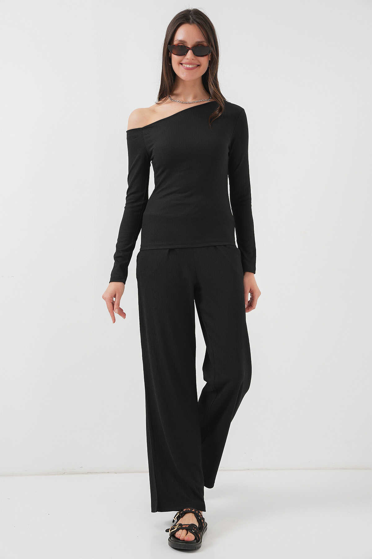 6708 Düşük Omuz Alt Üst Takım - Siyah - Kombin