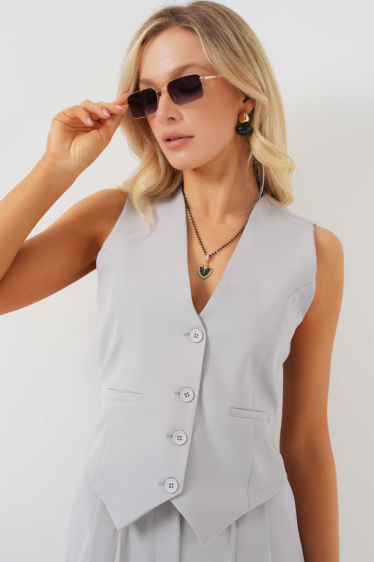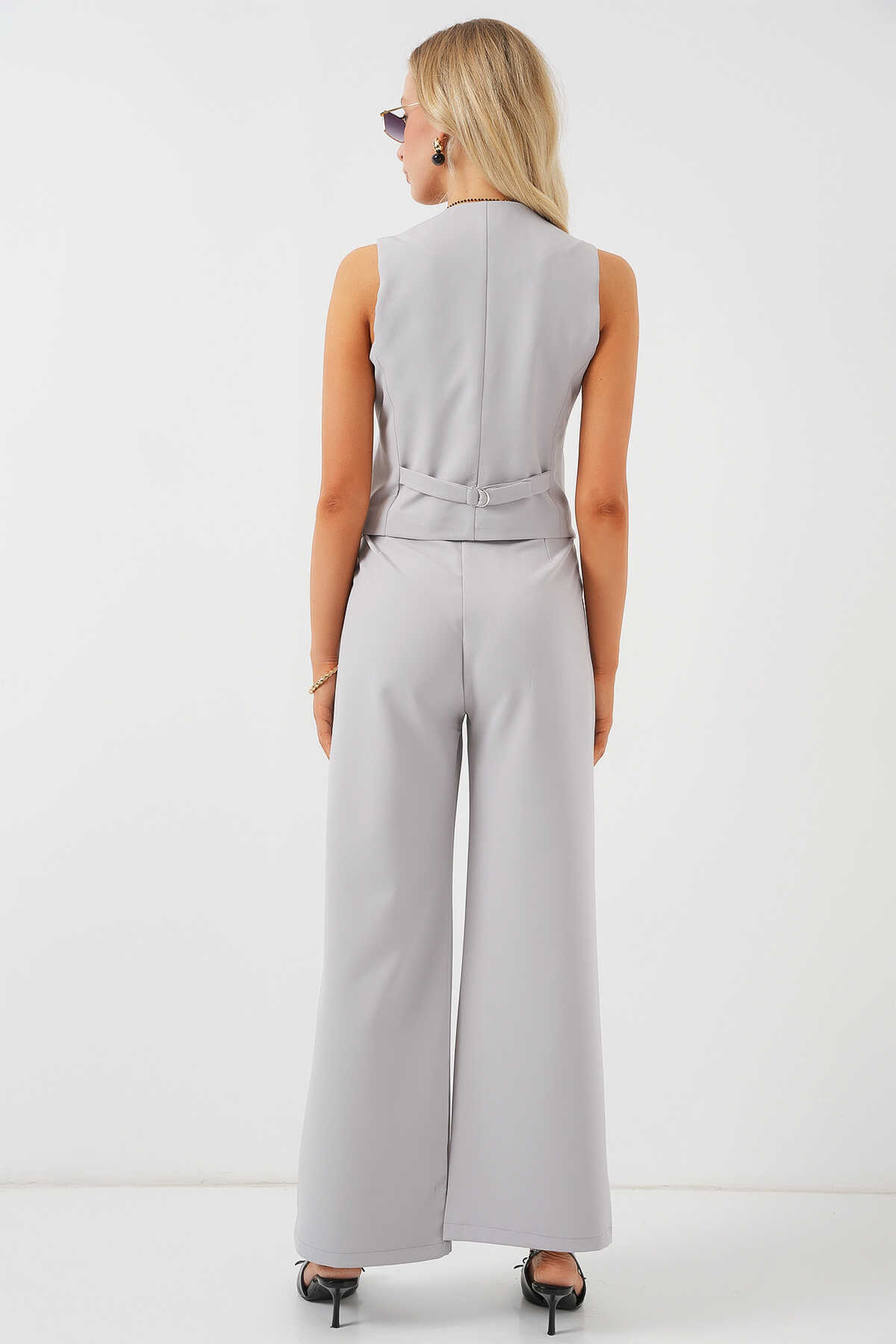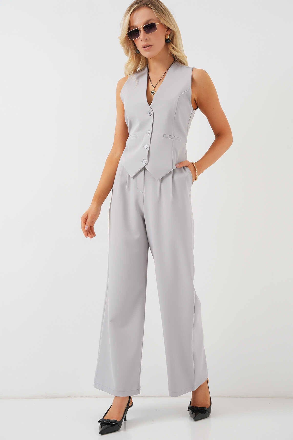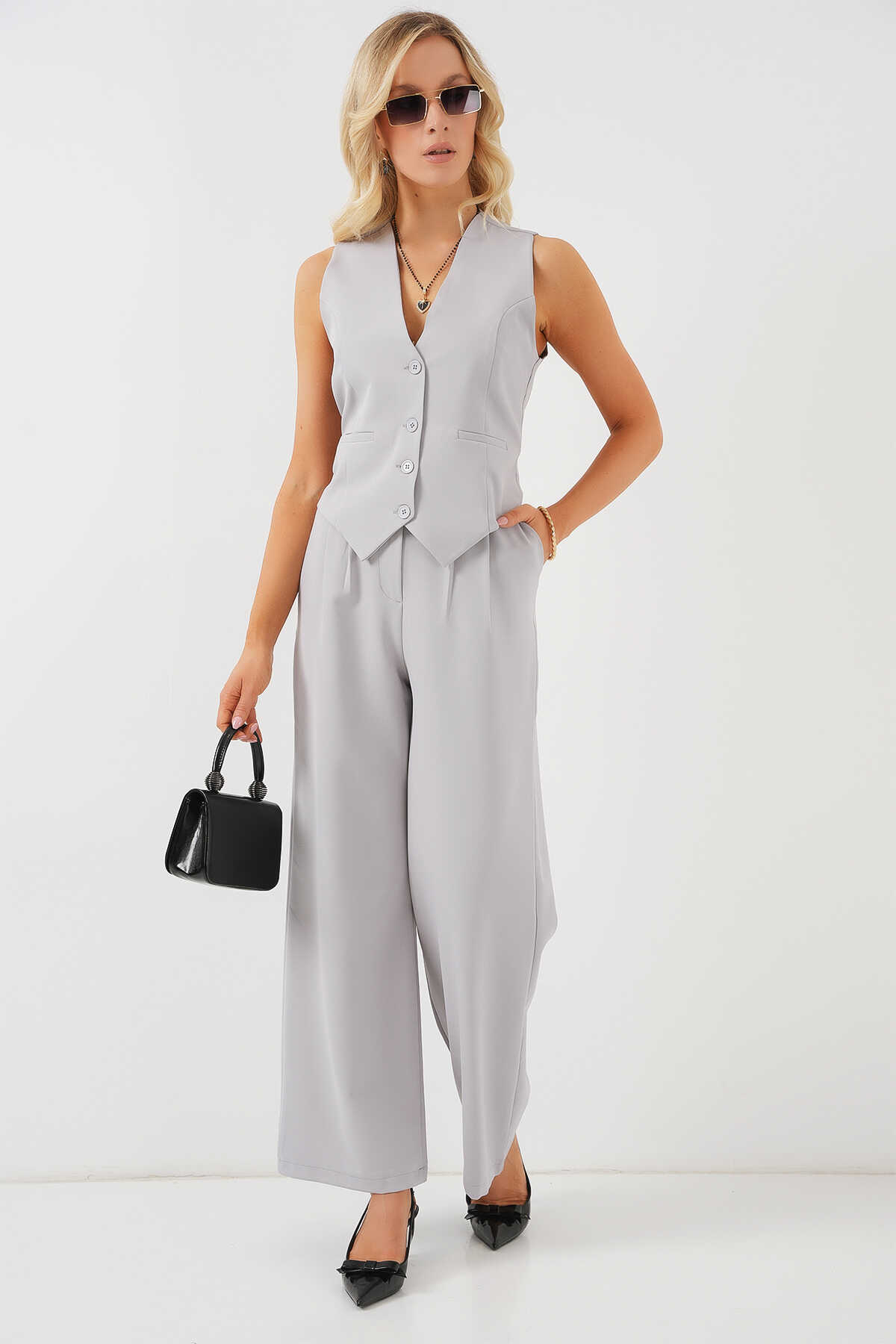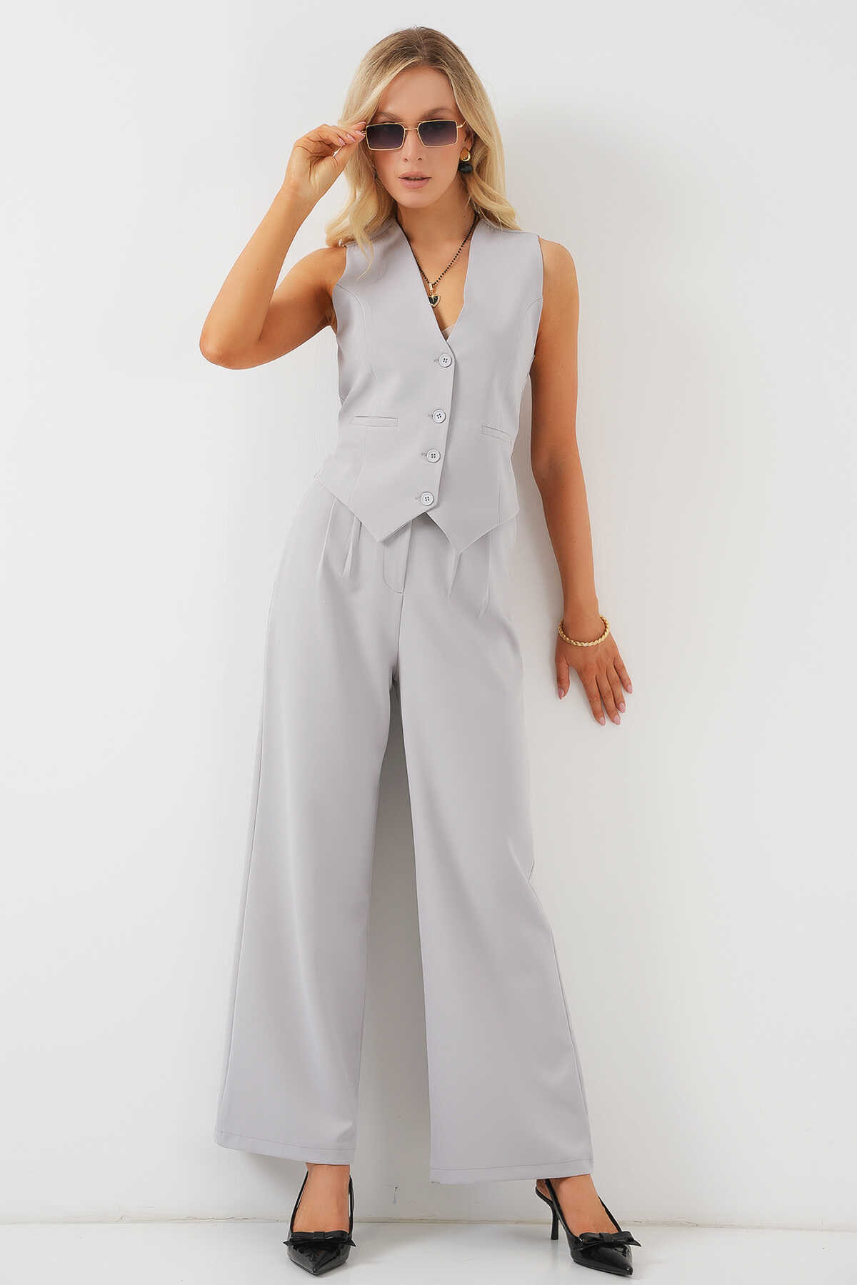 6709 Kadın Yelek Pantolon İkili Takım - Gri - Kombin