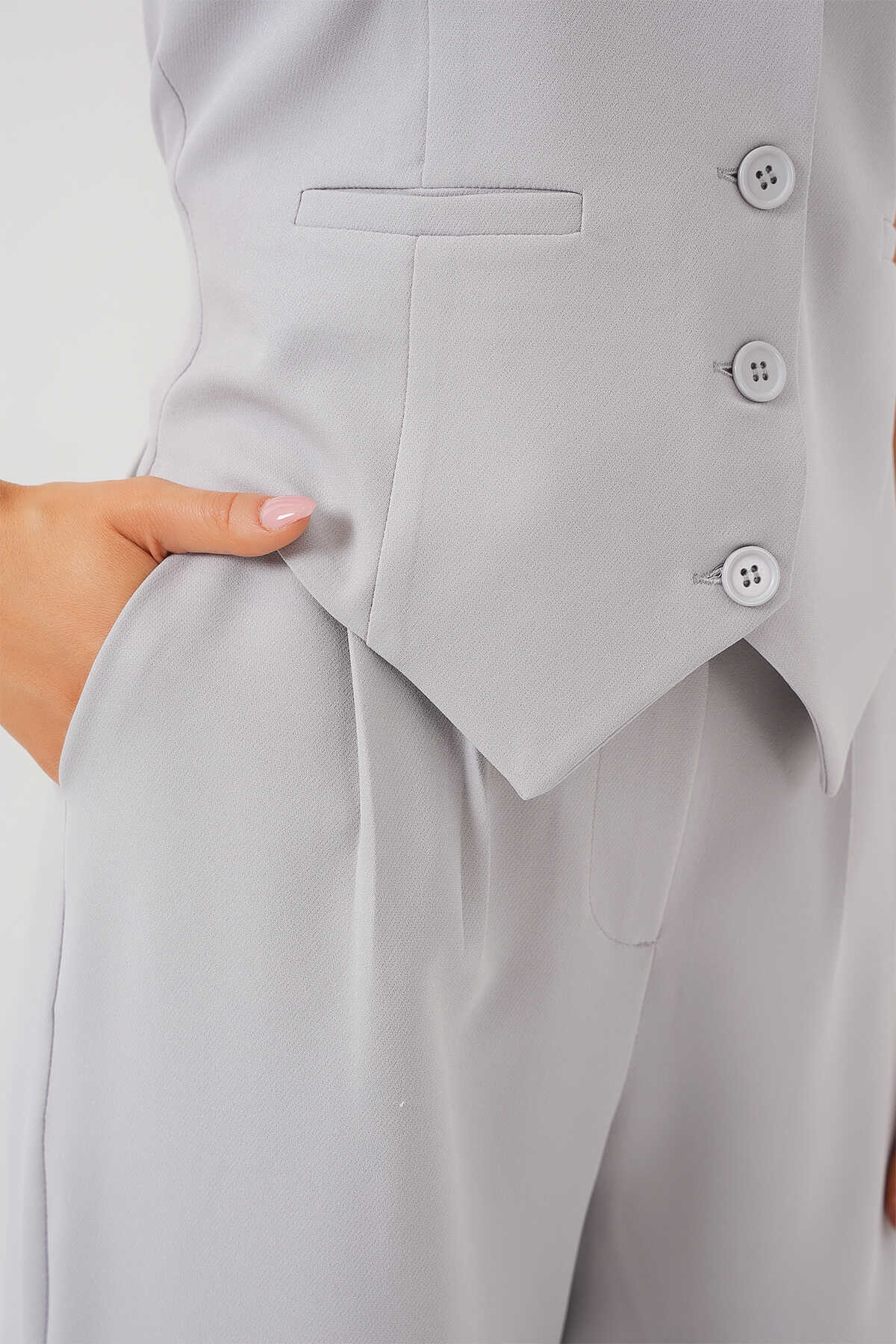 6709 Kadın Yelek Pantolon İkili Takım - Gri