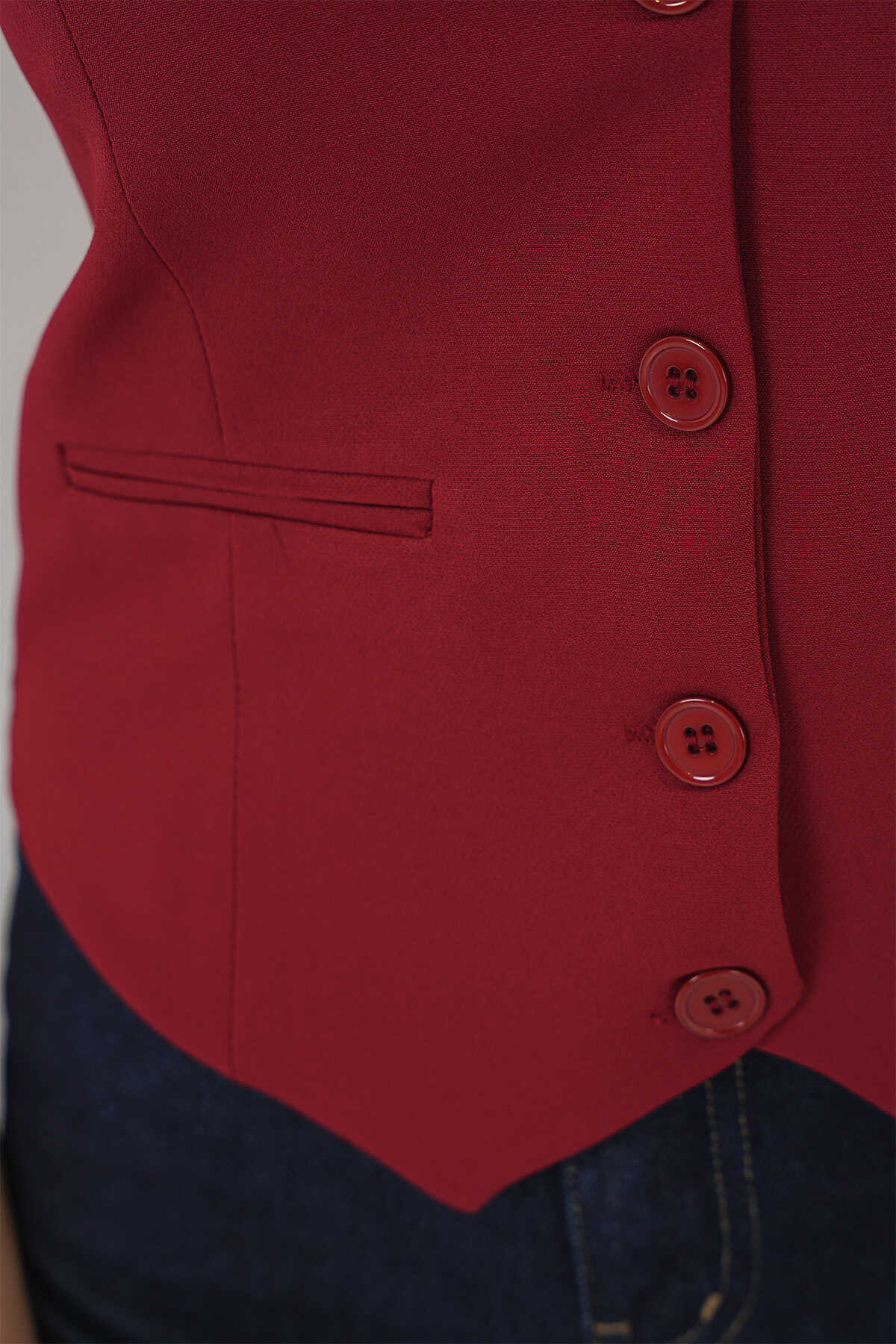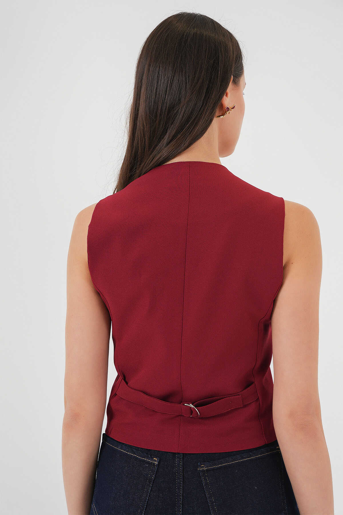 6796 Kısa Dokuma Yelek - Bordo - Kombin