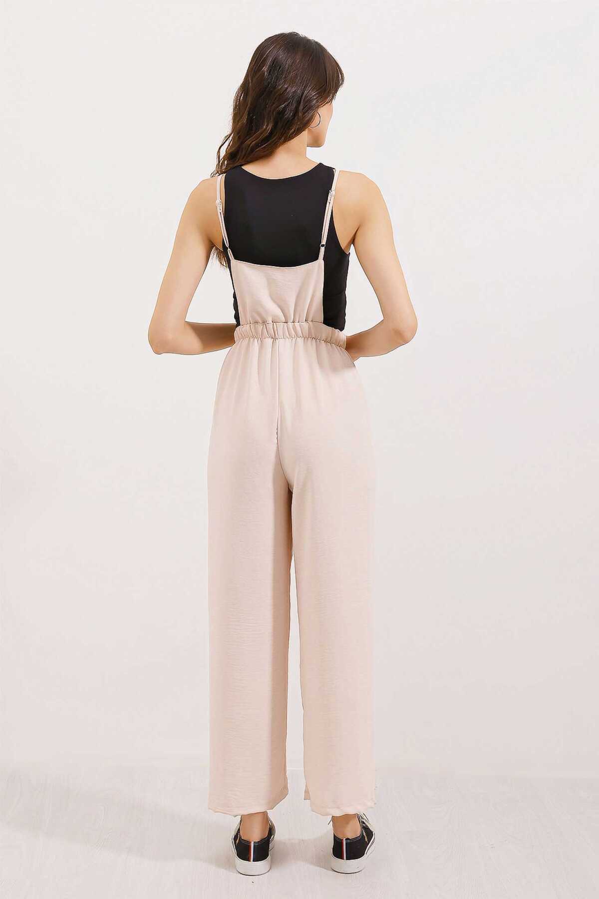 7023 Askılı Bahçıvan Tulum - Bej - Kombin