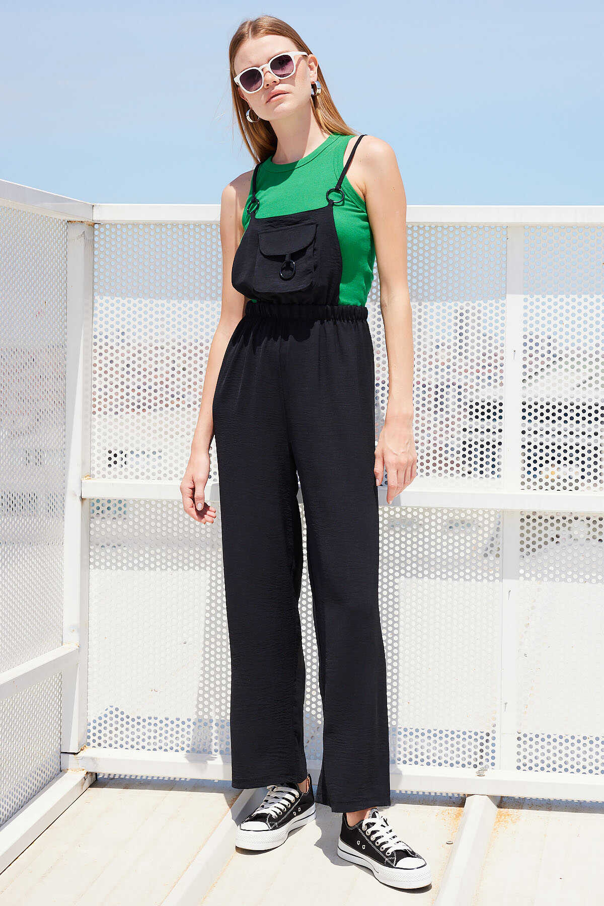 7023 Askılı Bahçıvan Tulum - Siyah - Kombin