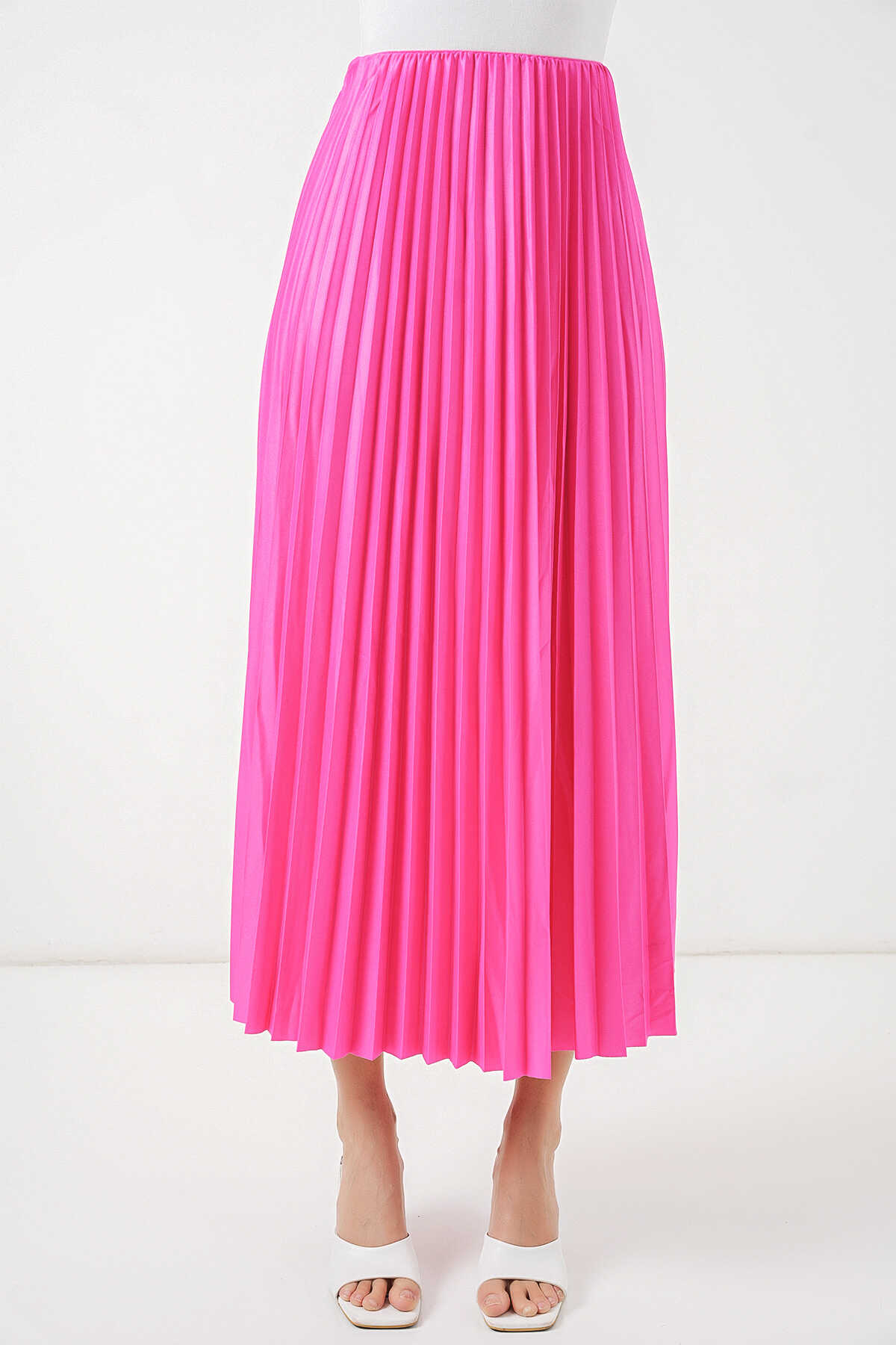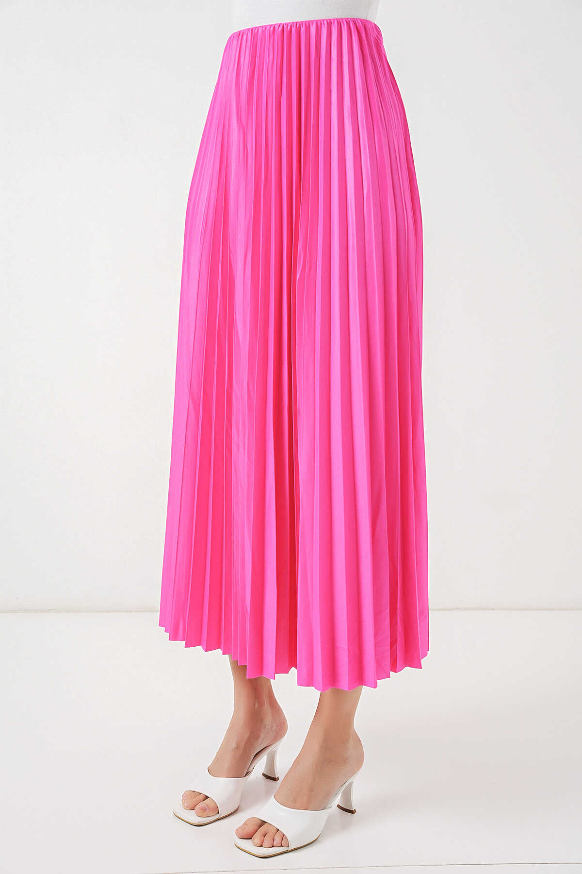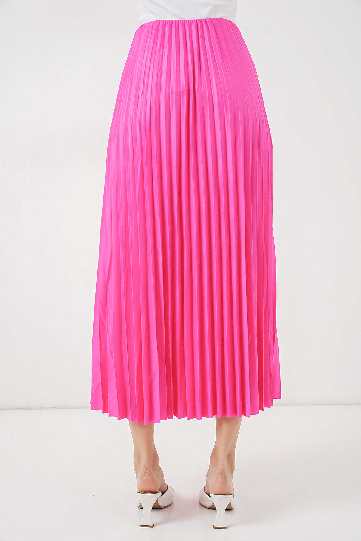8009 Deri Görünümlü Piliseli Etek - Fuşya