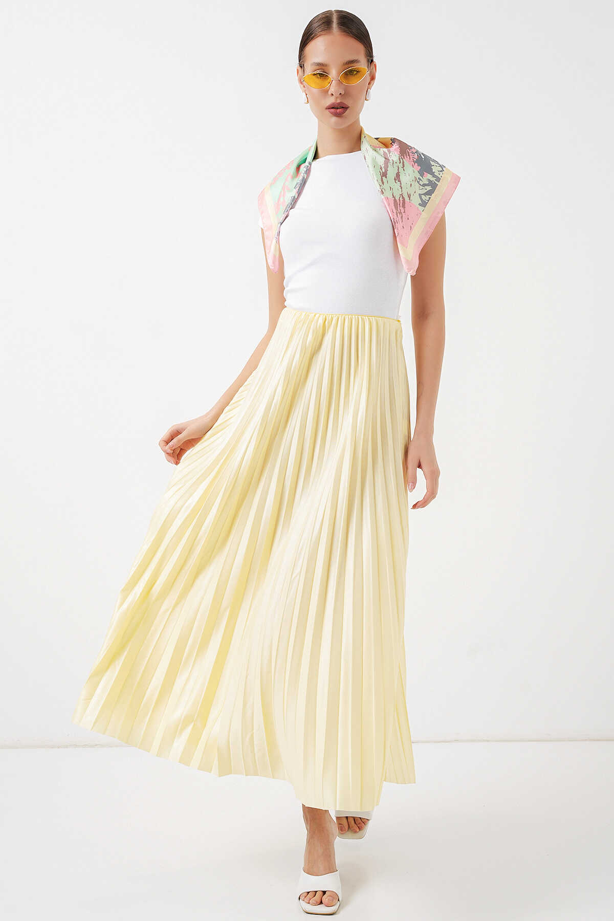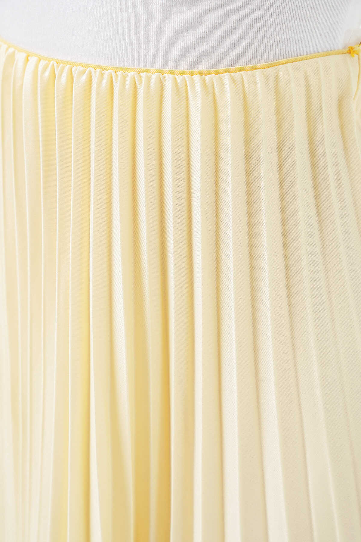 8009 Deri Görünümlü Piliseli Etek - Sarı - Kombin