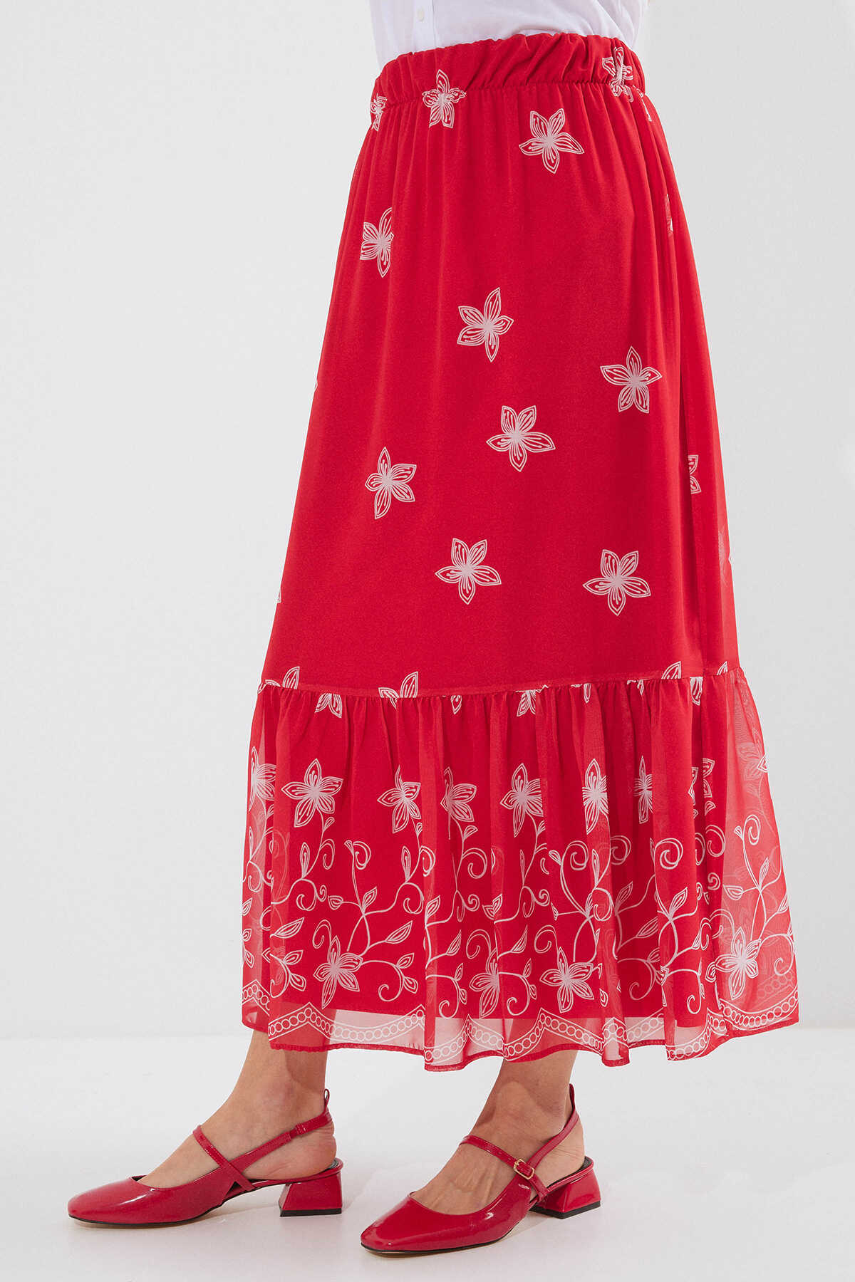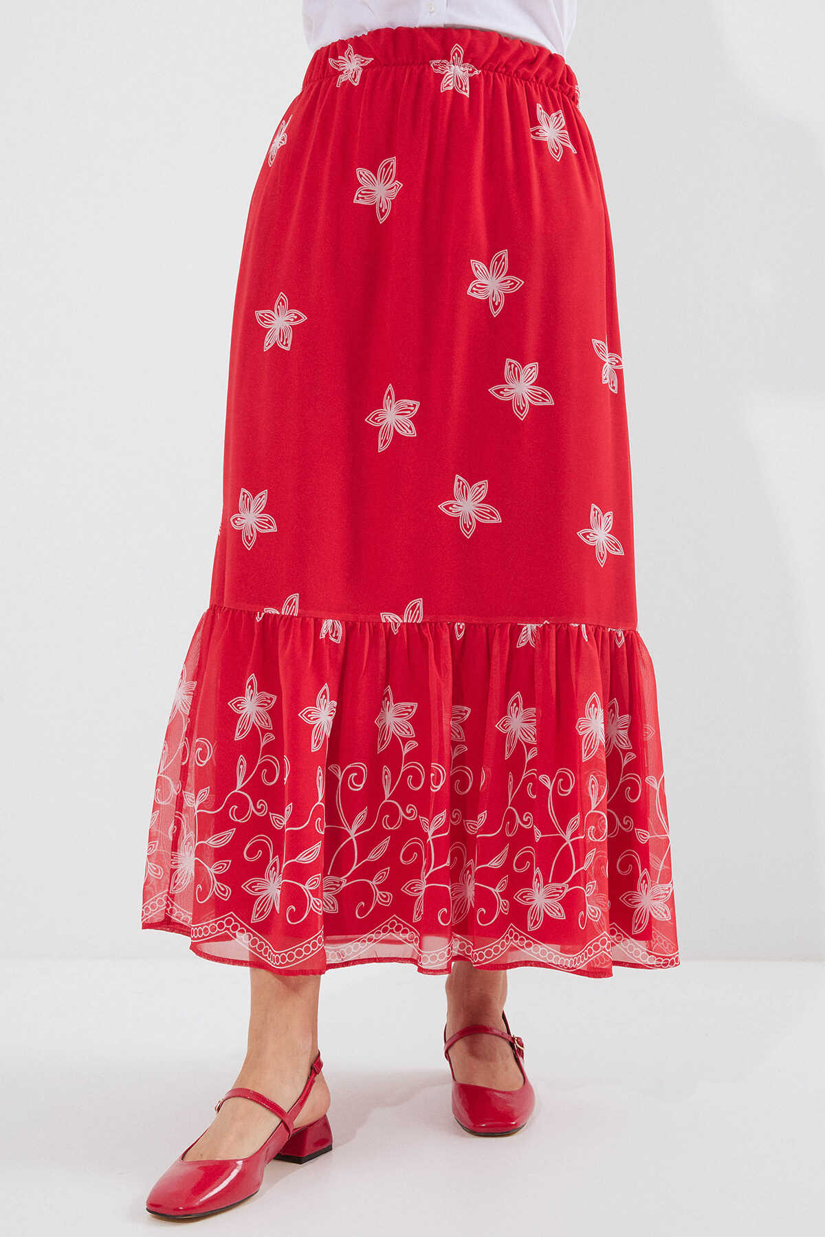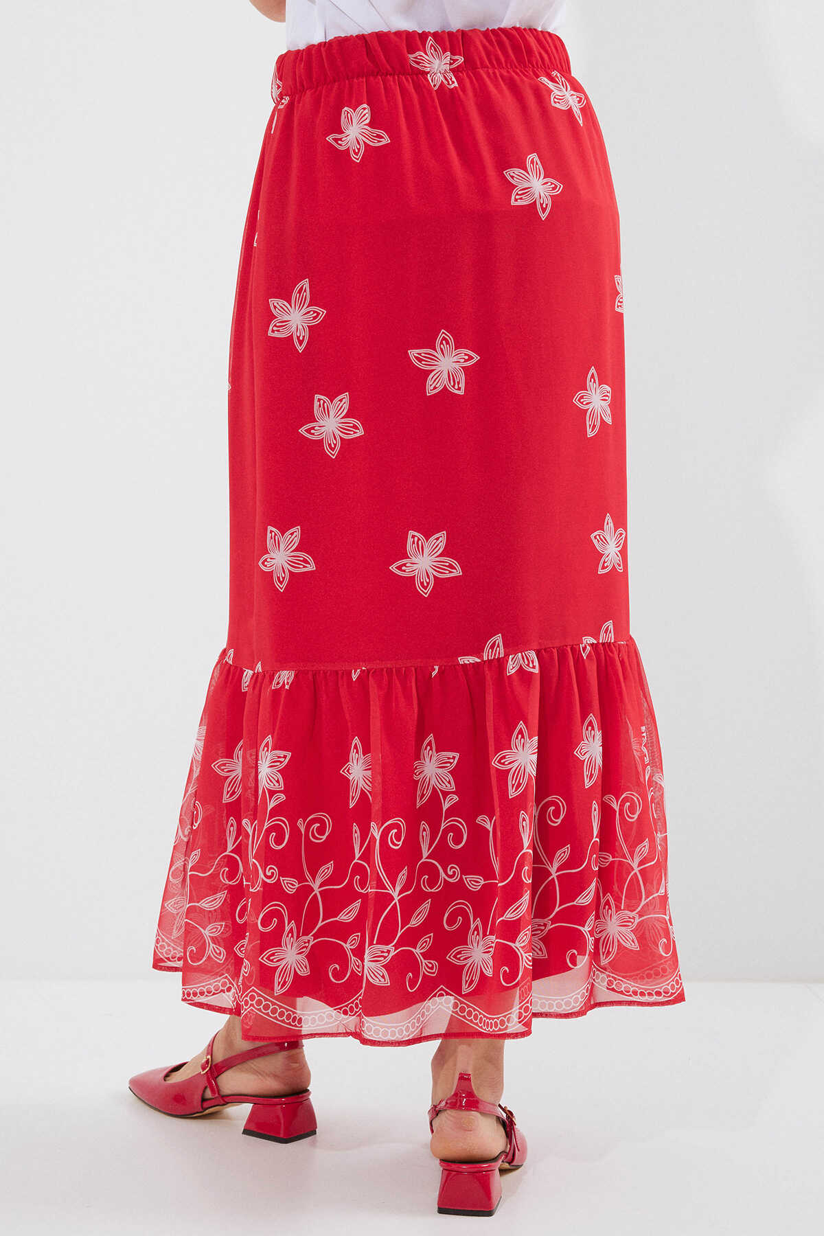8010 Desenli Şifon Etek - A.Kırmızı - Kombin