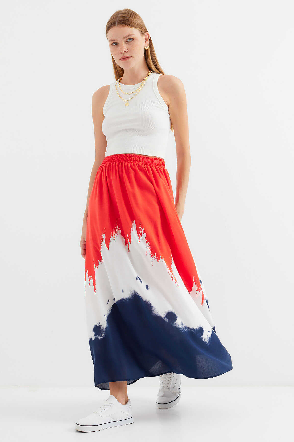 Desenli Uzun Viskon Etek
