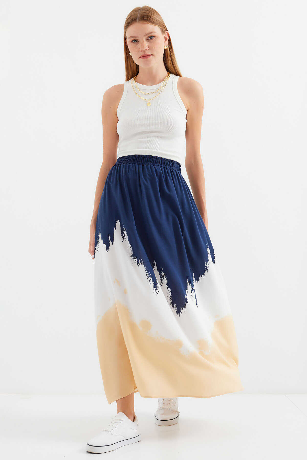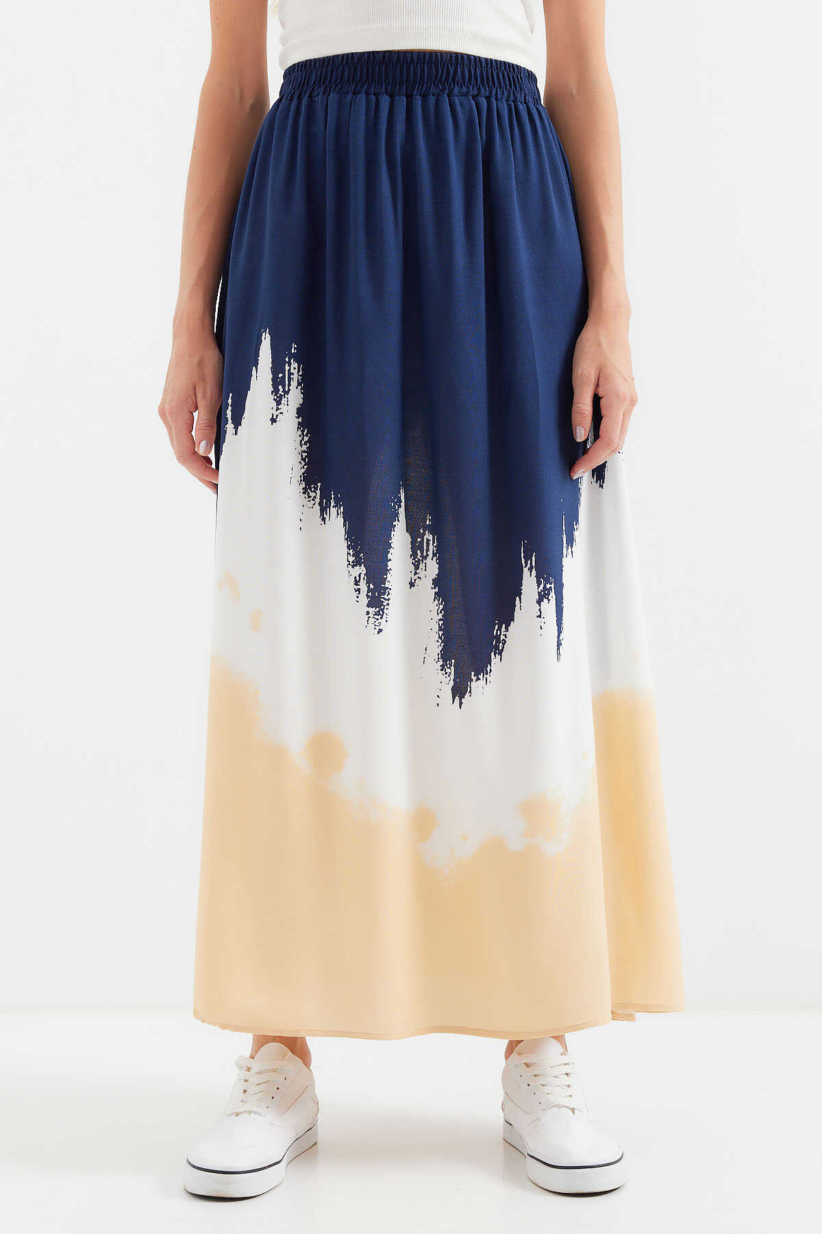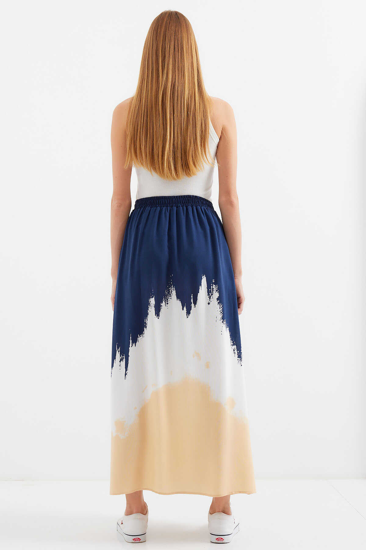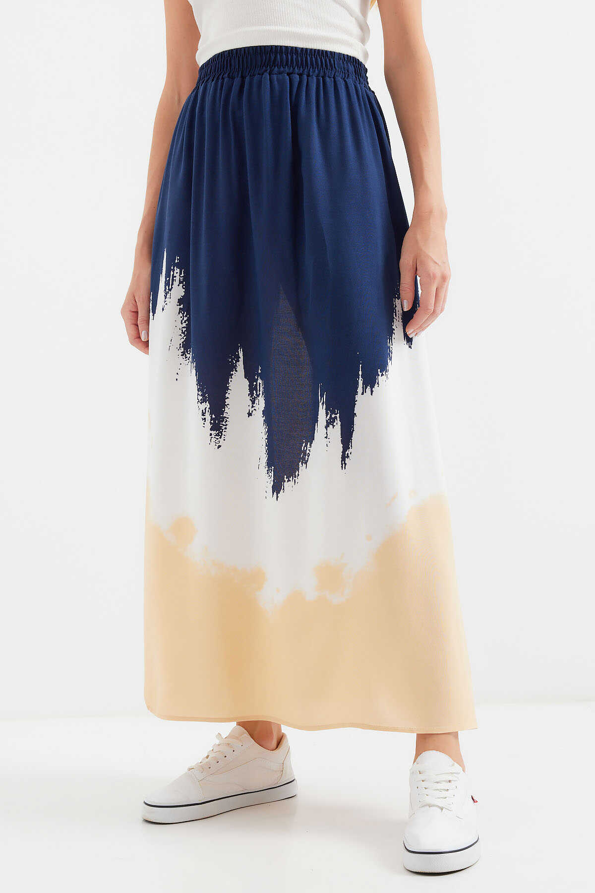 8025 Desenli Uzun Viskon Etek - Lacivert - Kombin