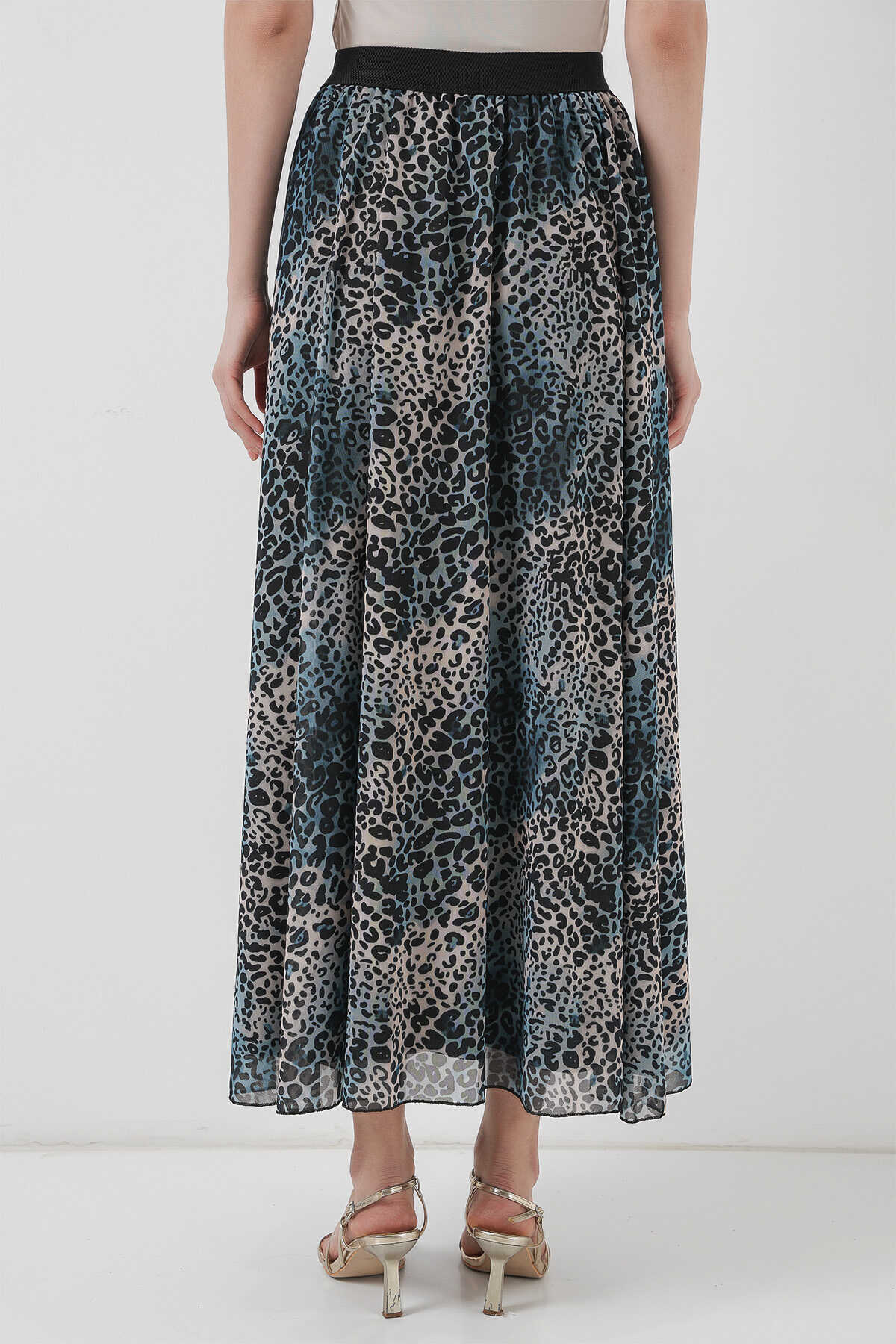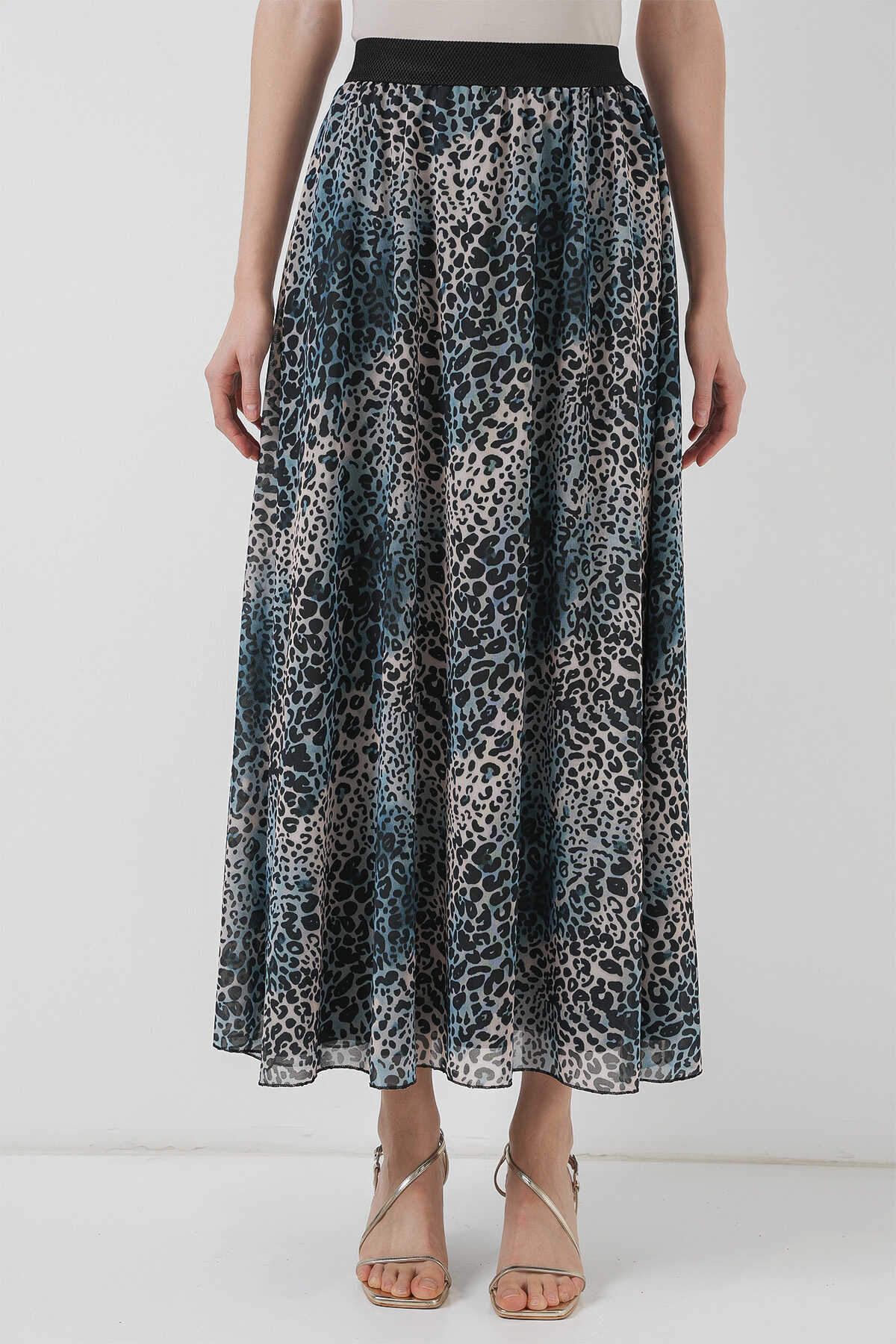 8032 Uzun Şifon Etek - İndigo - Kombin