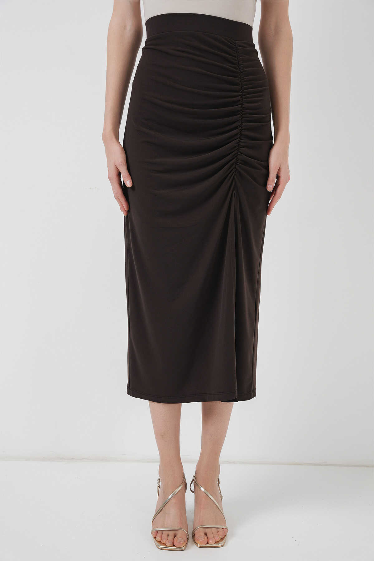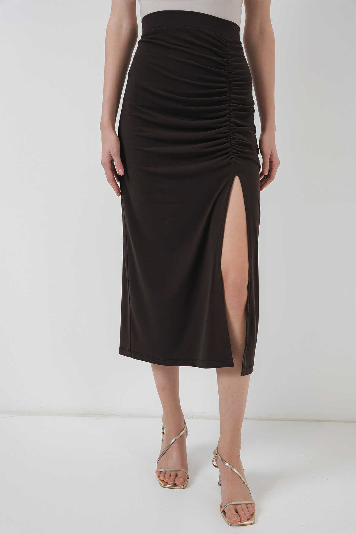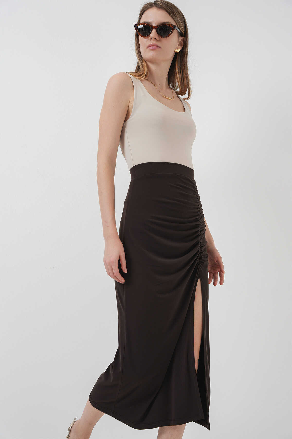 8033 Sandy Yırtmaçlı Etek - Kahverengi