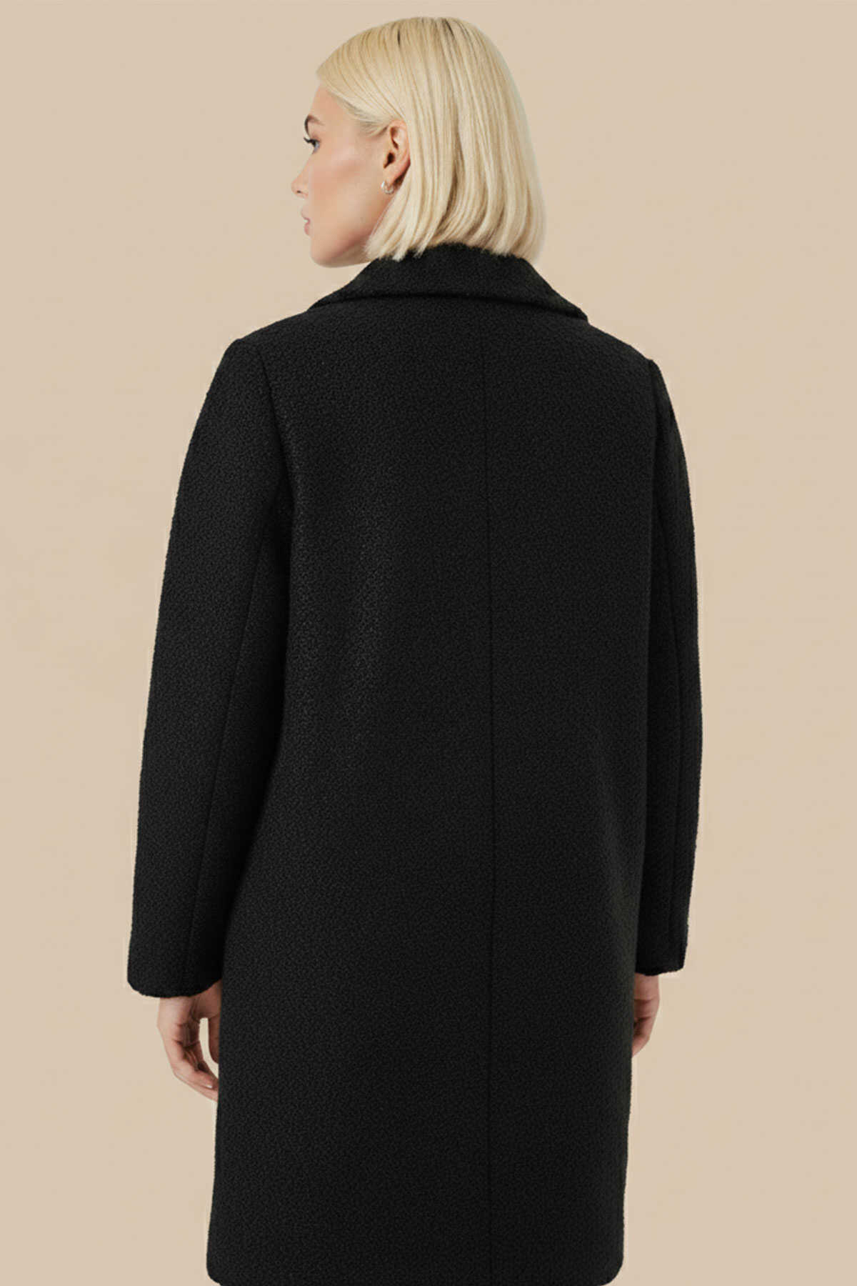 9085 Kadın Oversize Kaşe Kaban - D. Siyah