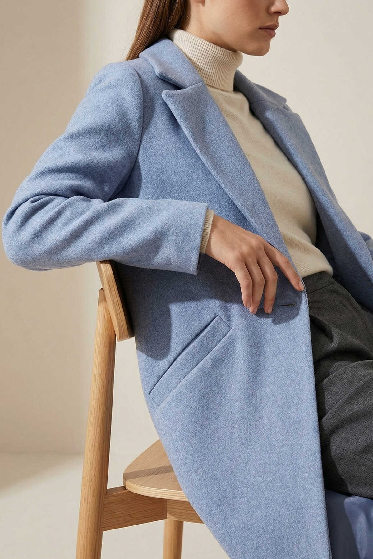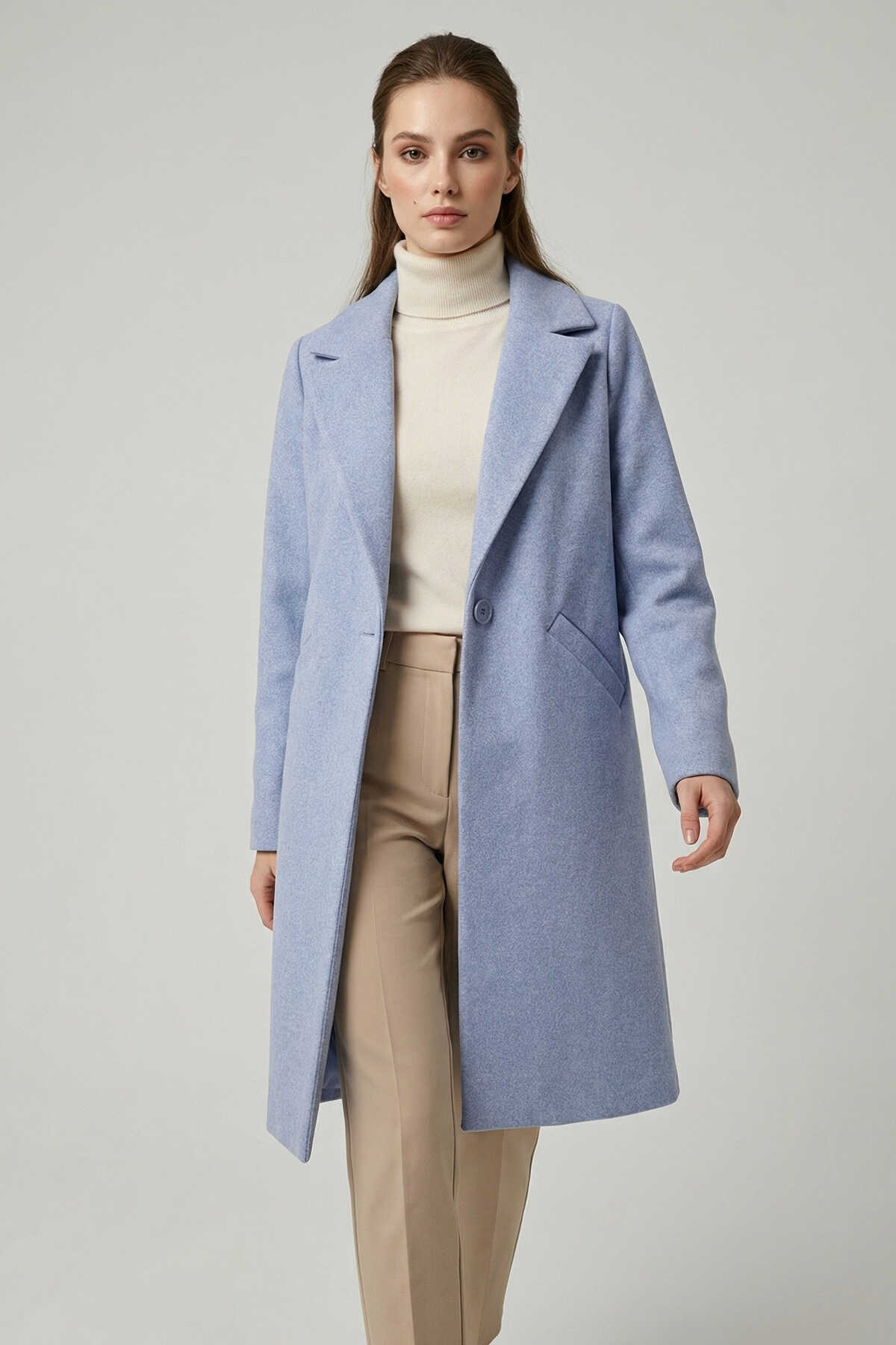 9085 Kaşe Kaban - Mavi - Kombin