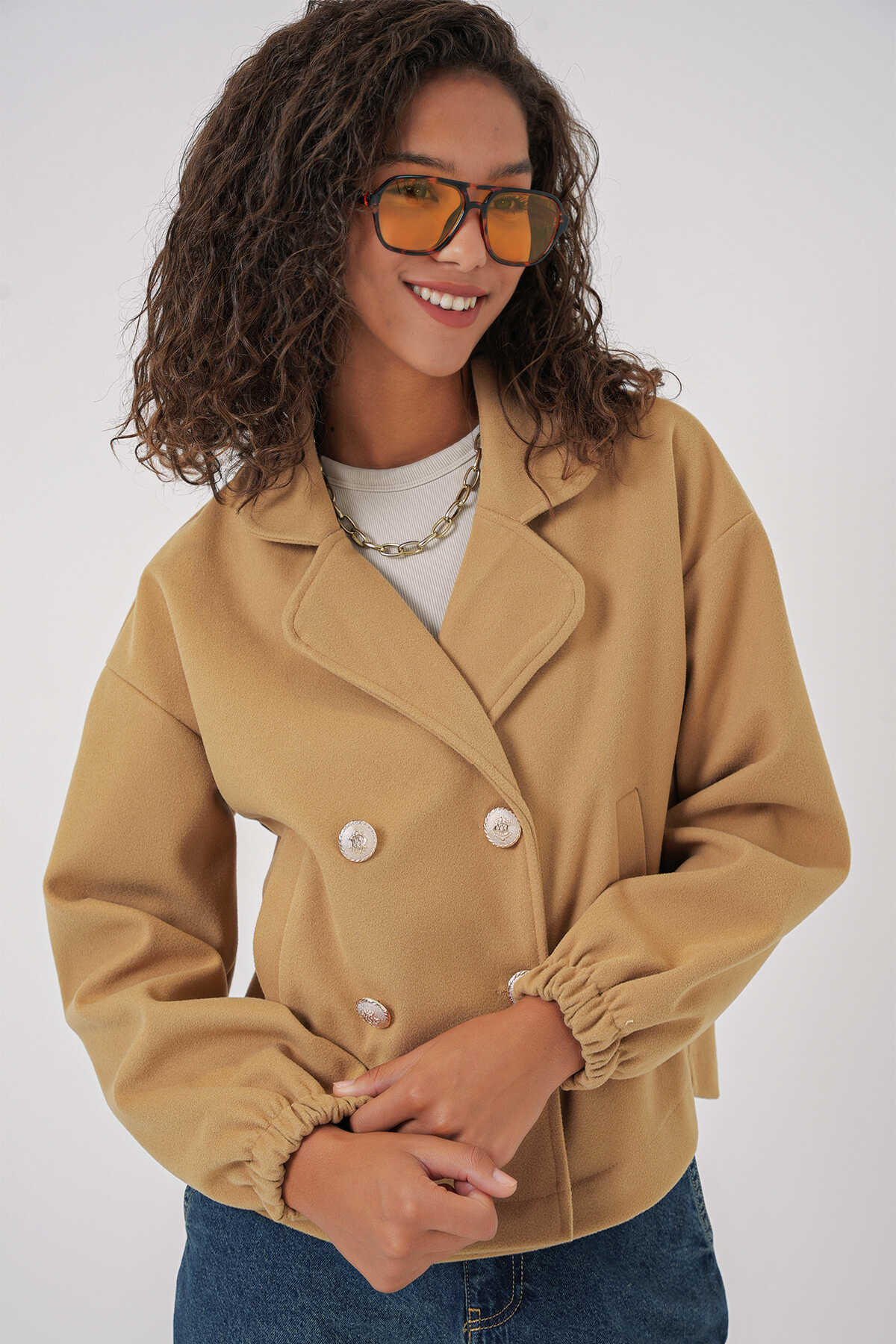 9117 Kruvaze Yaka Crop Ceket - Hardal