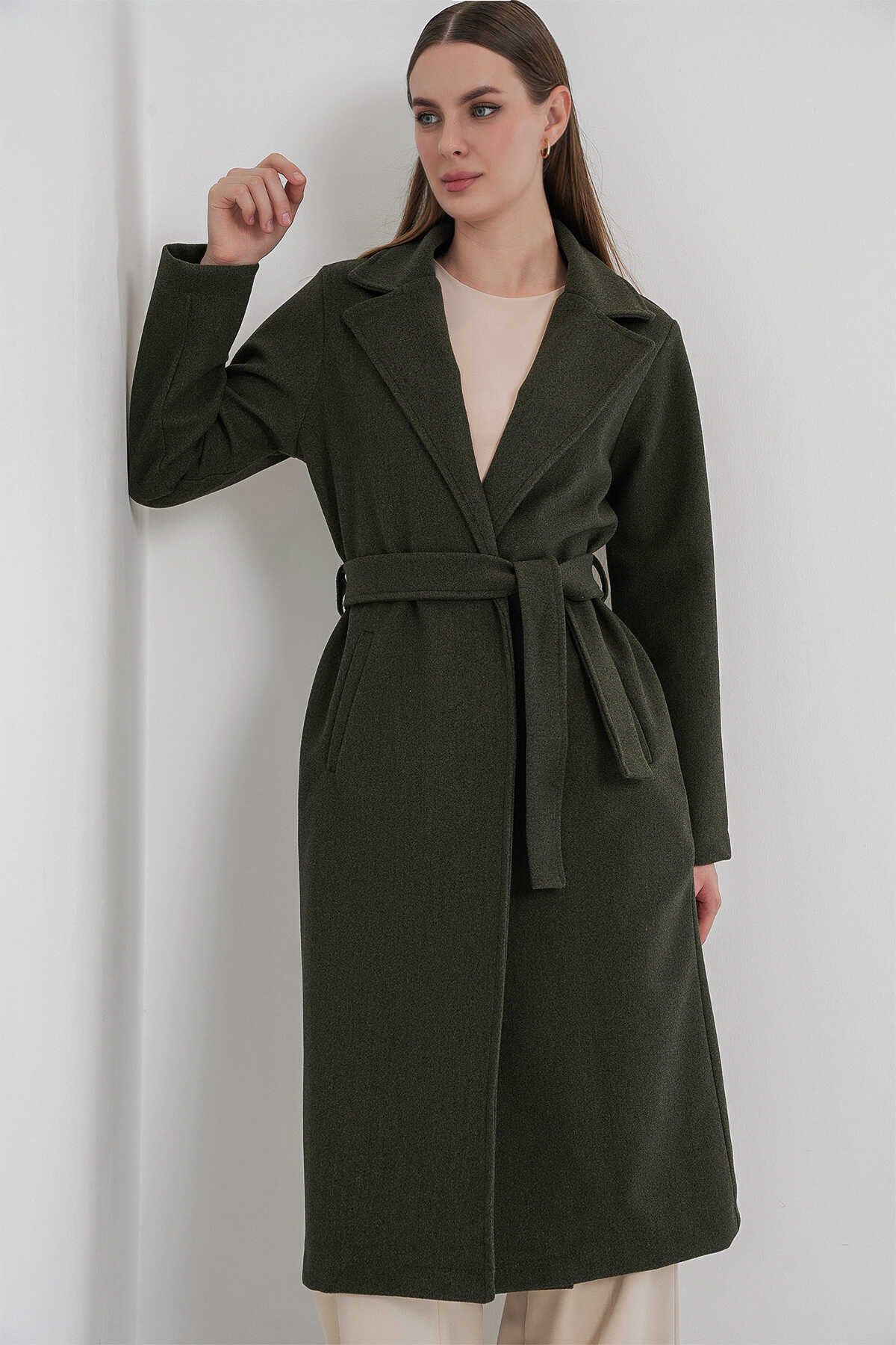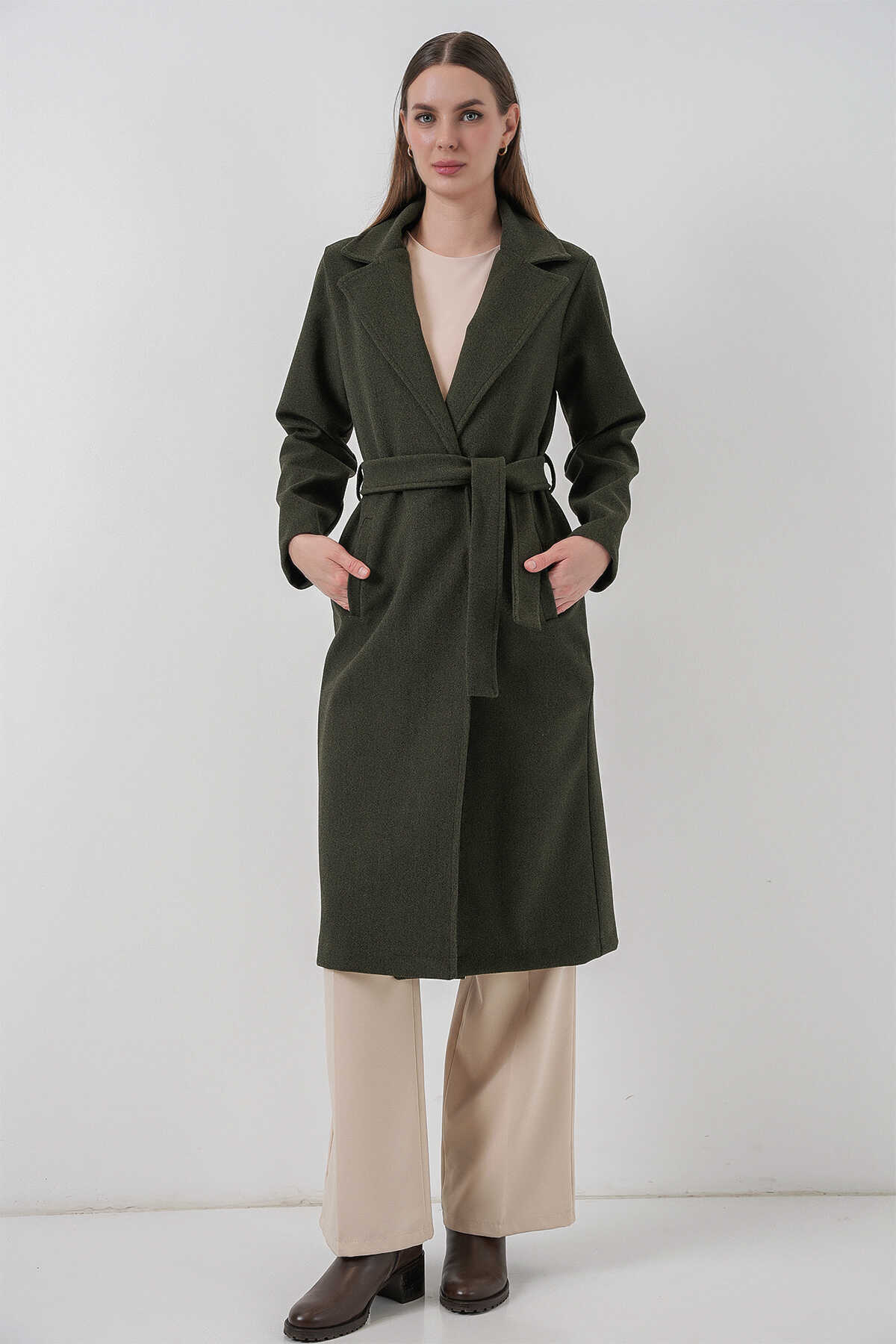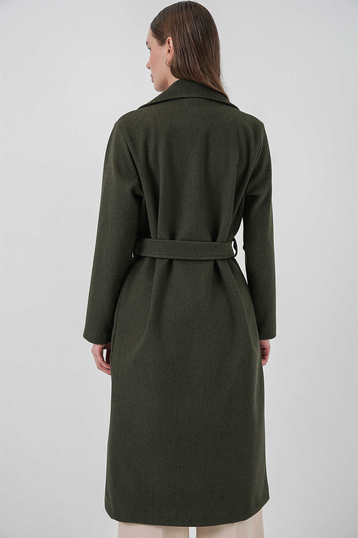 9118 Kruvaze Yaka Kaşe Kaban - Haki