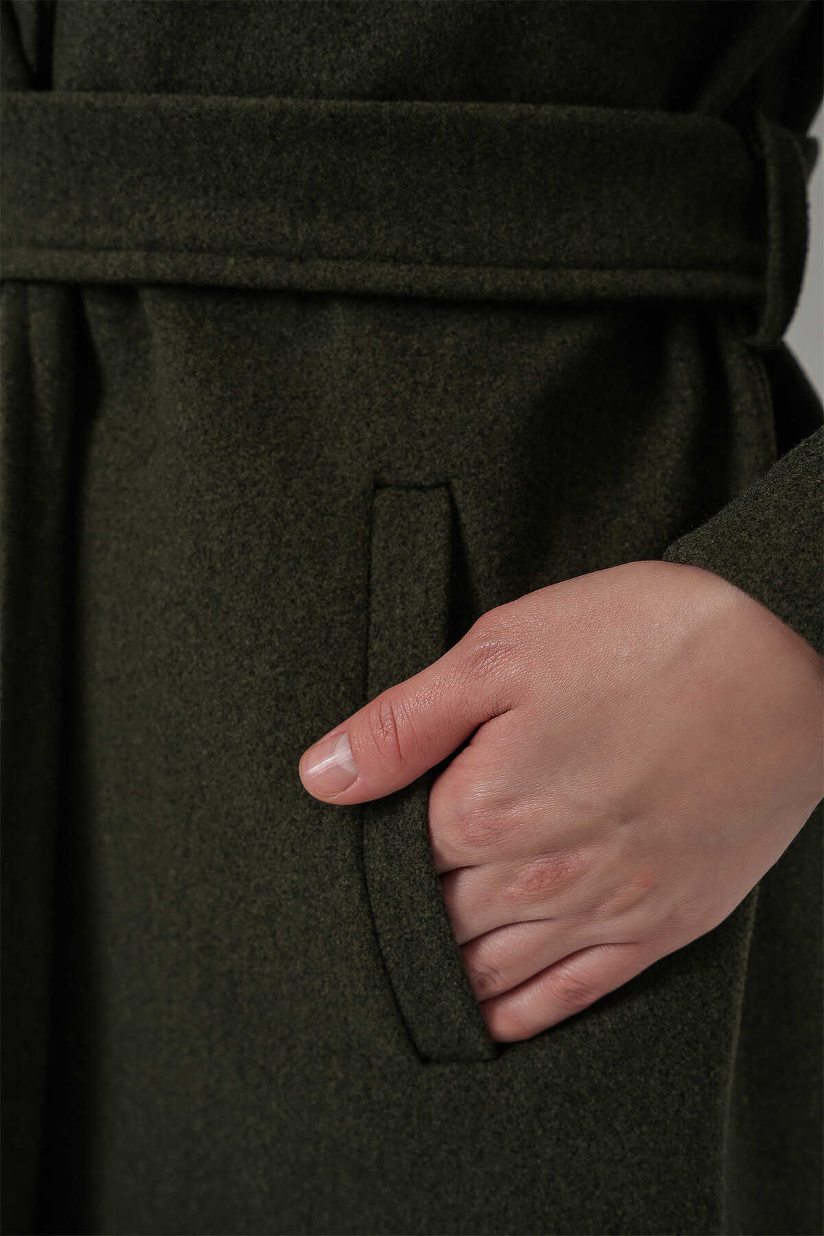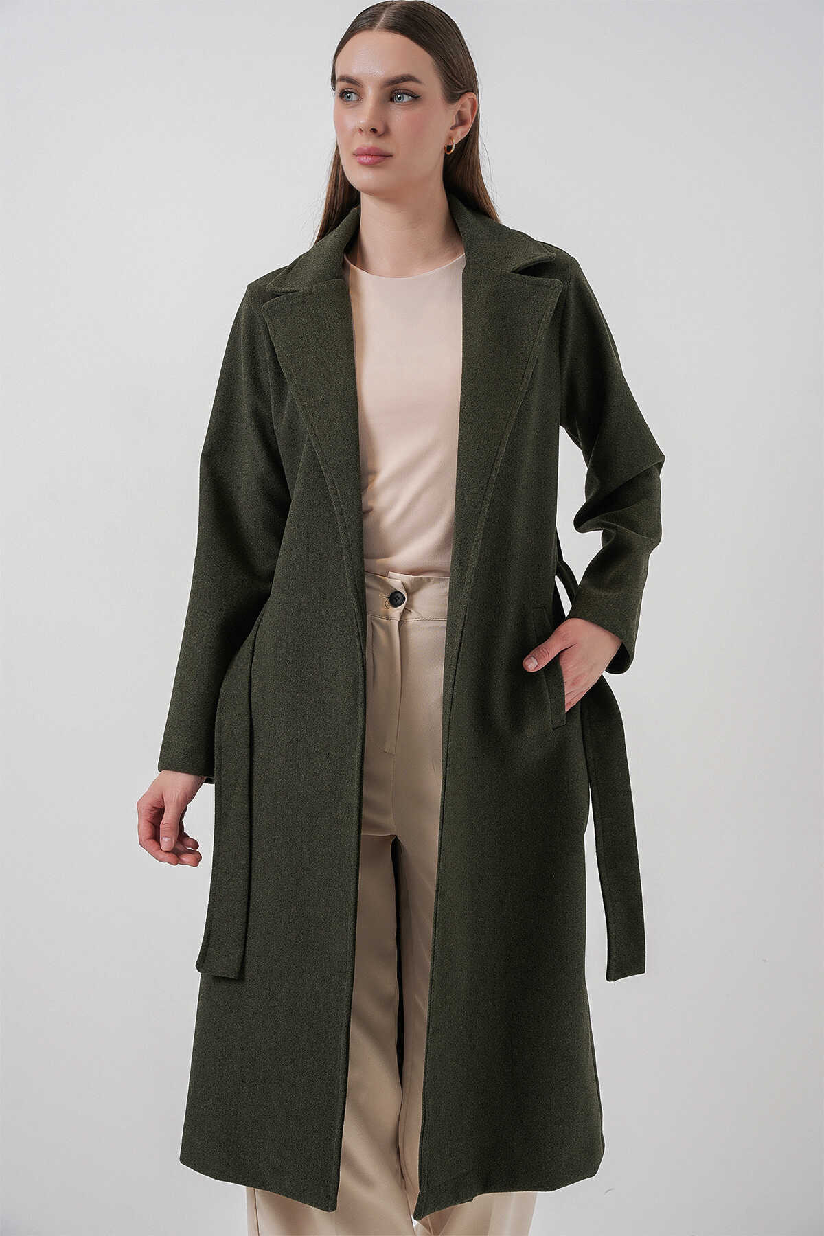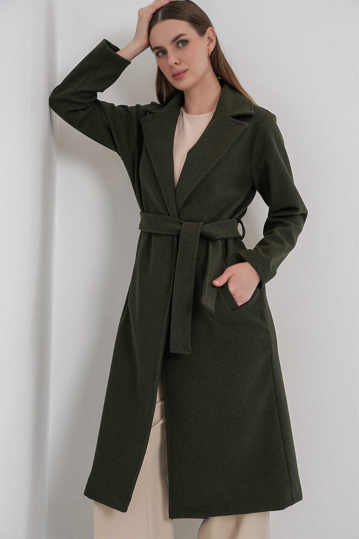 9118 Kruvaze Yaka Kaşe Kaban - Haki