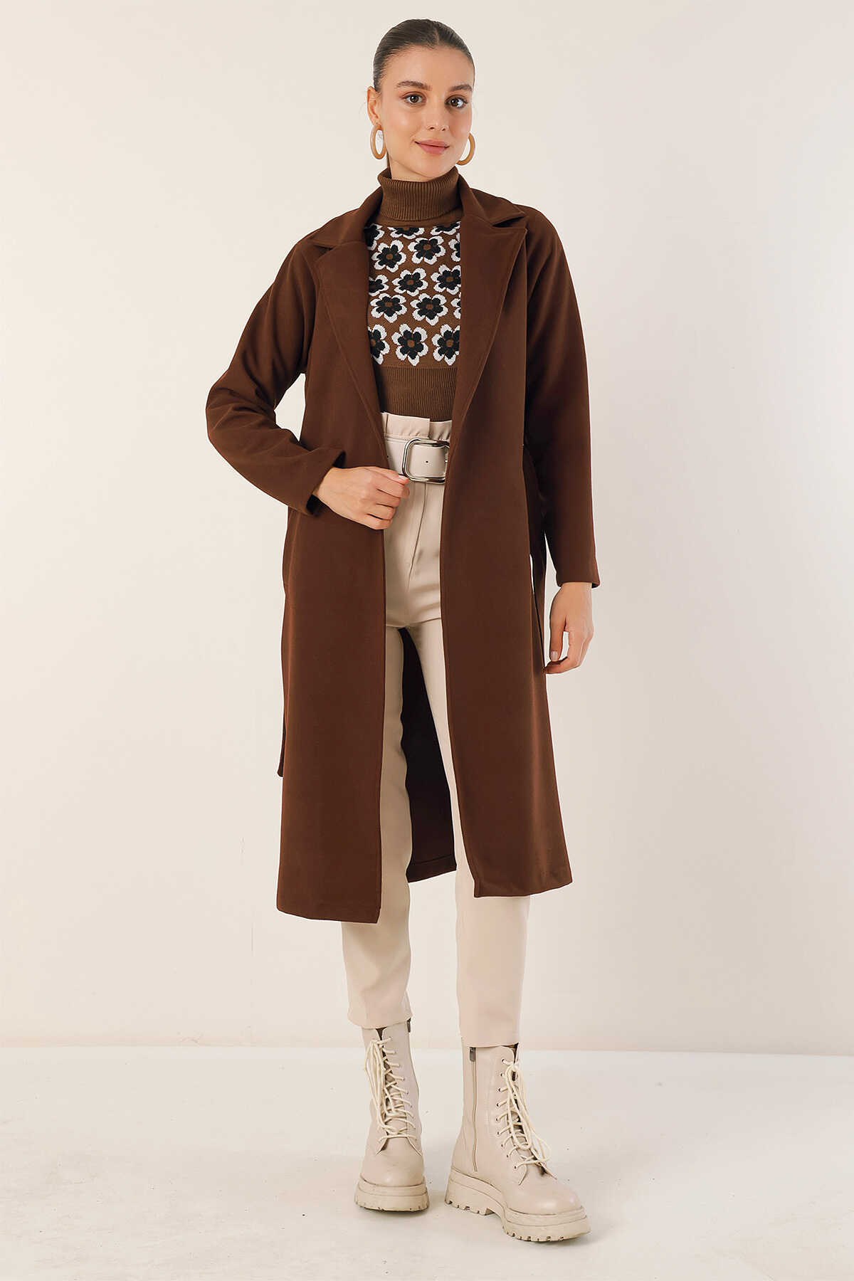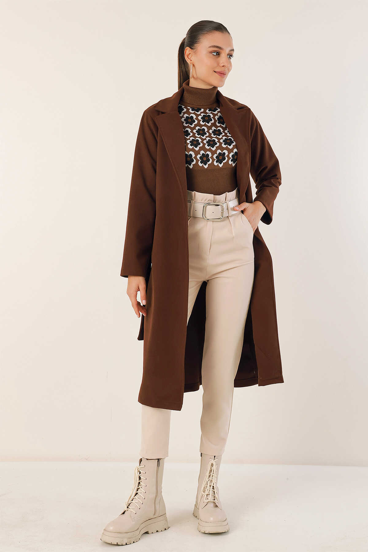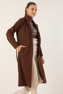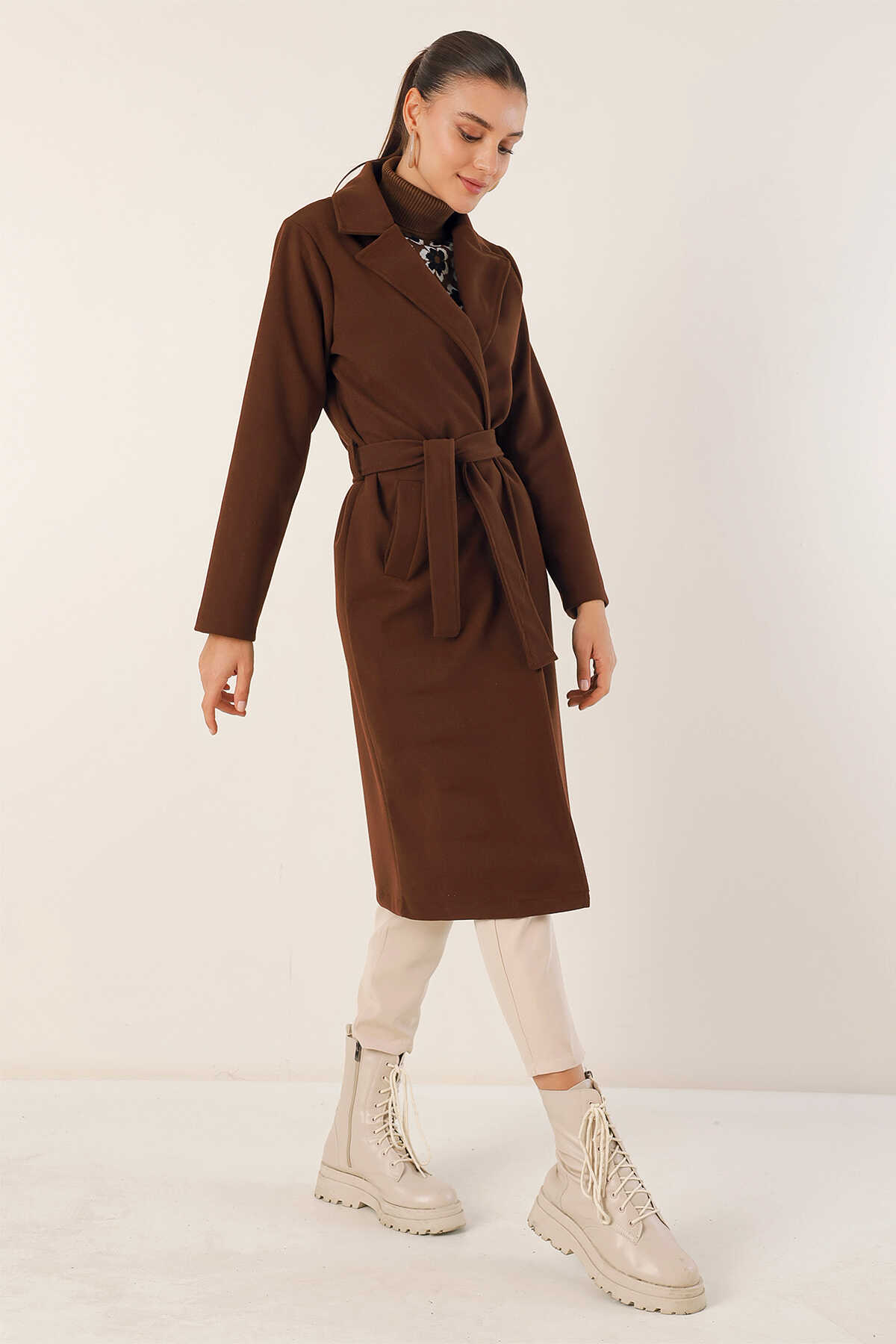 9118 Kruvaze Yaka Kaşe Kaban - Kahverengi - Kombin