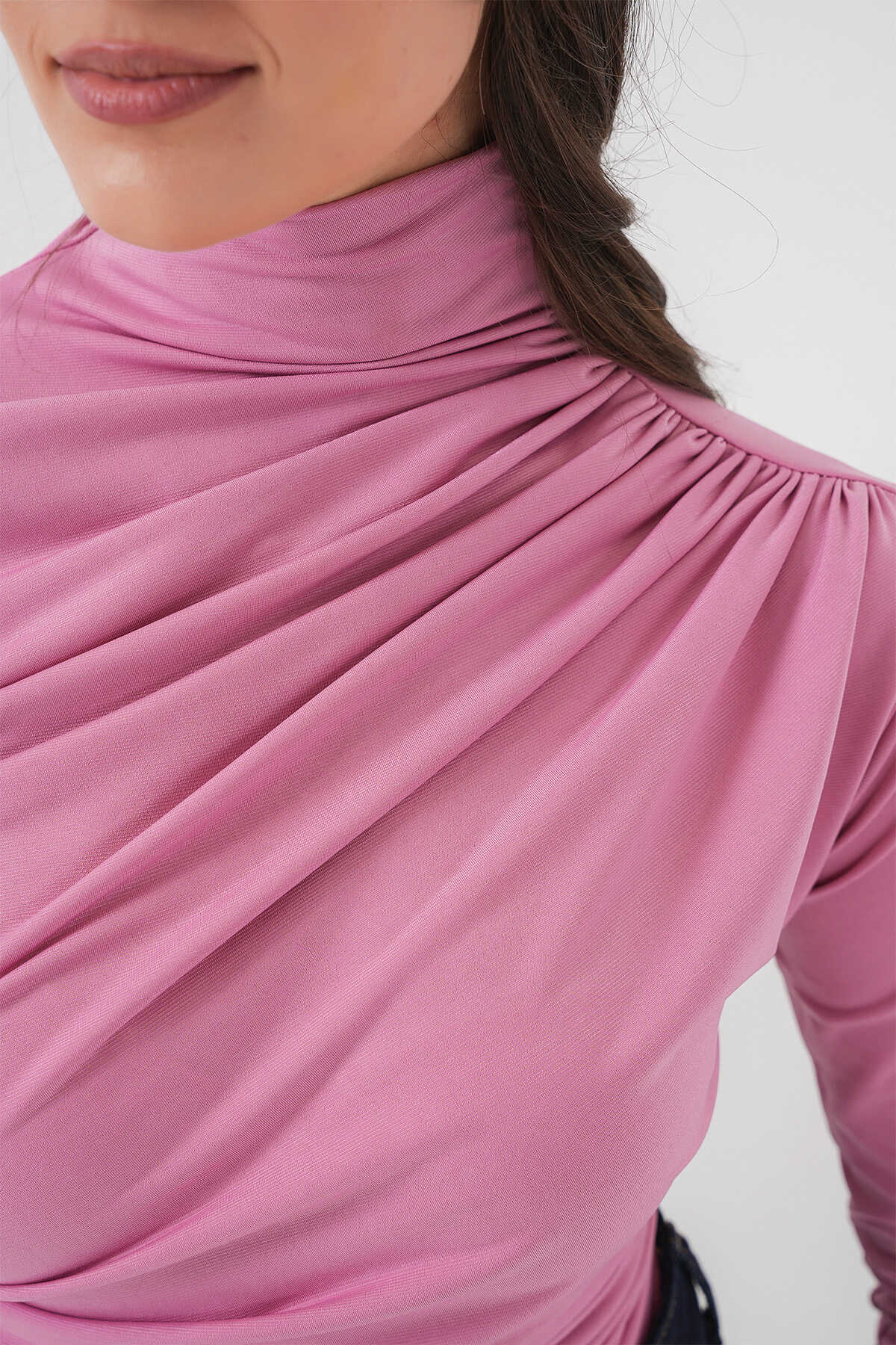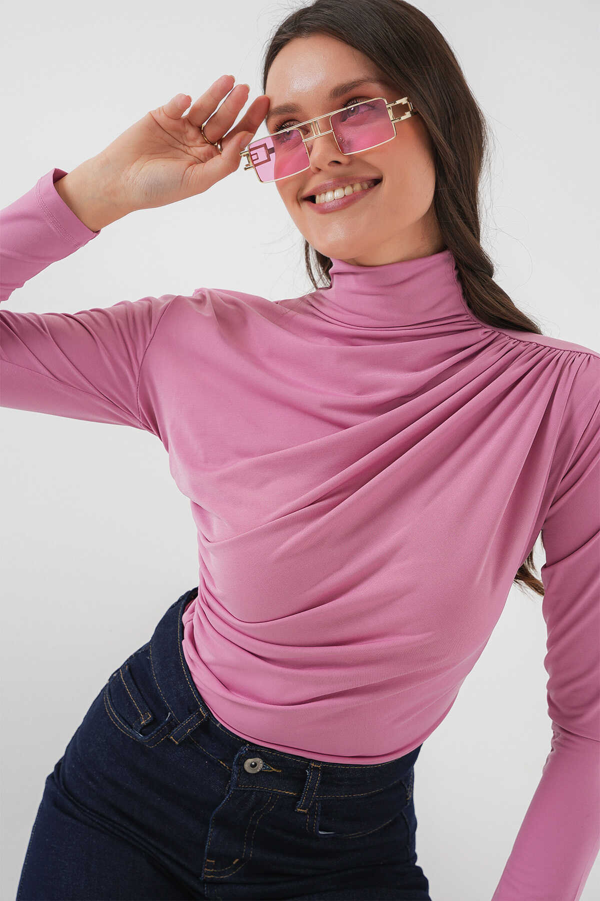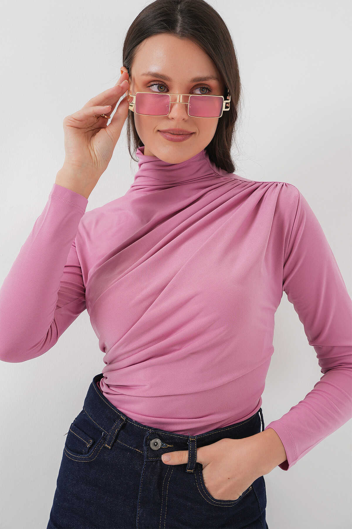 925 Büzgü Detaylı Sandy Bluz - Gül Kurusu - Kombin