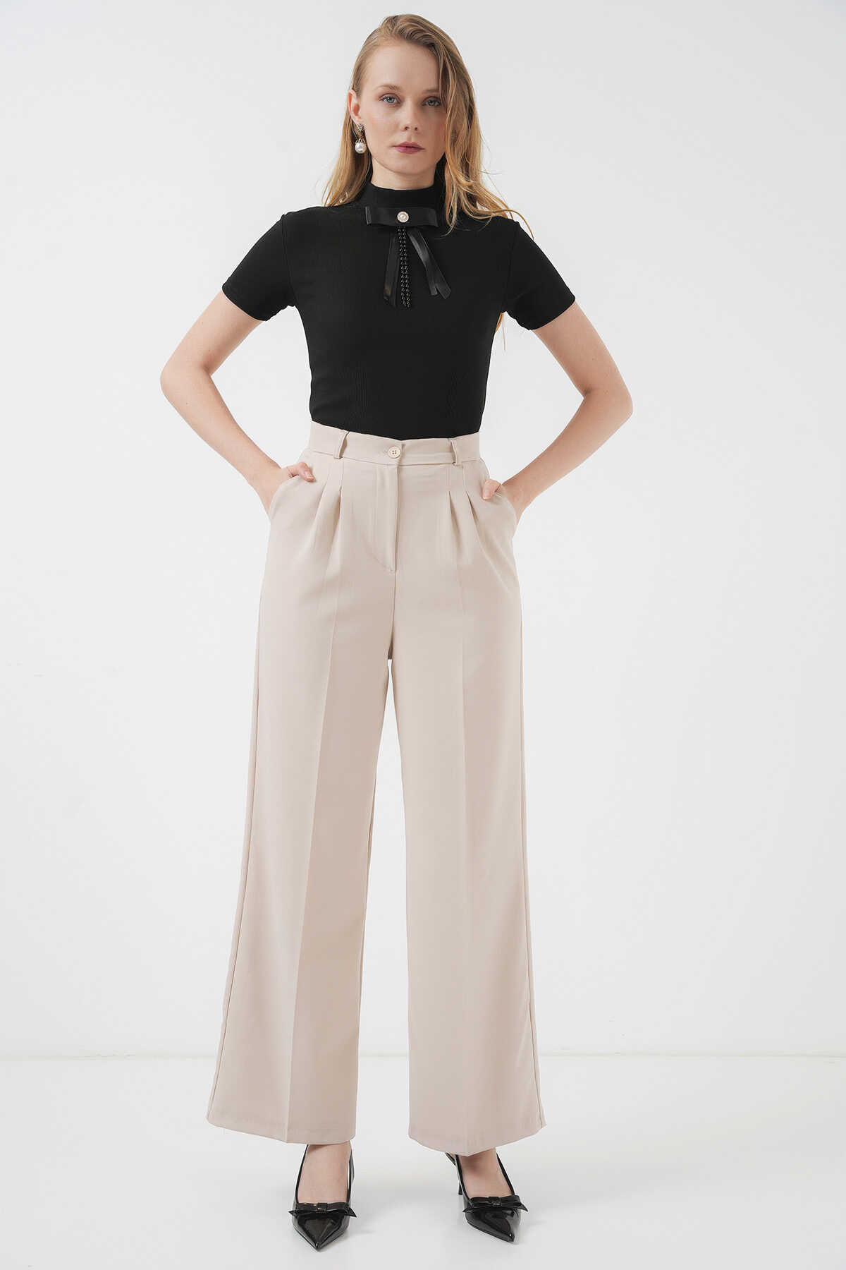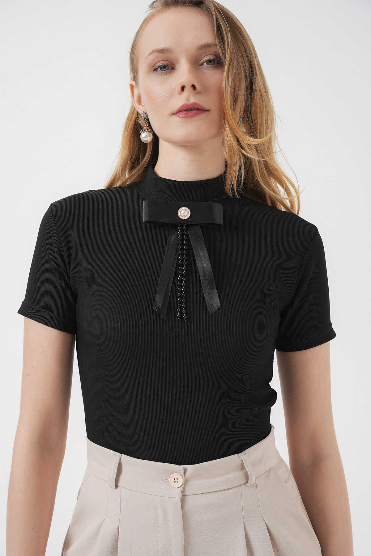926 Yaka Detaylı Kısa Kol Bluz - Siyah - Kombin