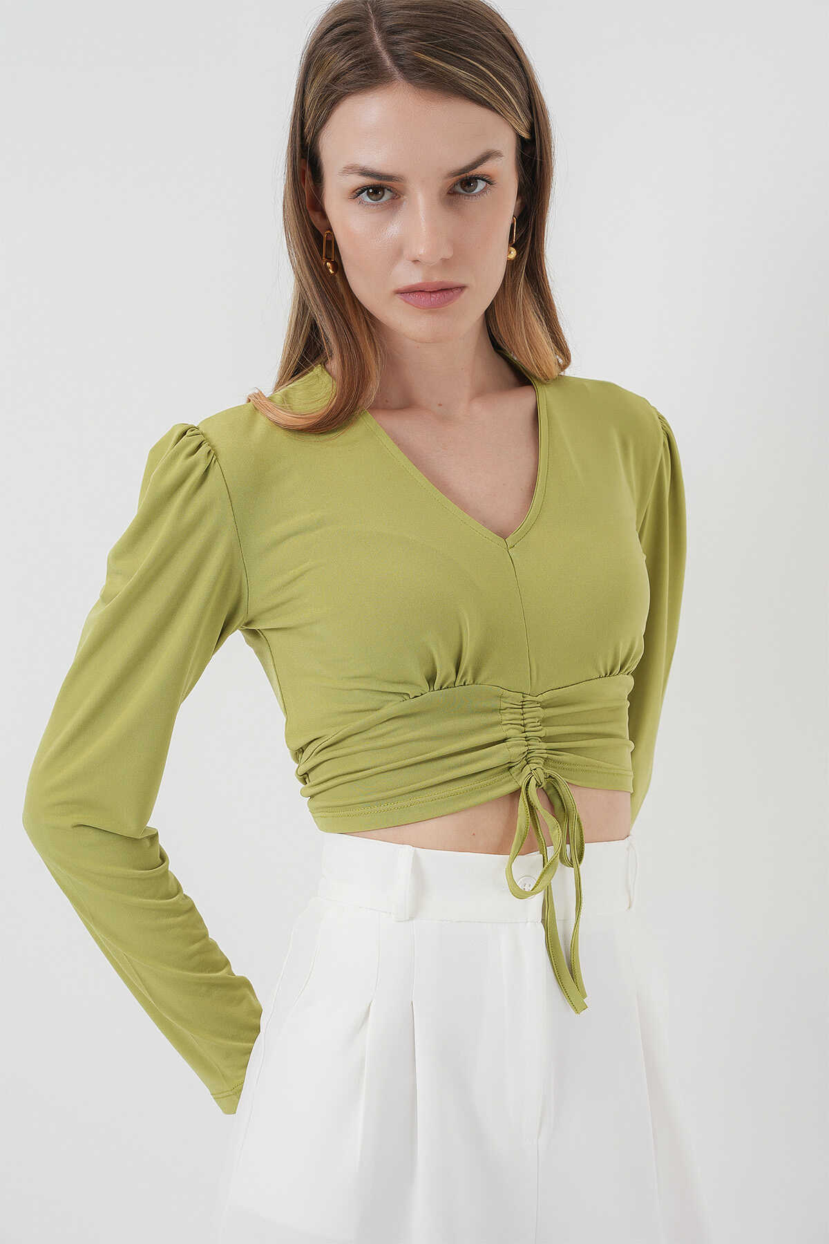 936 Sandy Crop Bluz - E.Yeşil - Kombin