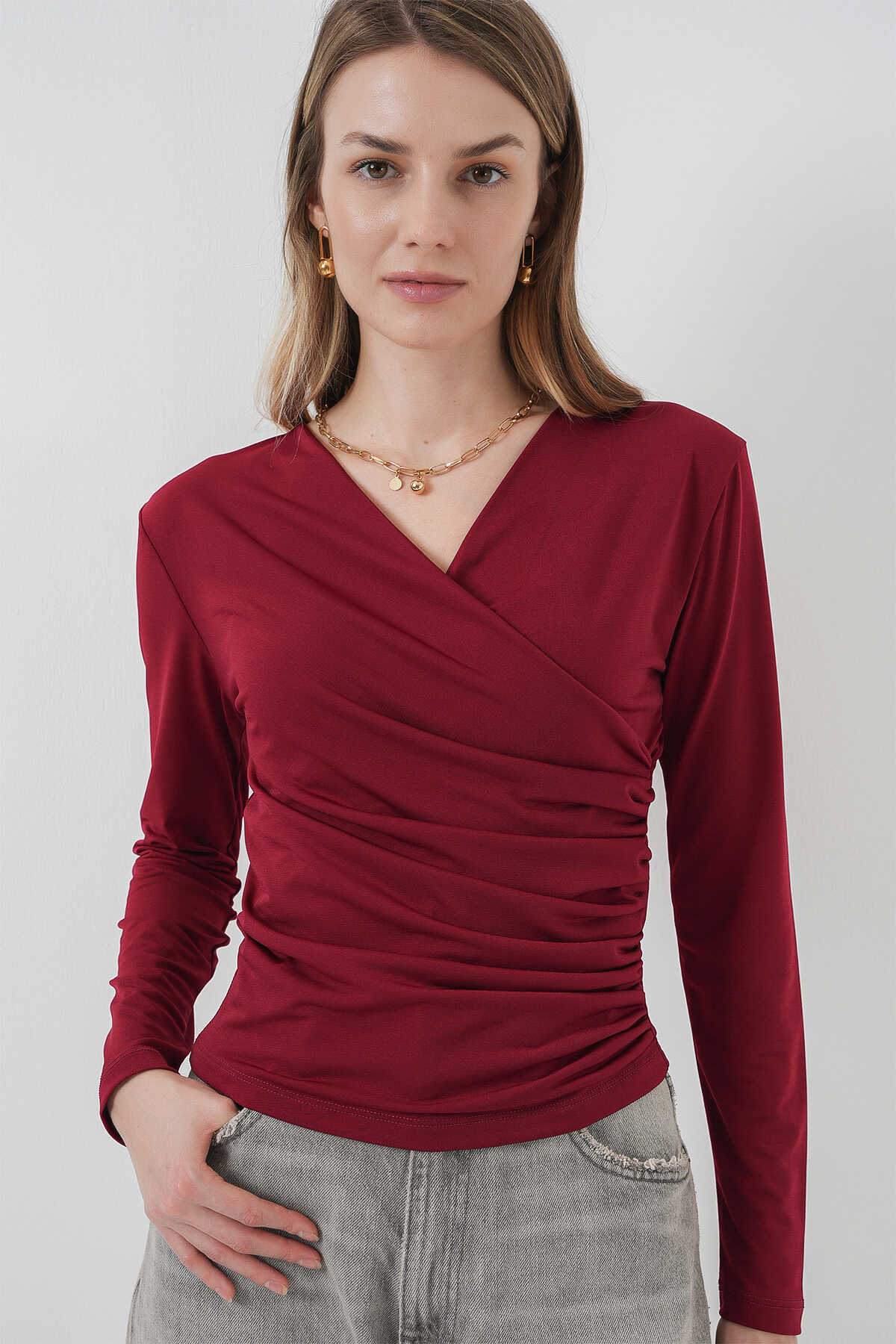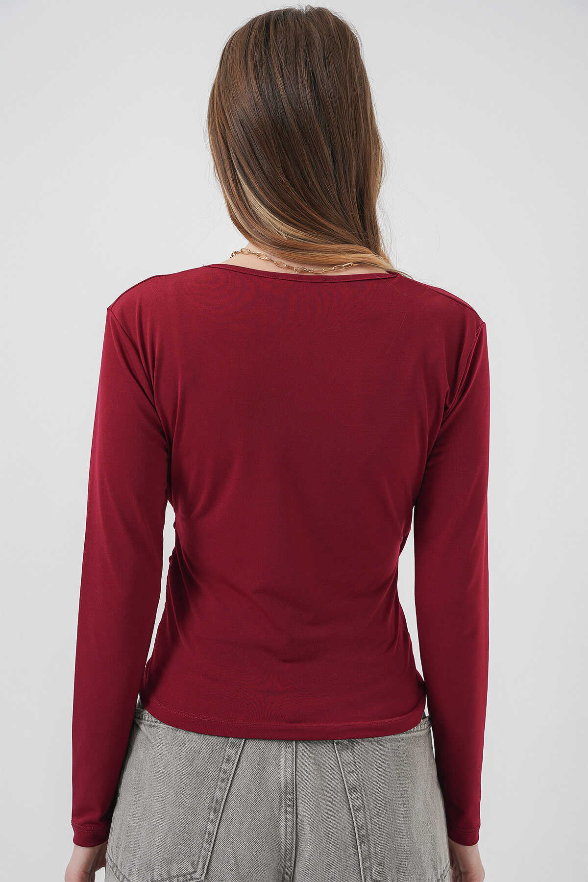 939 Anvelop Yaka Sandy Bluz - Bordo - Kombin