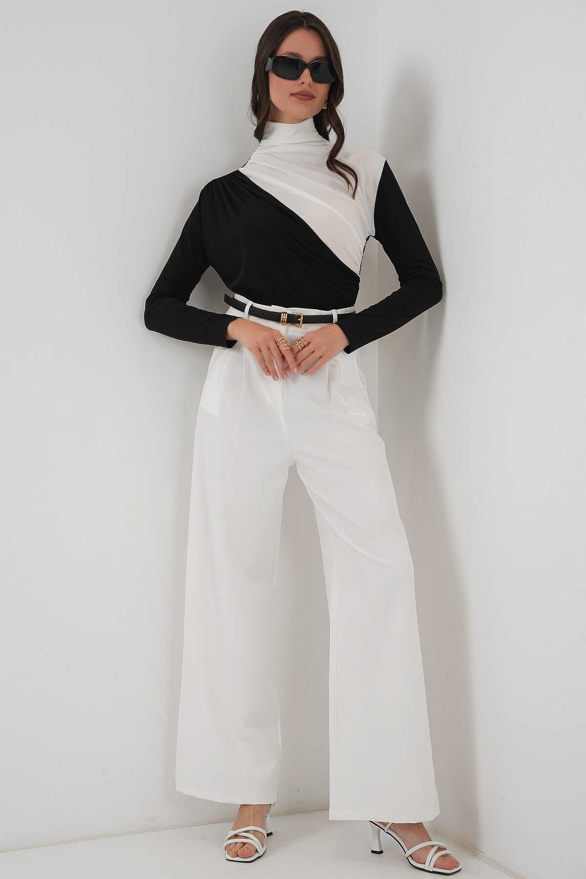 940 Büzgü Detaylı Sandy Bluz - Siyah - Kombin