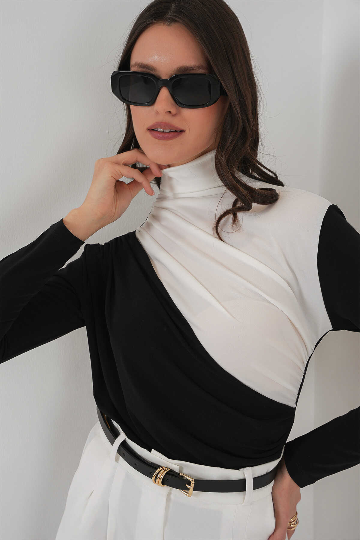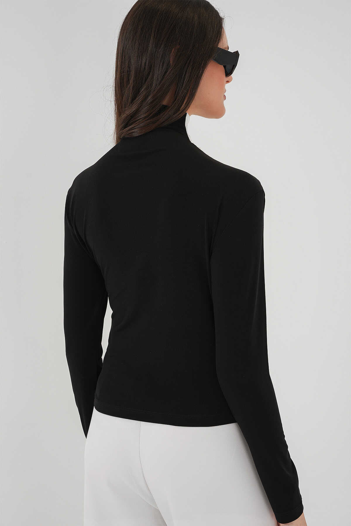 940 Büzgü Detaylı Sandy Bluz - Siyah