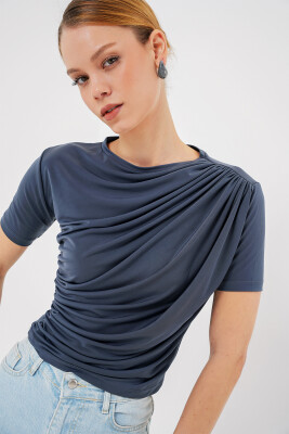 Büzgü Detayli Kisa Kol Sandy Bluz