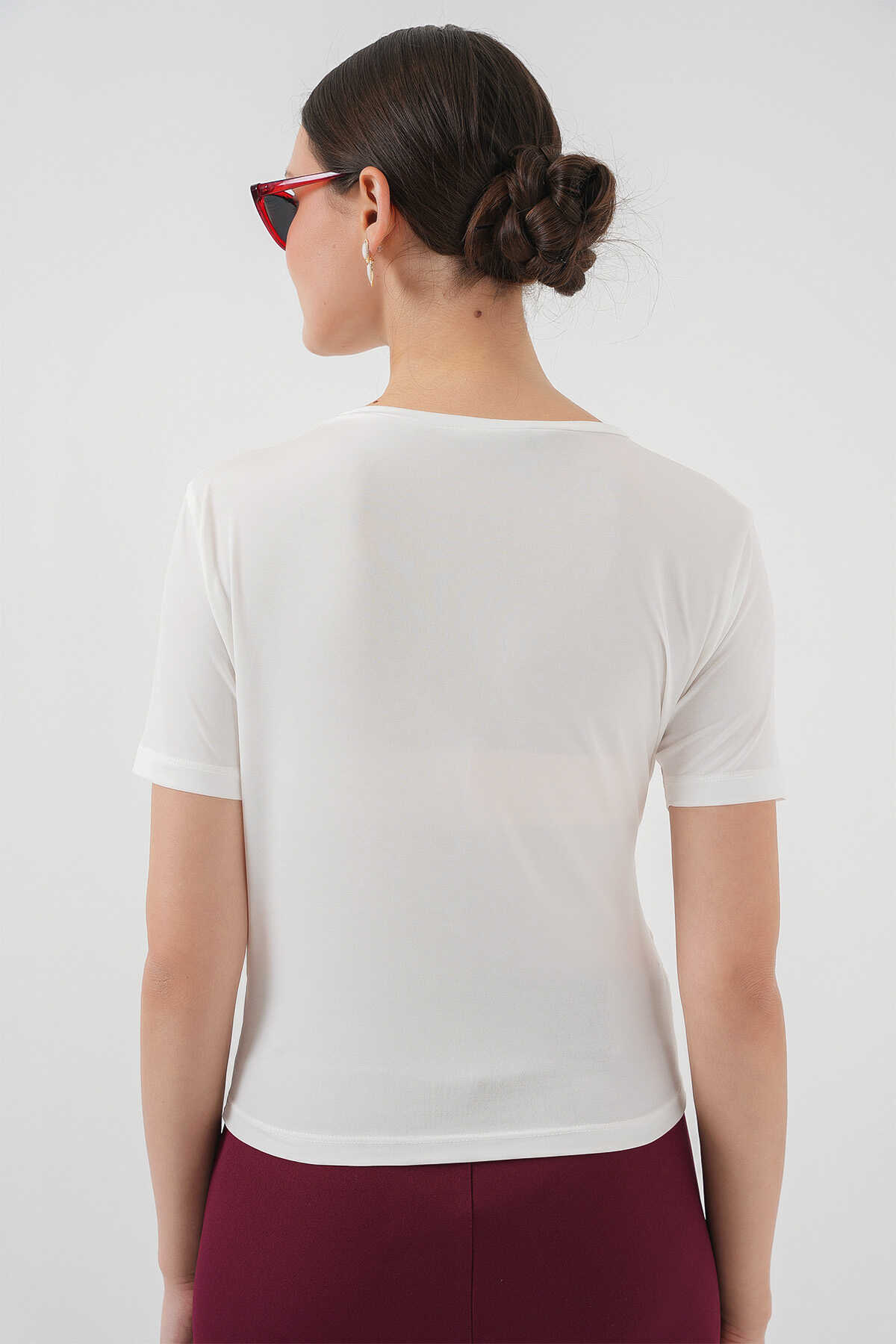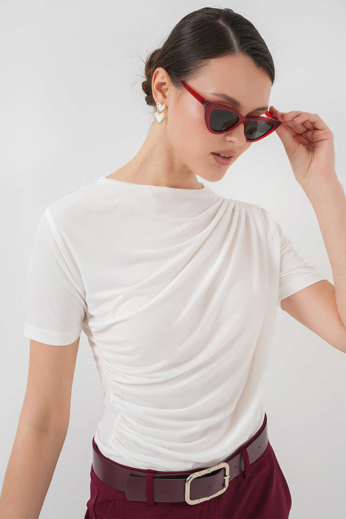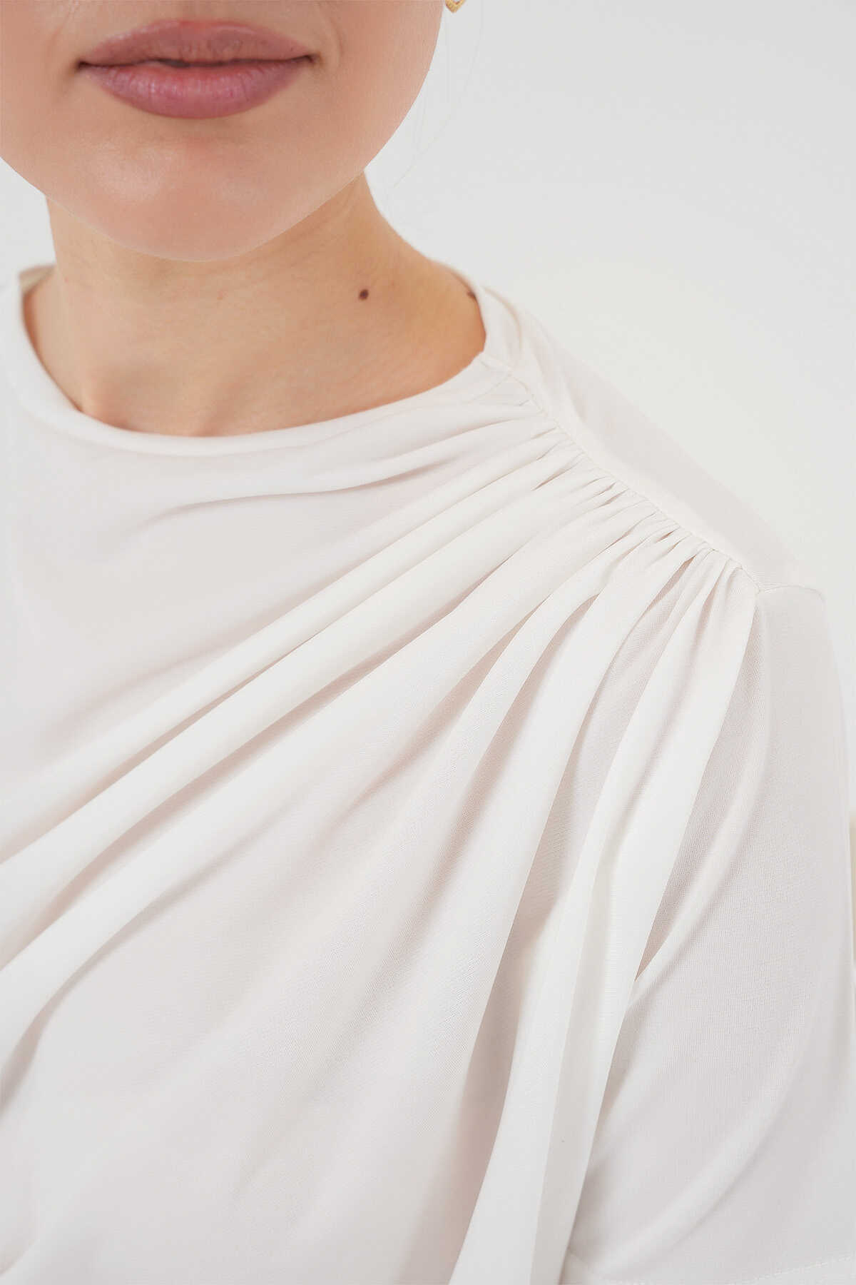 Büzgü Detayli Kisa Kol Sandy Bluz