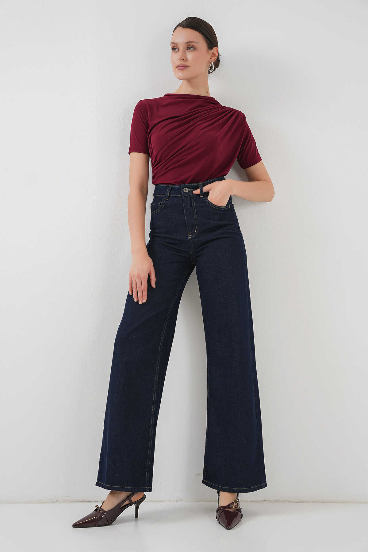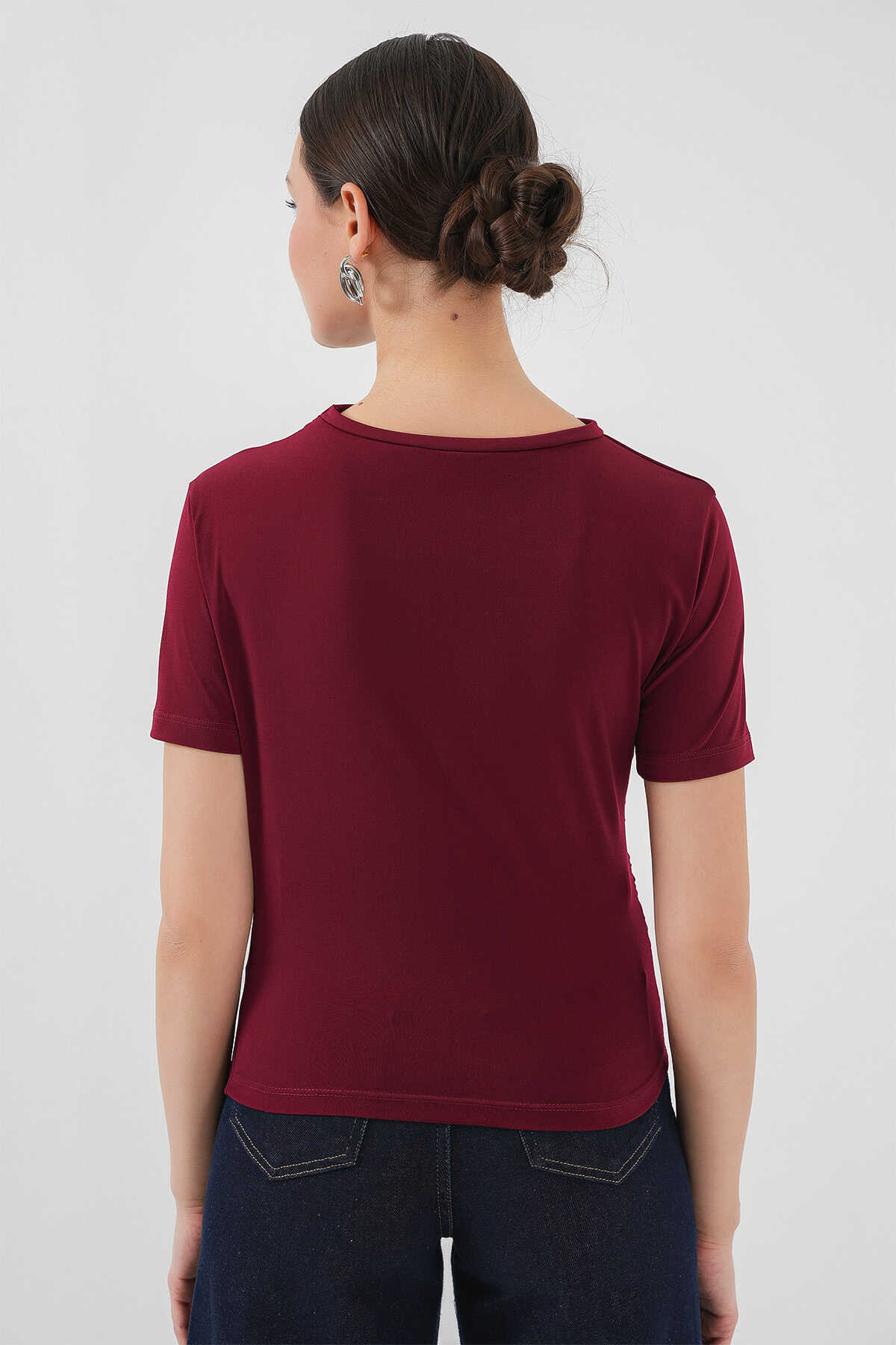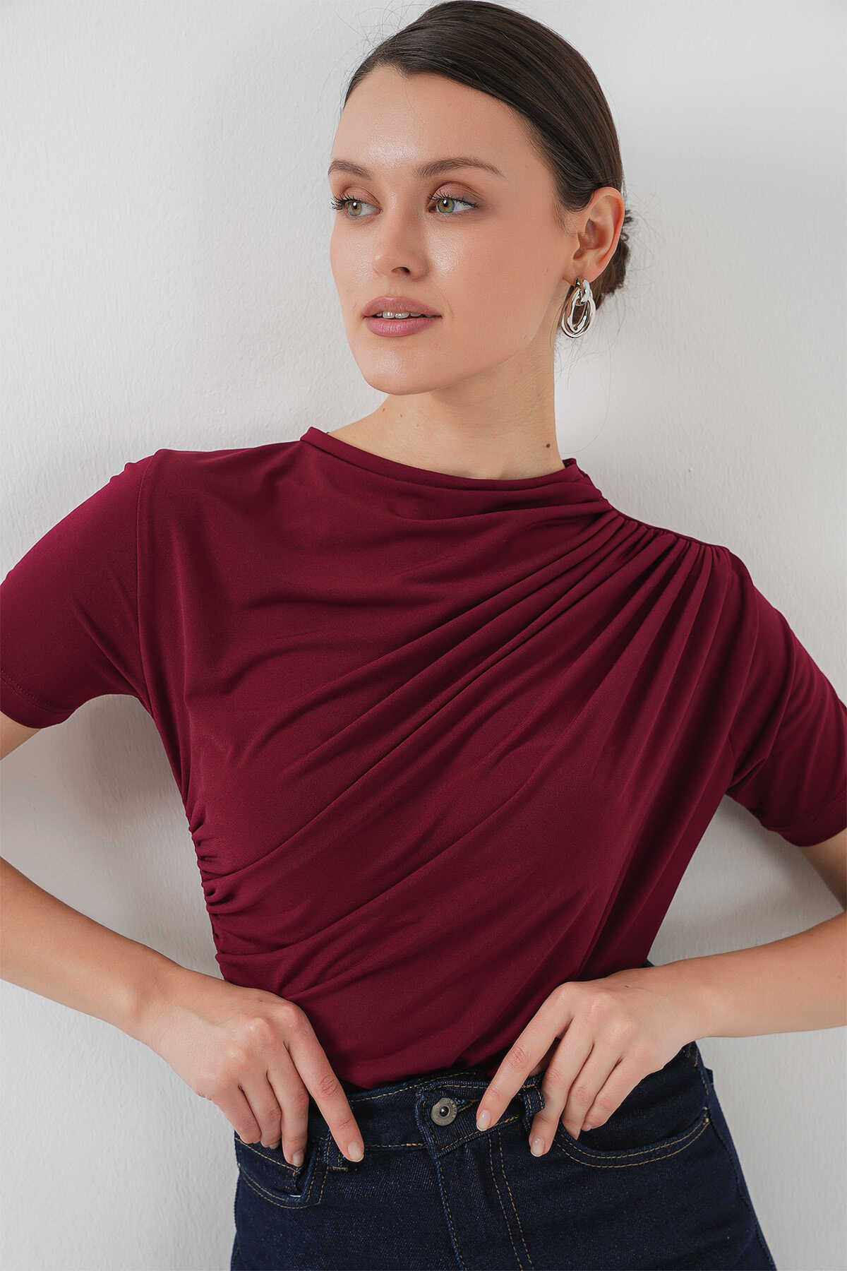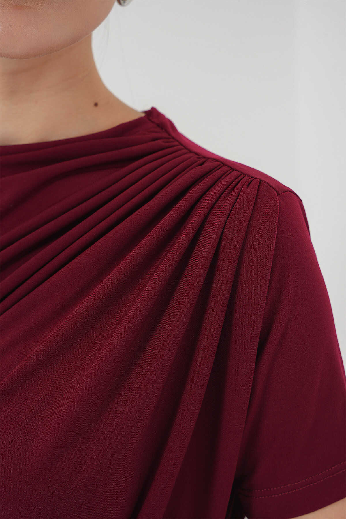 Büzgü Detayli Kisa Kol Sandy Bluz