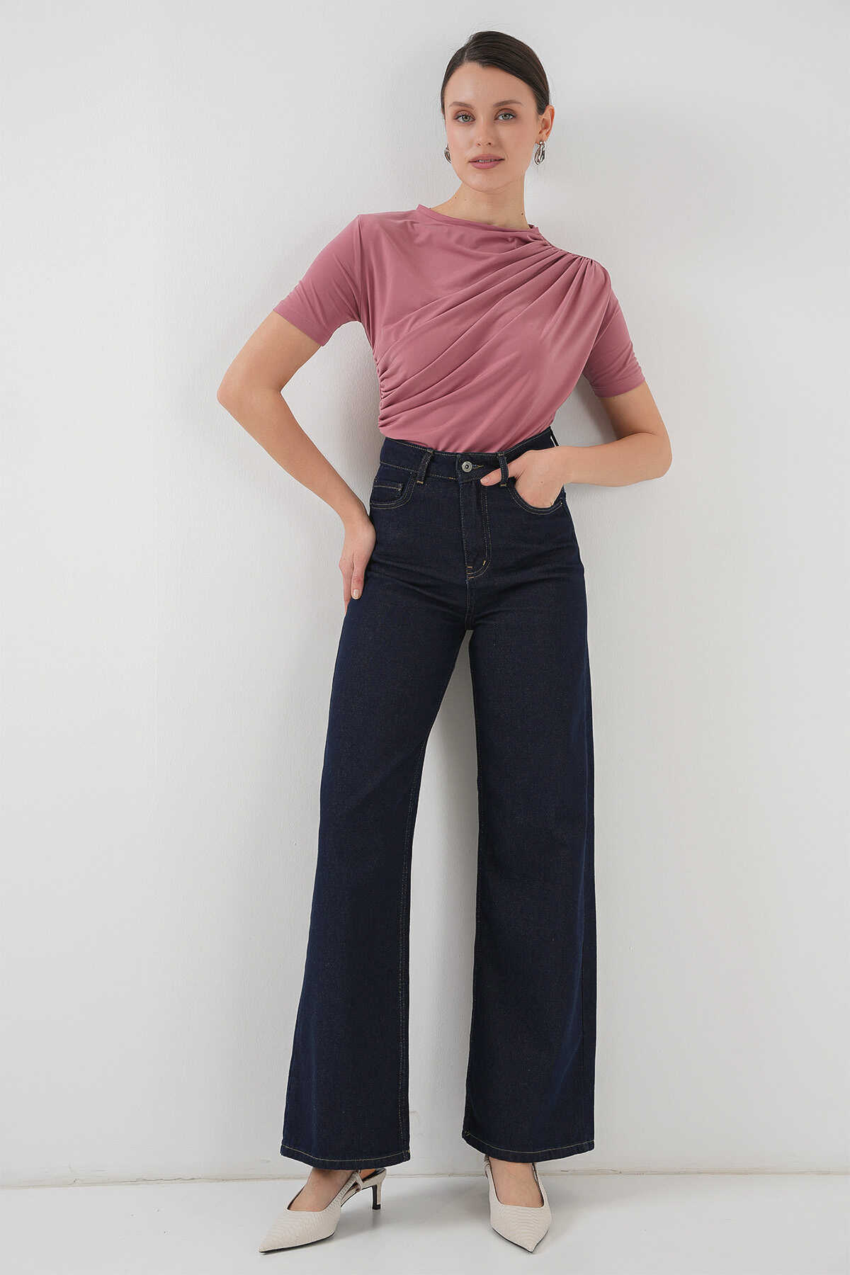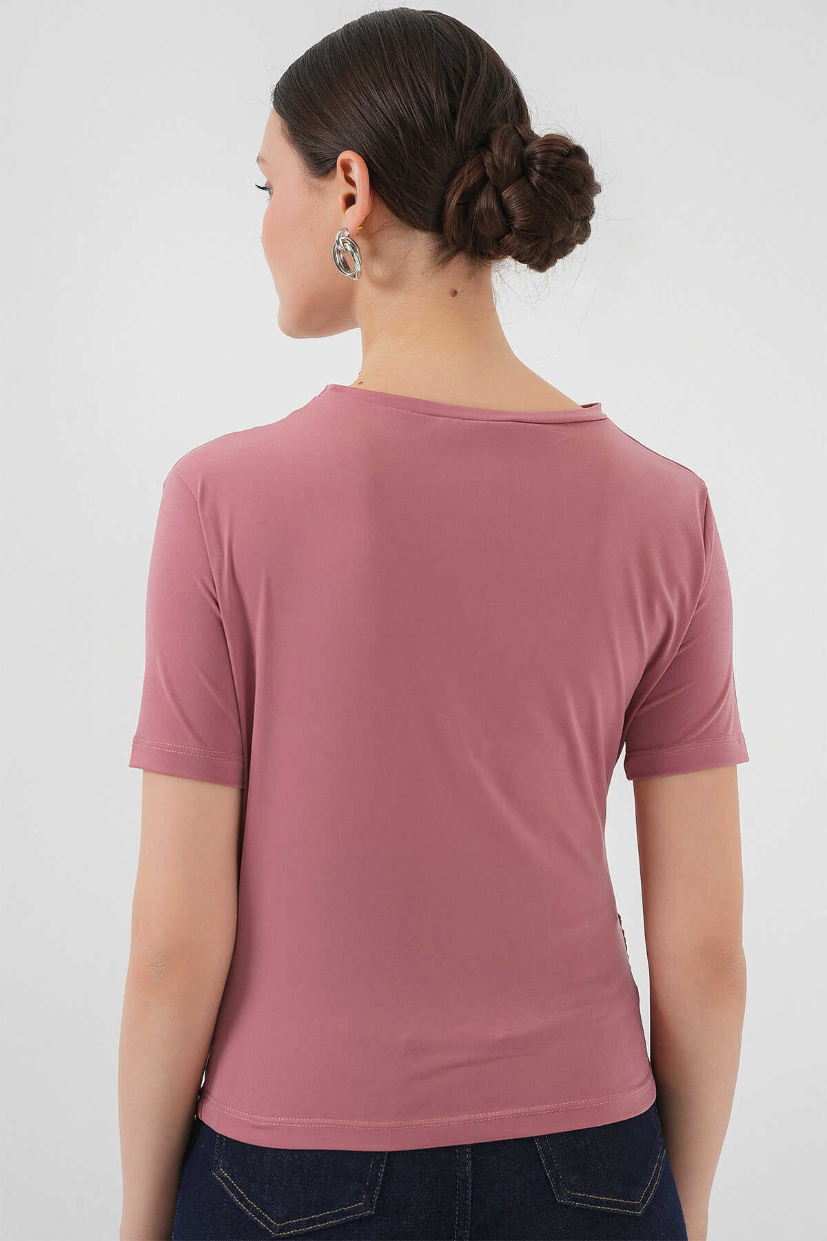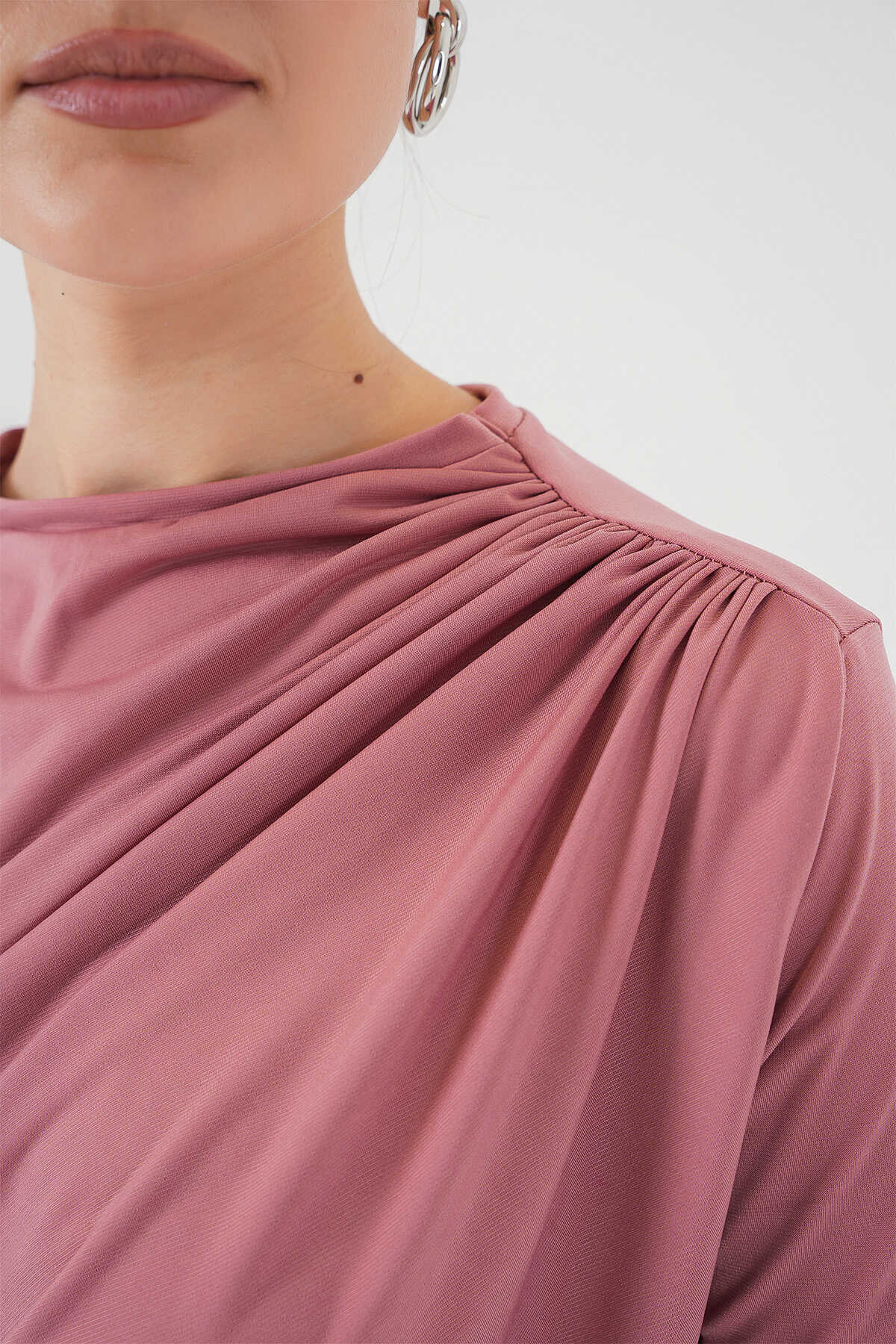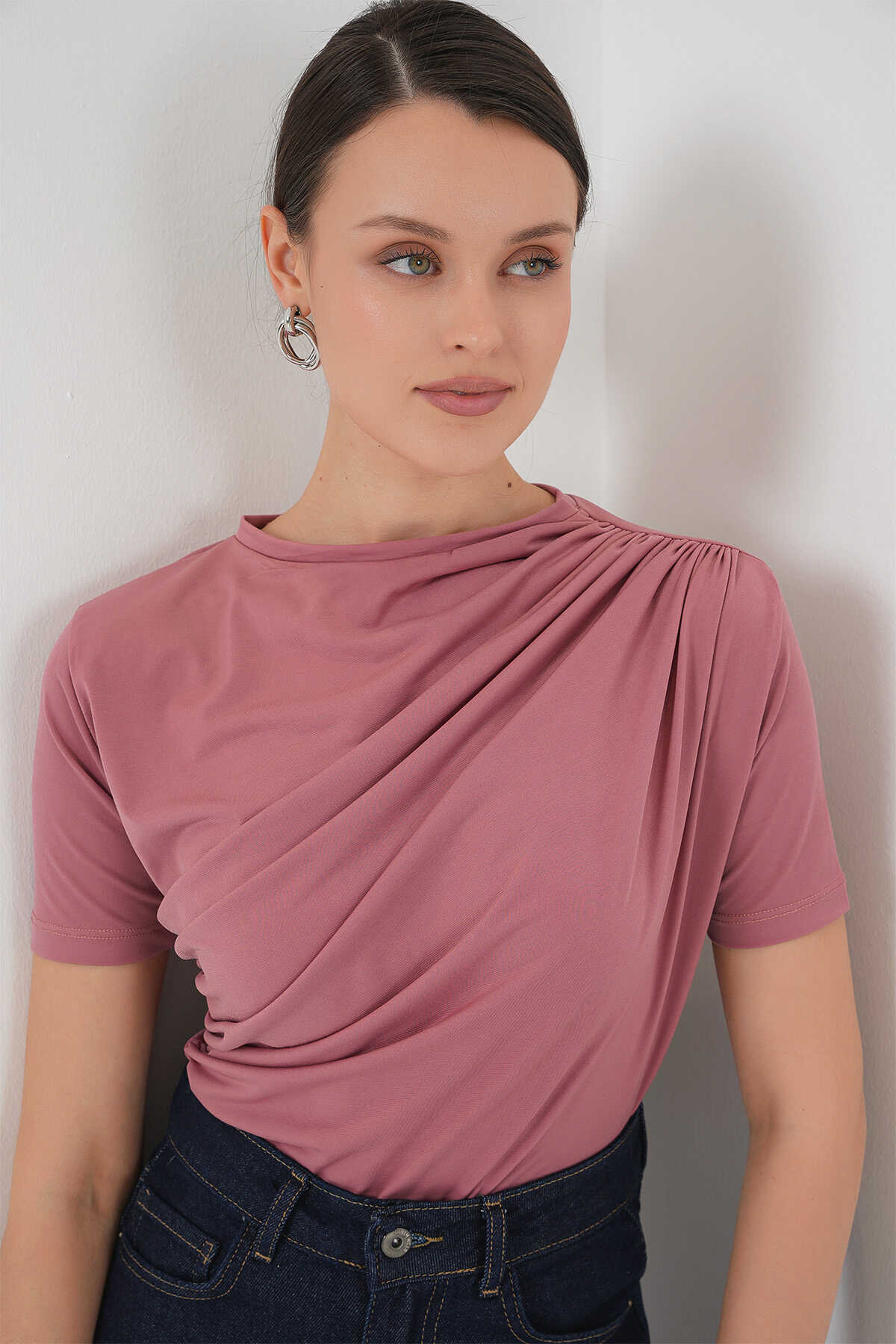 Büzgü Detayli Kisa Kol Sandy Bluz