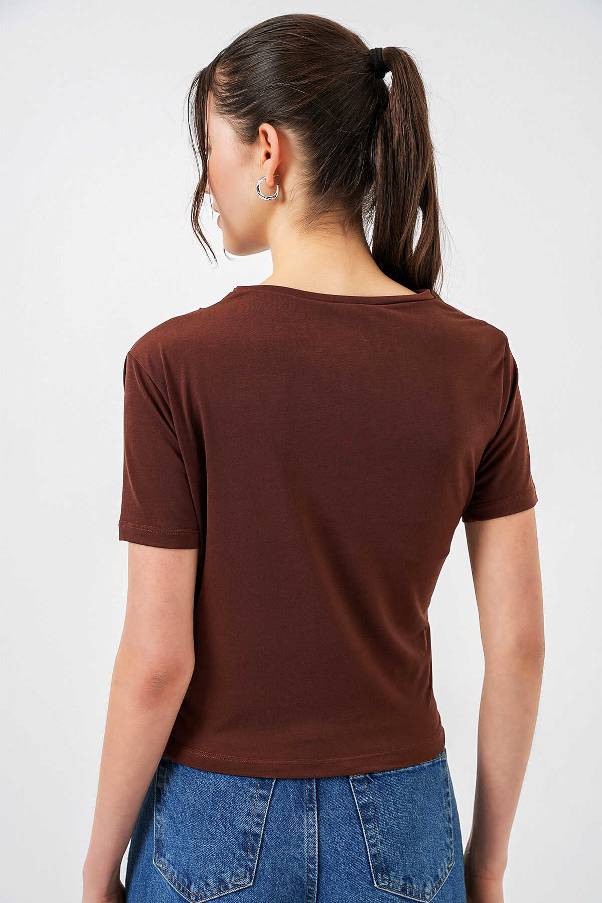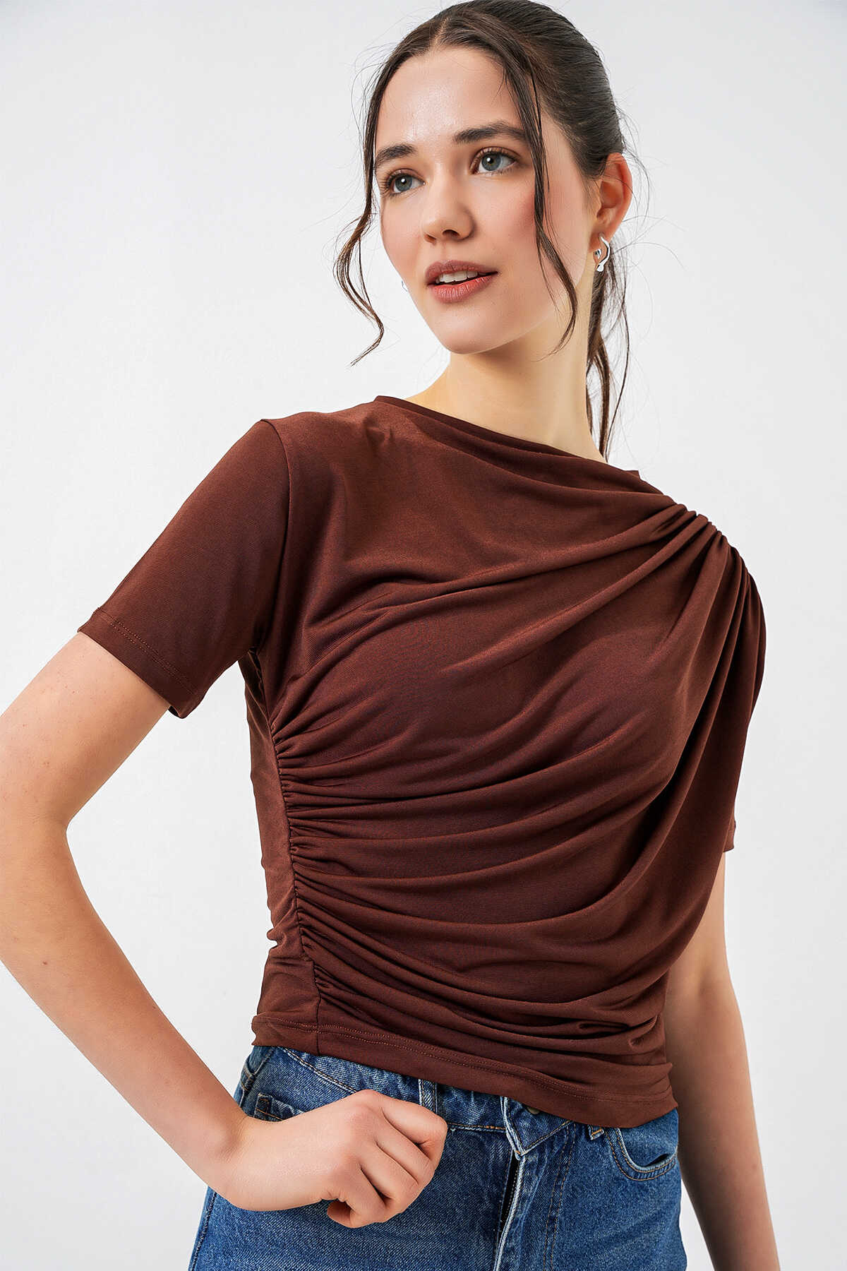 Büzgü Detayli Kisa Kol Sandy Bluz