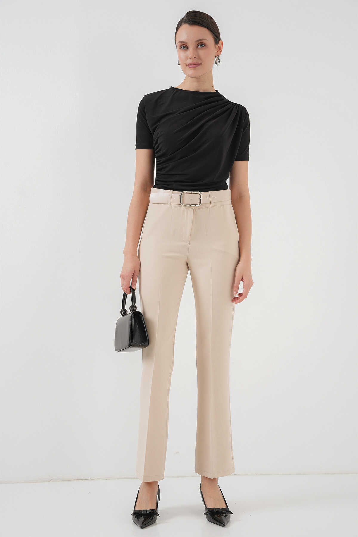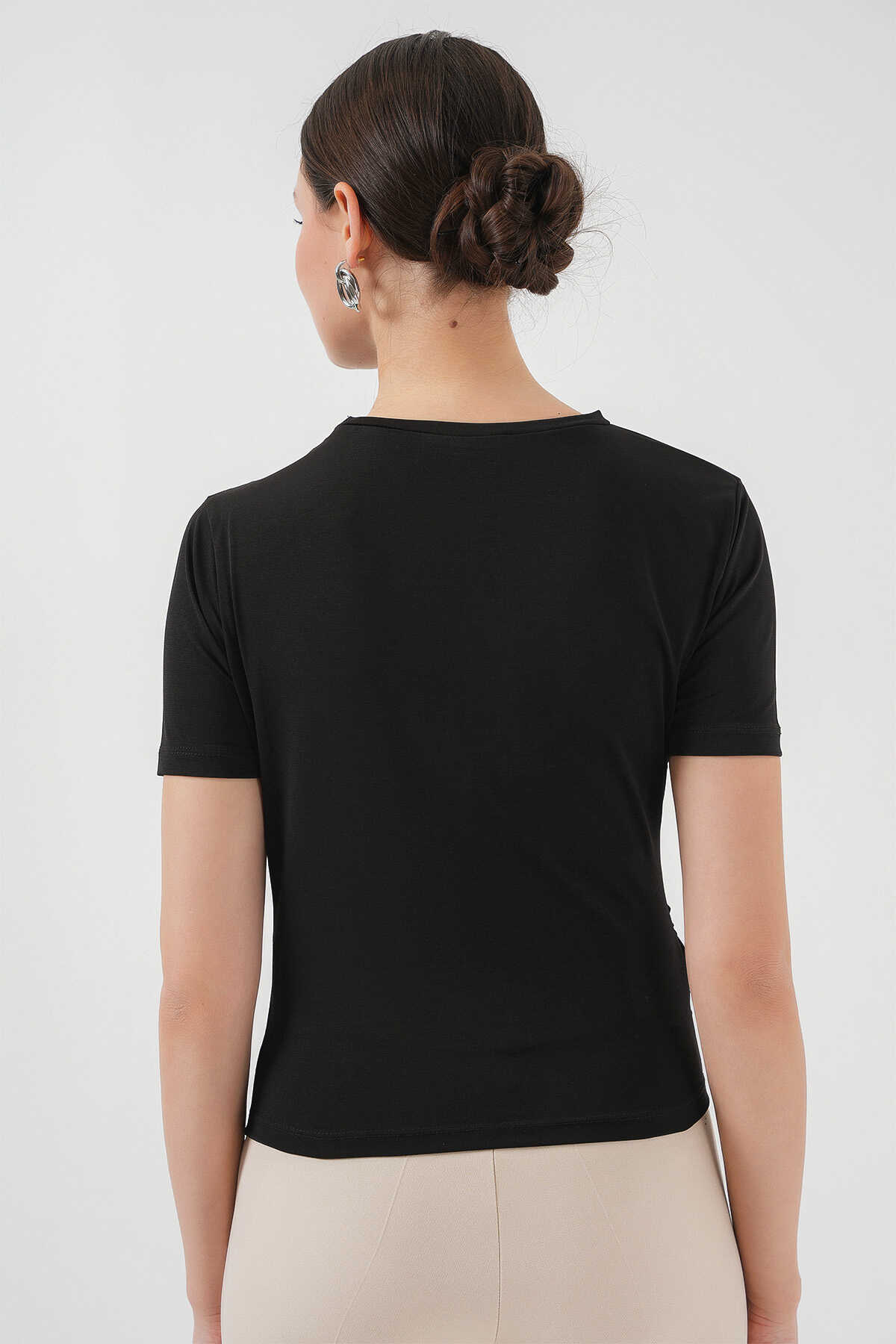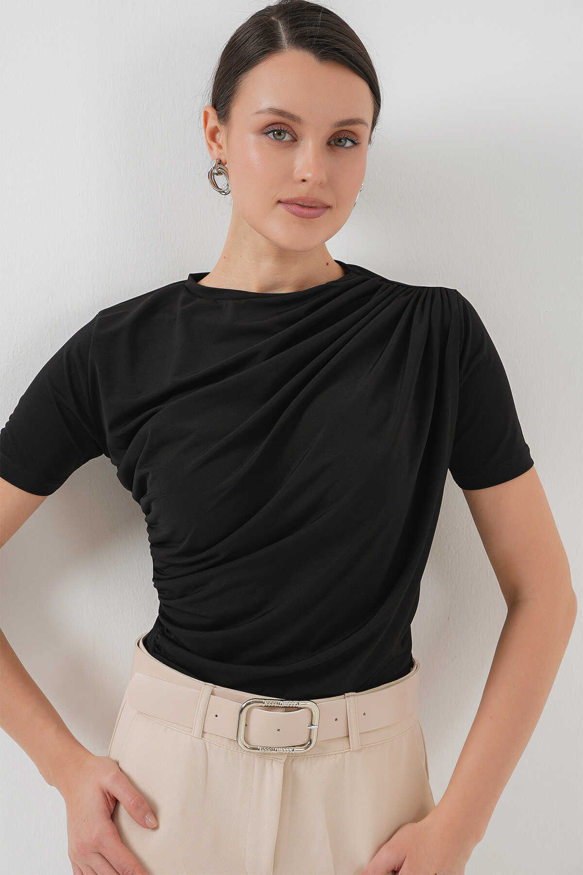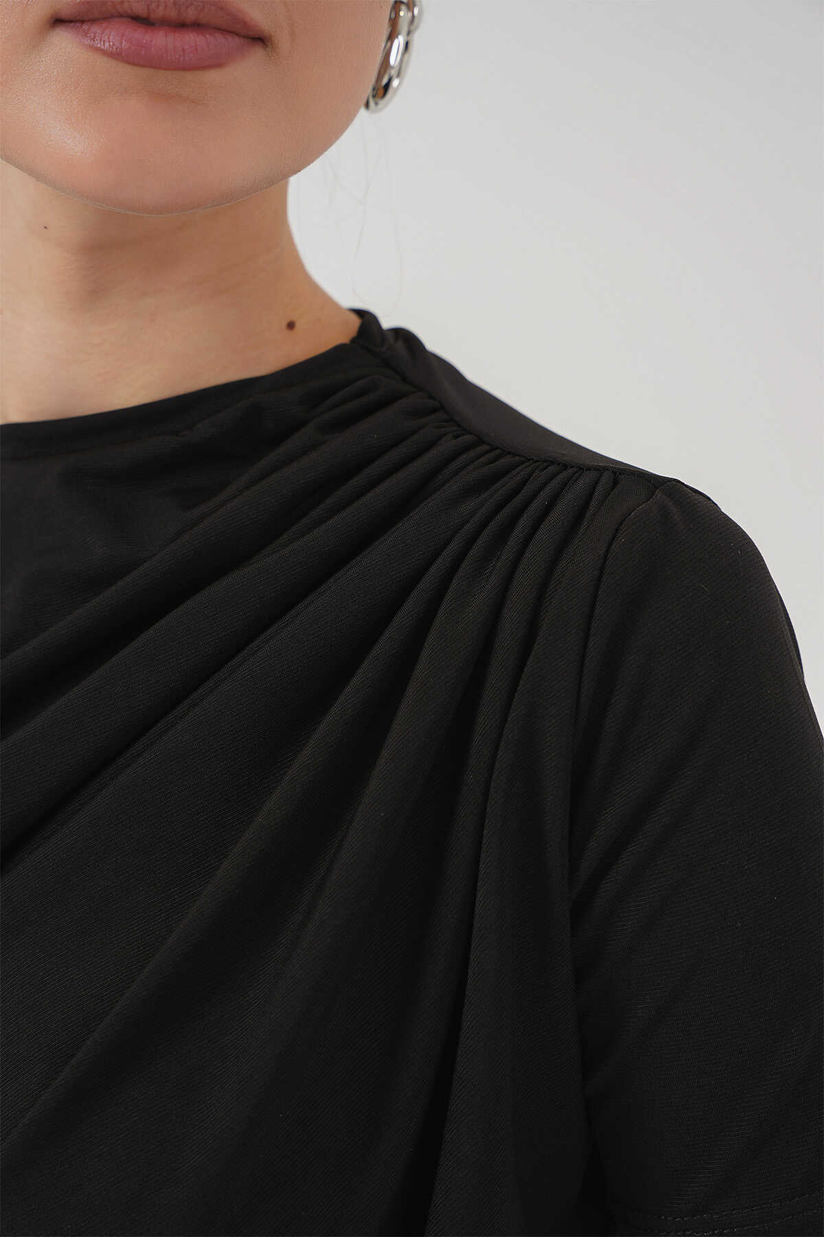 Büzgü Detayli Kisa Kol Sandy Bluz