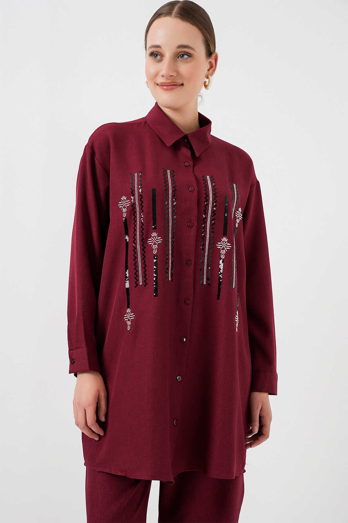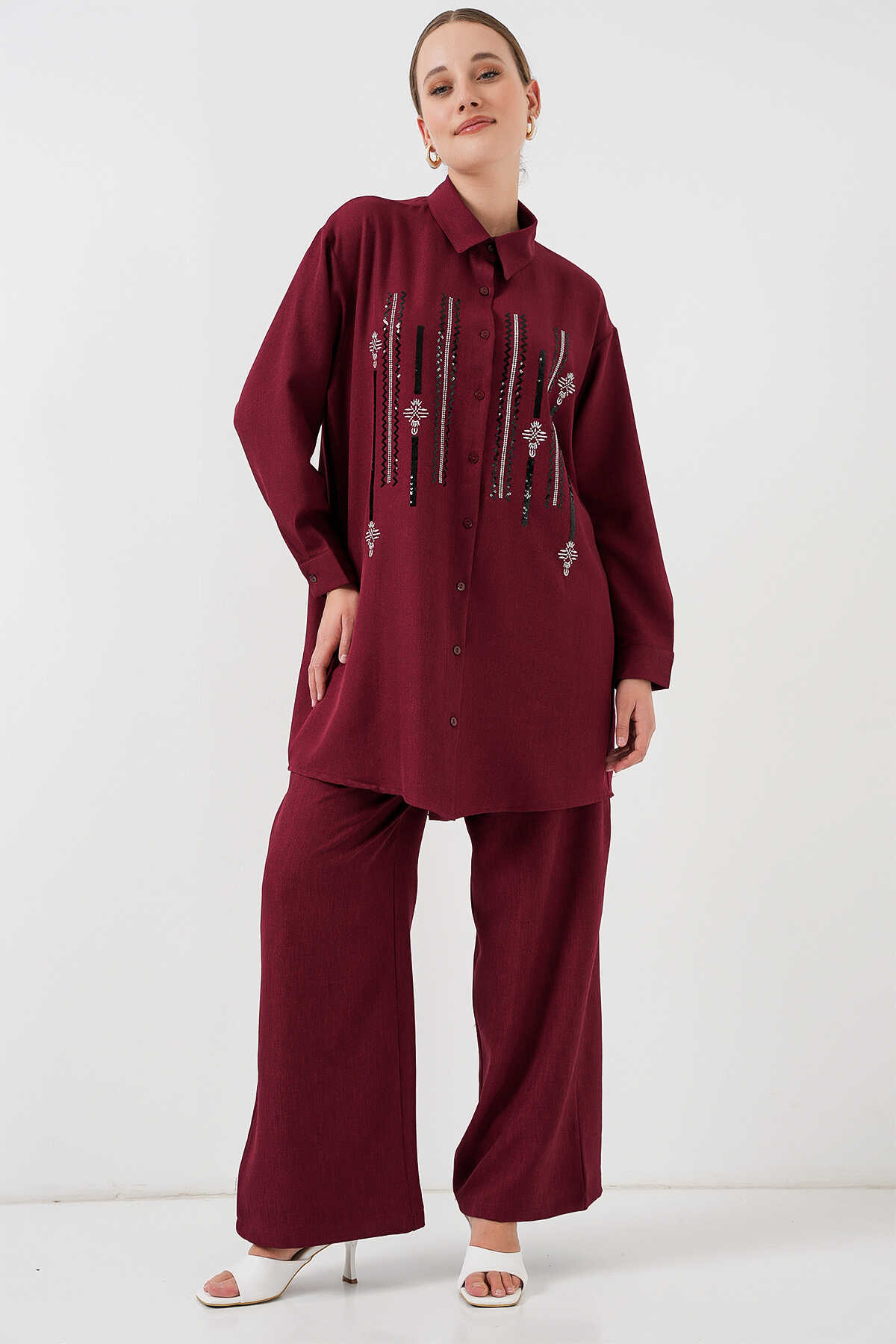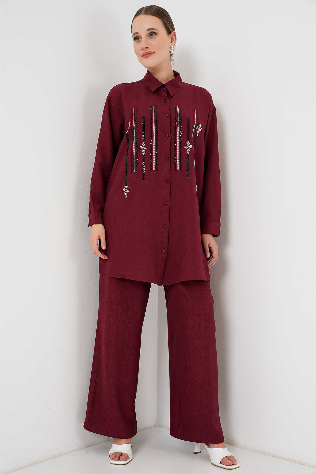 Desenli Tunik Pantolon İkili Takım 6720 - Bordo - Kombin