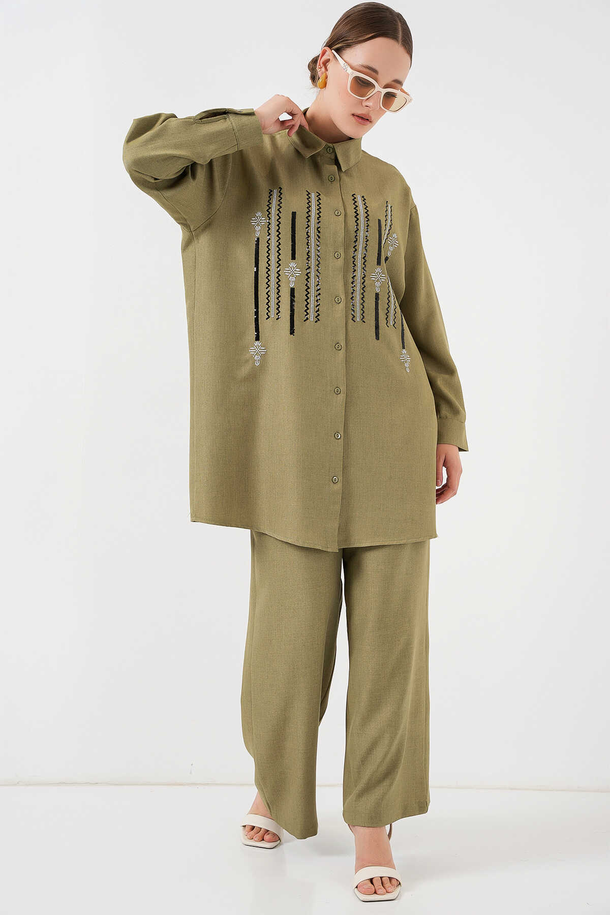 Desenli Tunik Pantolon İkili Takım 6720 - Çağla - Kombin