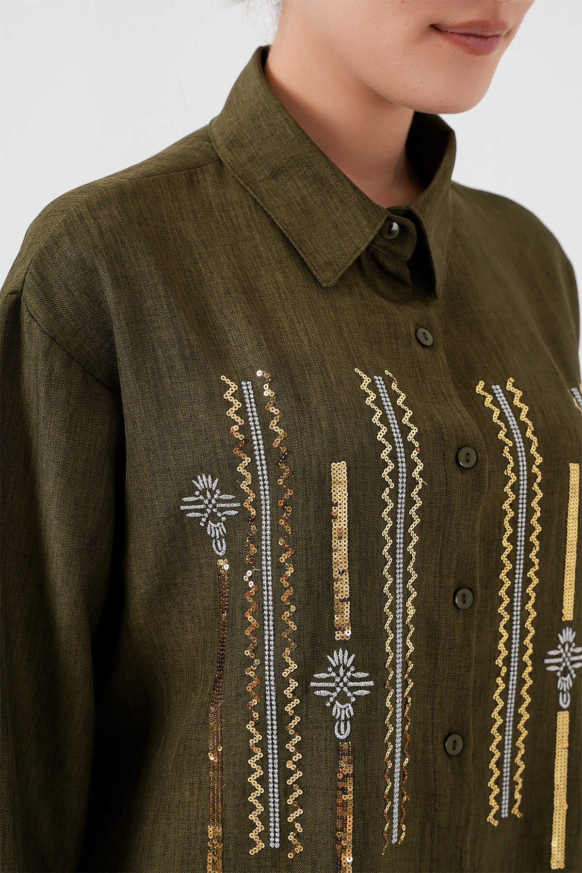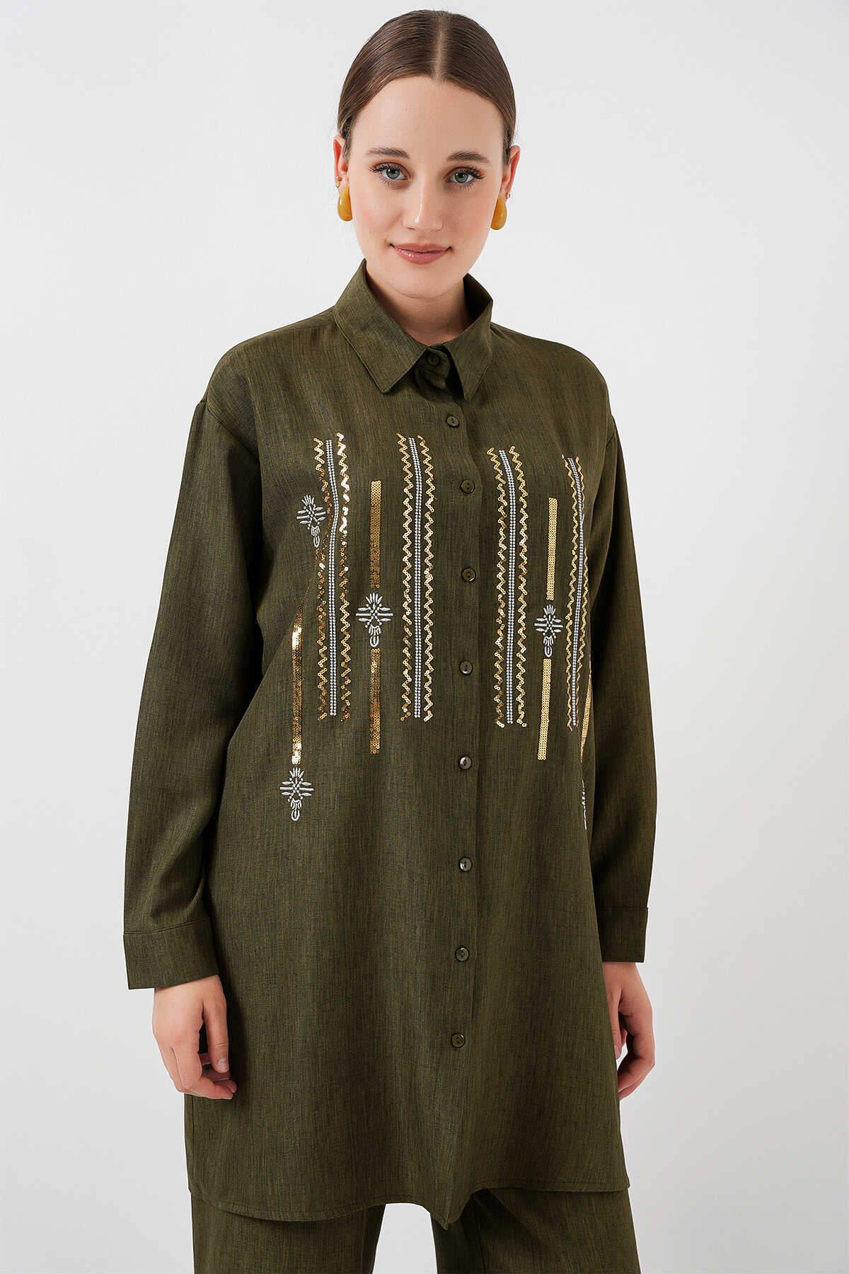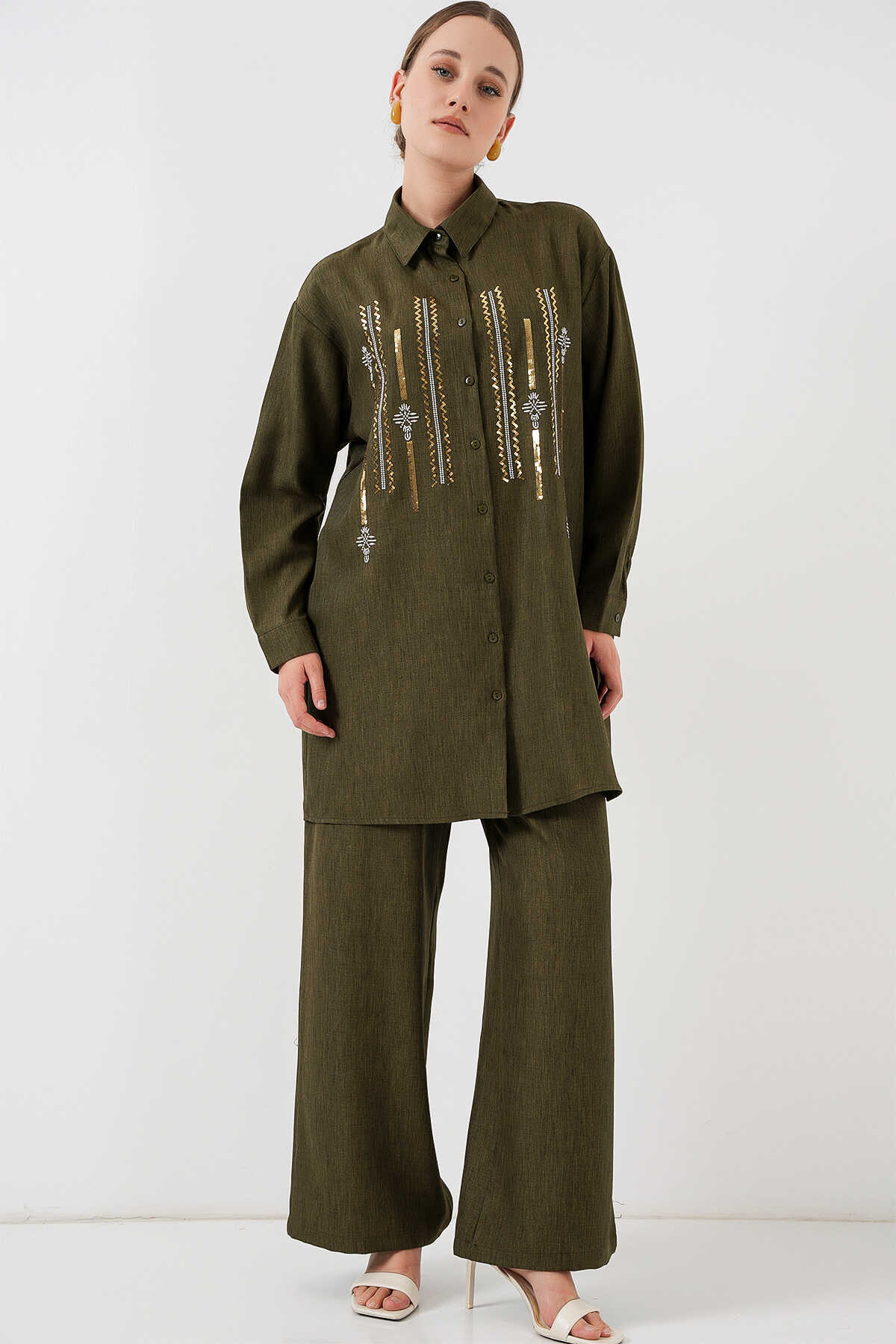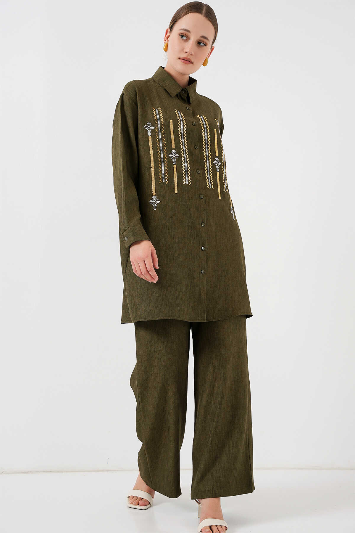 Desenli Tunik Pantolon İkili Takım 6720 - Haki - Kombin