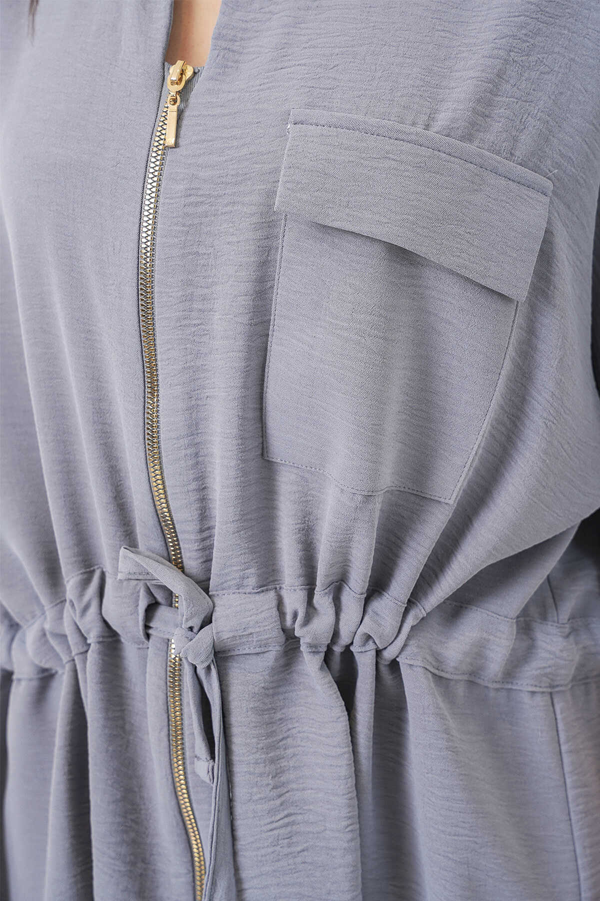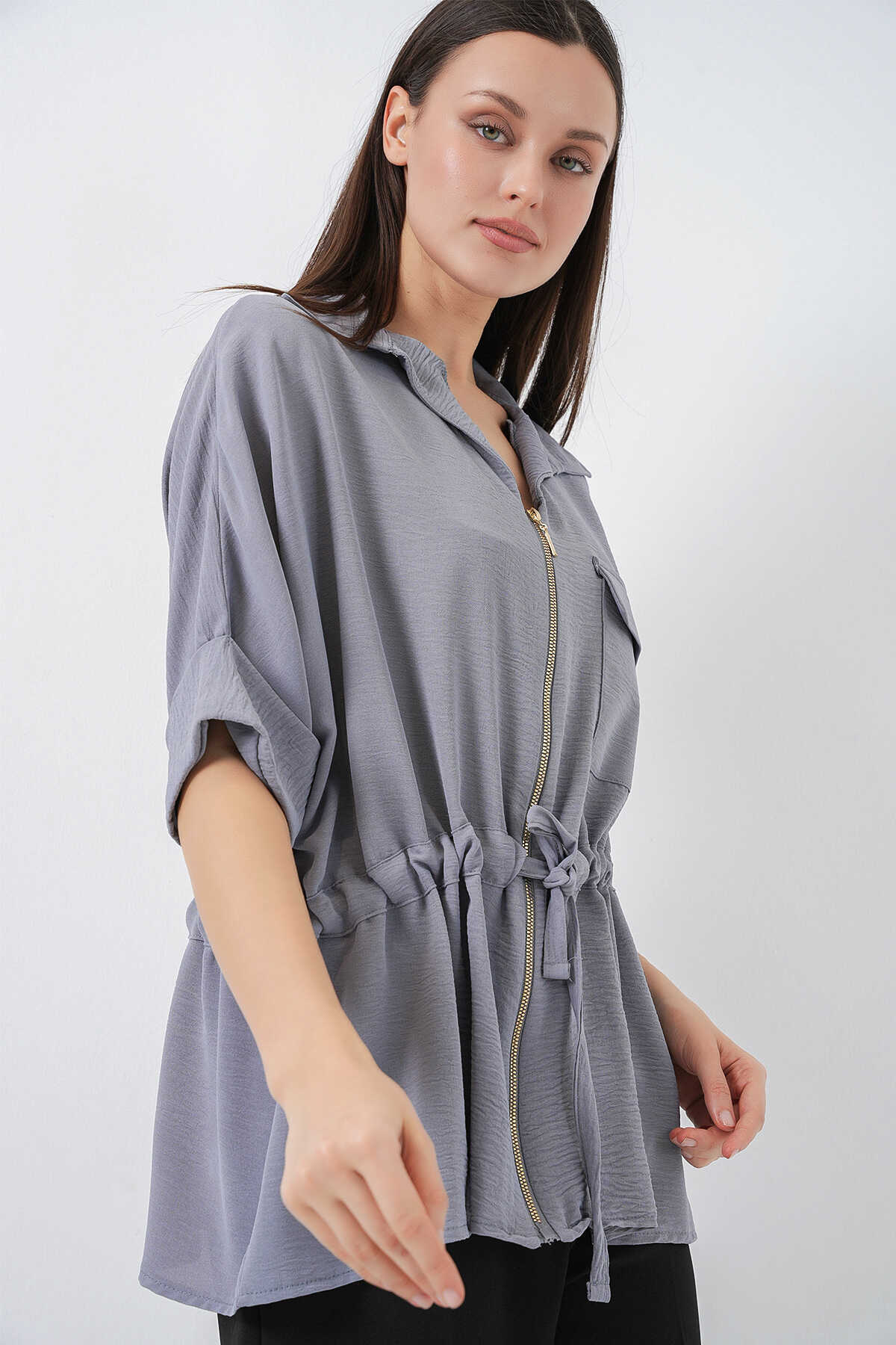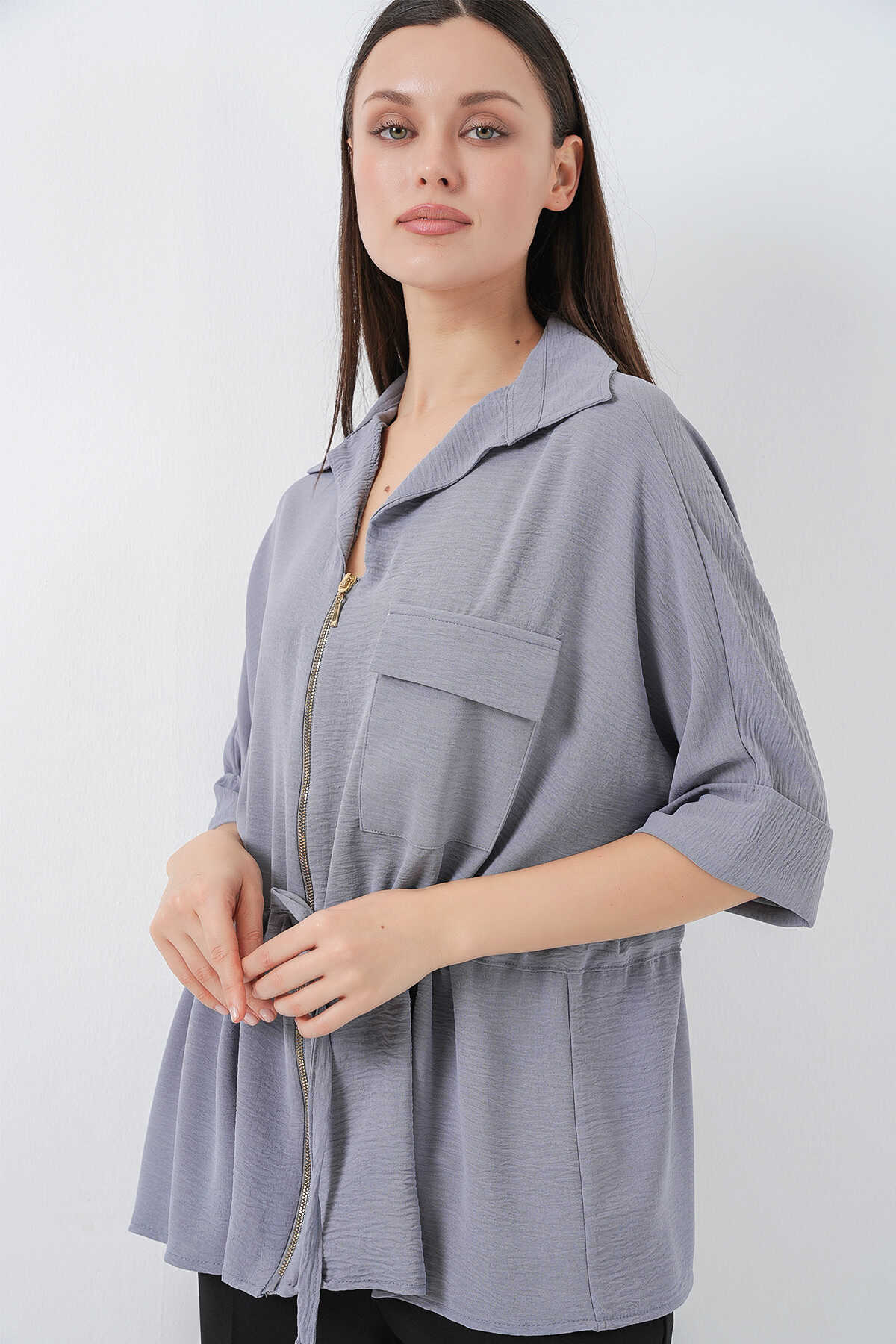 Fermuarlı Kadın Gömlek 0721 - Gri