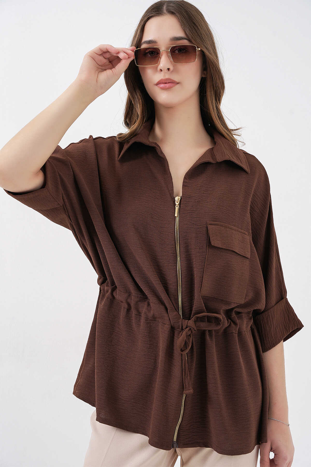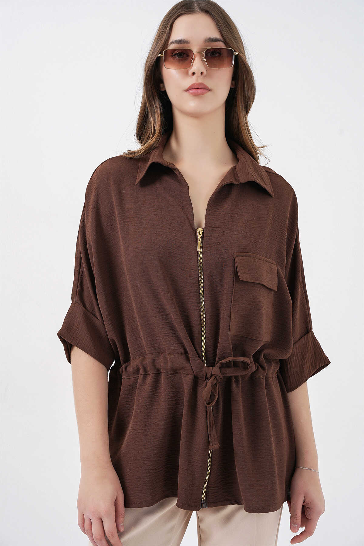 Fermuarlı Kadın Gömlek 0721 - Kahverengi