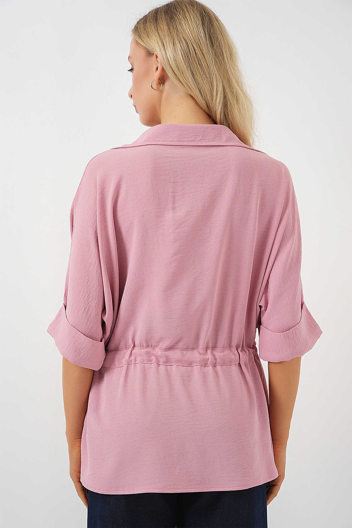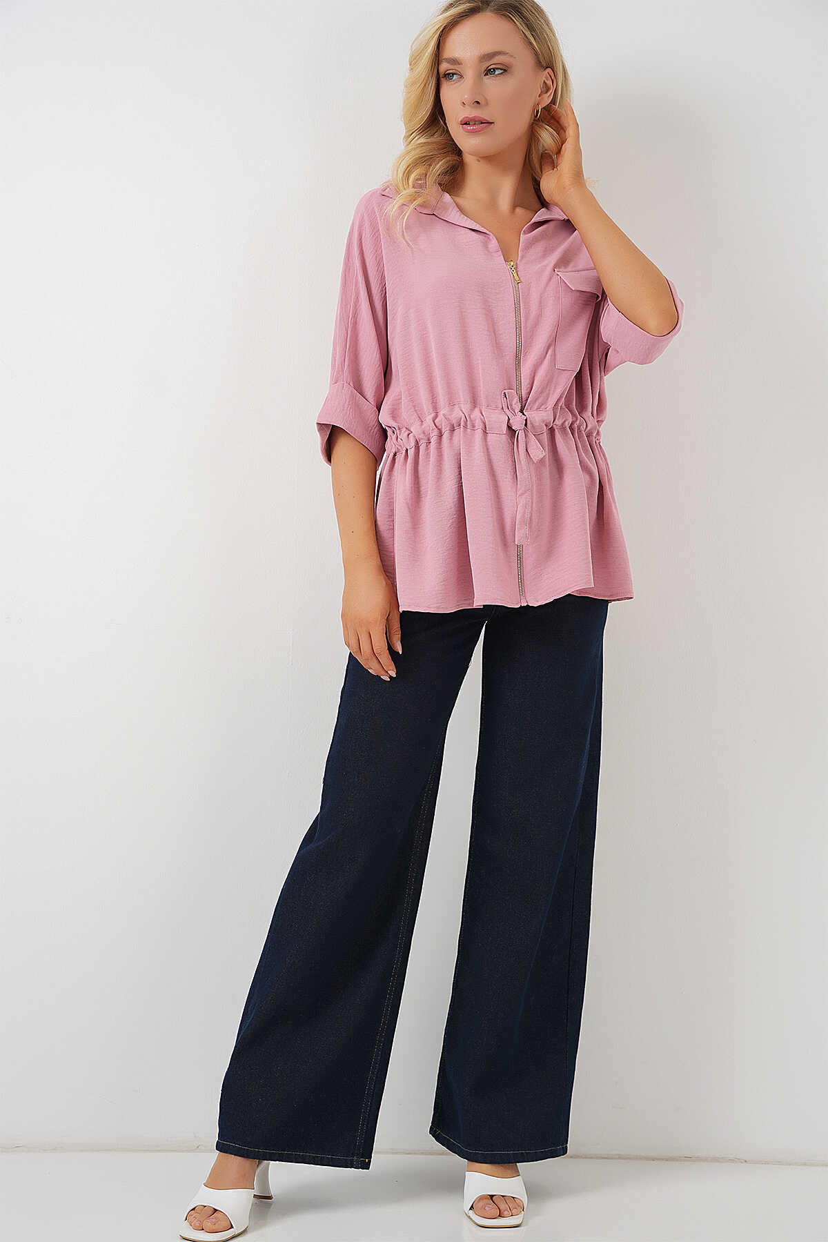 Fermuarlı Kadın Gömlek 0721 - Pudra - Kombin